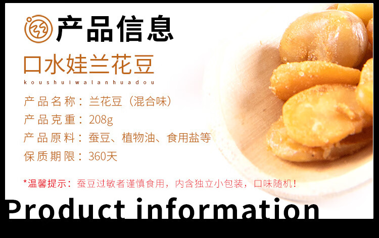 口水娃兰花豆混合味208g炒货蚕豆坚果干果休闲零食小吃