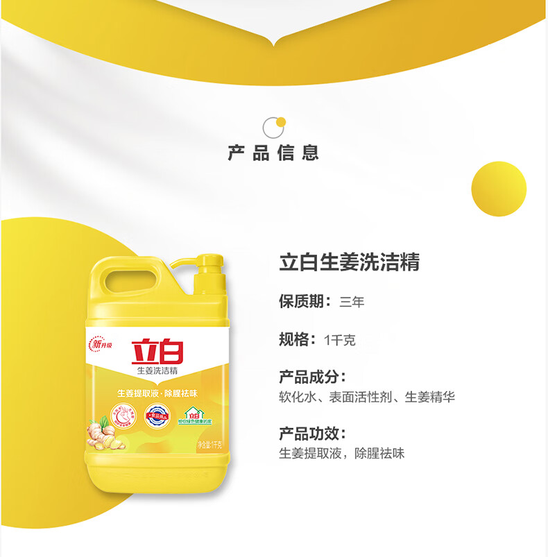 立白洗洁精生姜除腥去异味洗洁精5斤大桶超值购食堂饭店批发家用 生姜洗洁精2斤*1桶