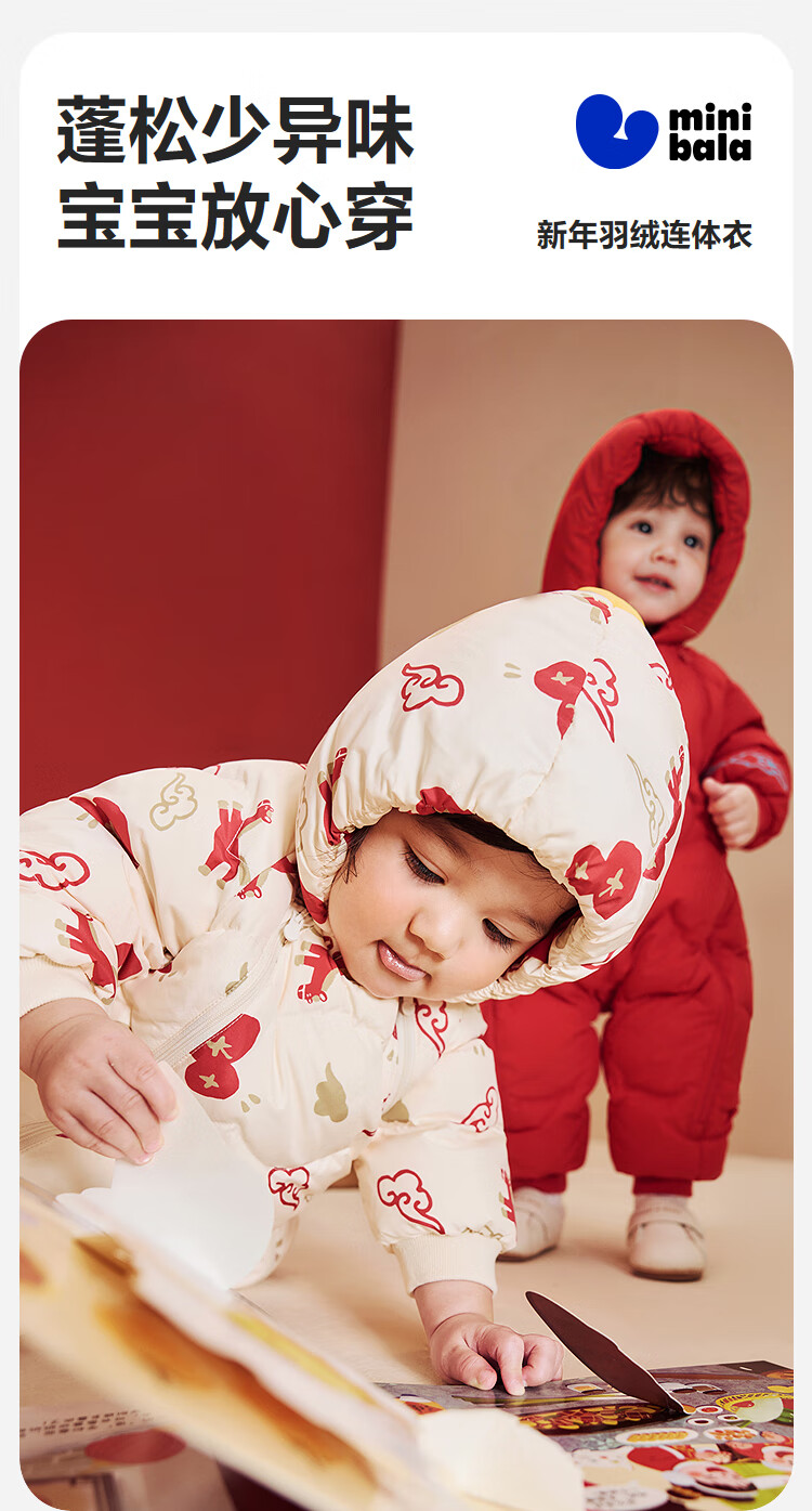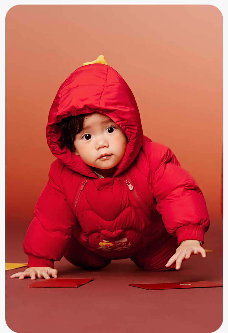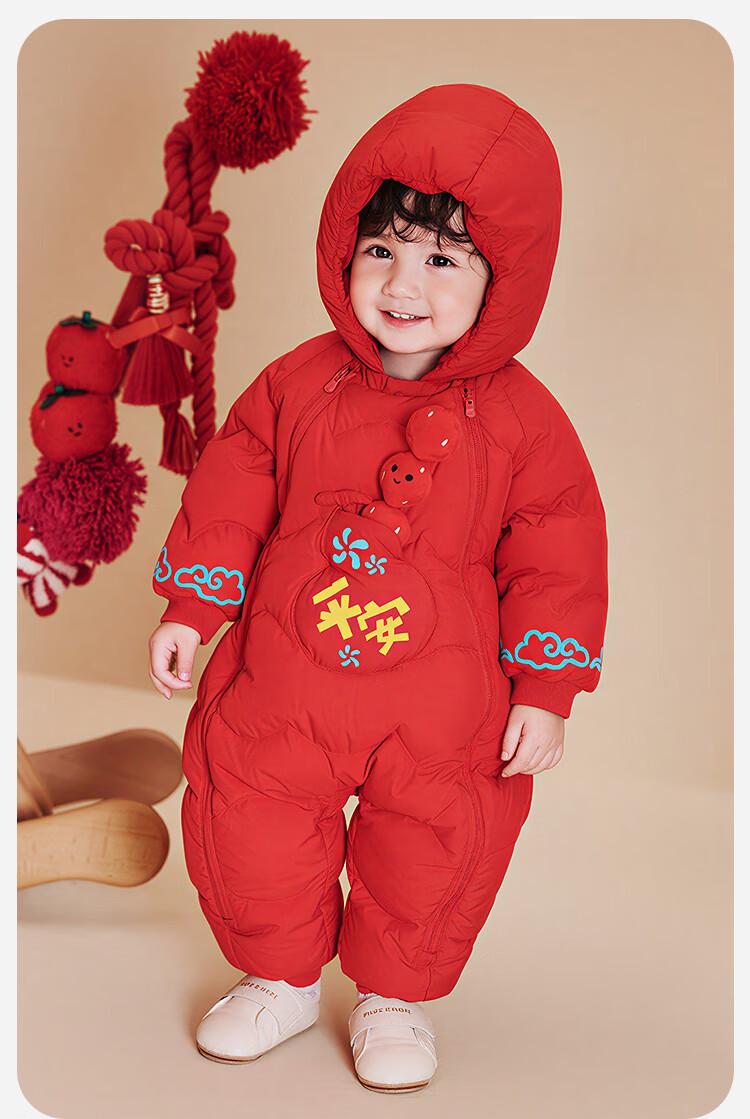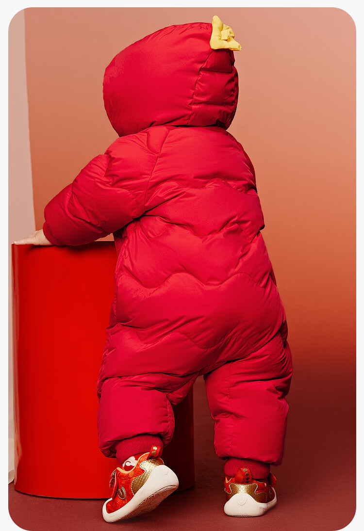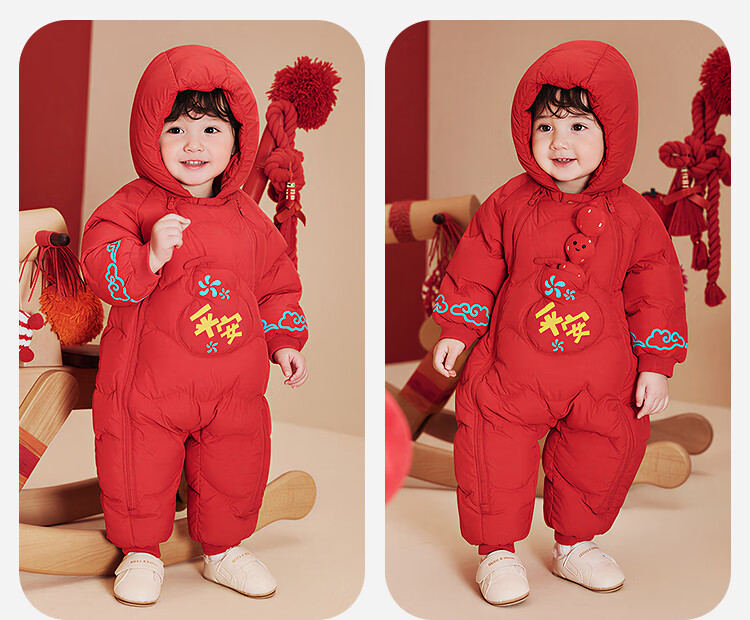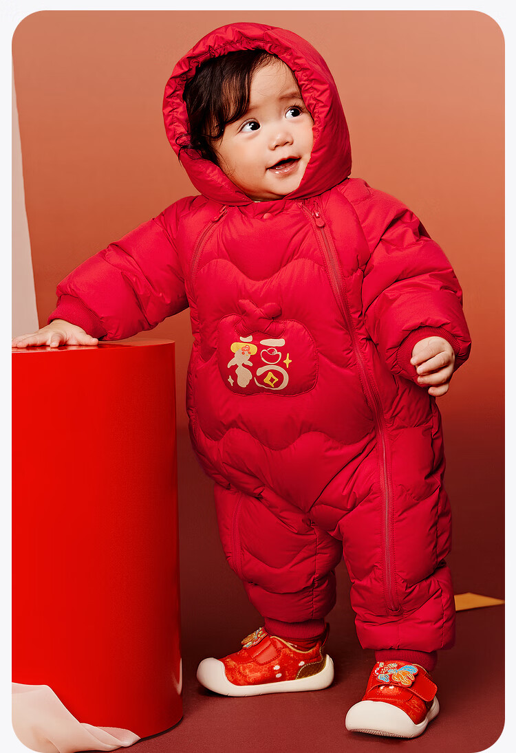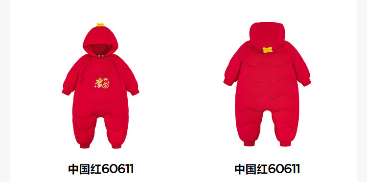 迷你巴拉巴拉羽绒服连体衣加厚外出婴儿衣服新年红色2026冬季加厚新春款 中国红60611 -福气满满 80 【充绒量66g】