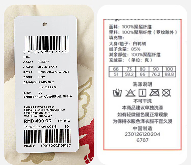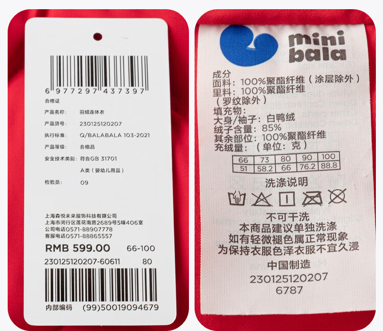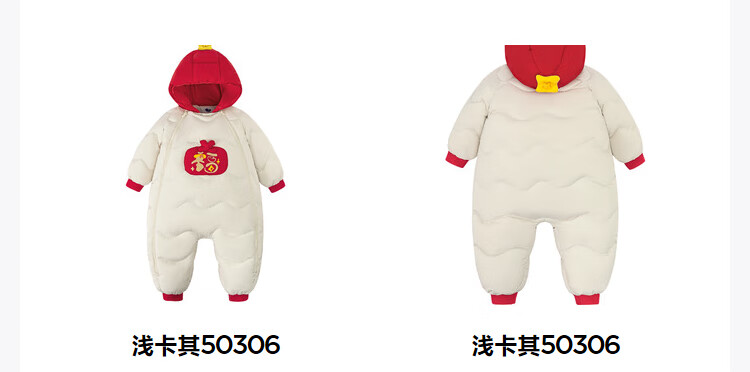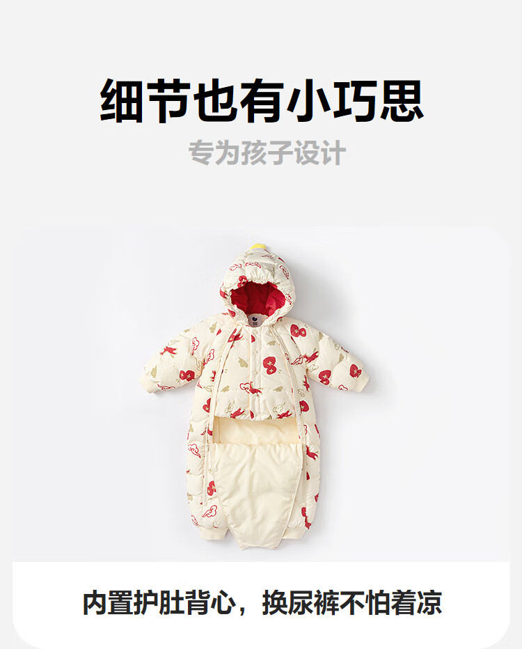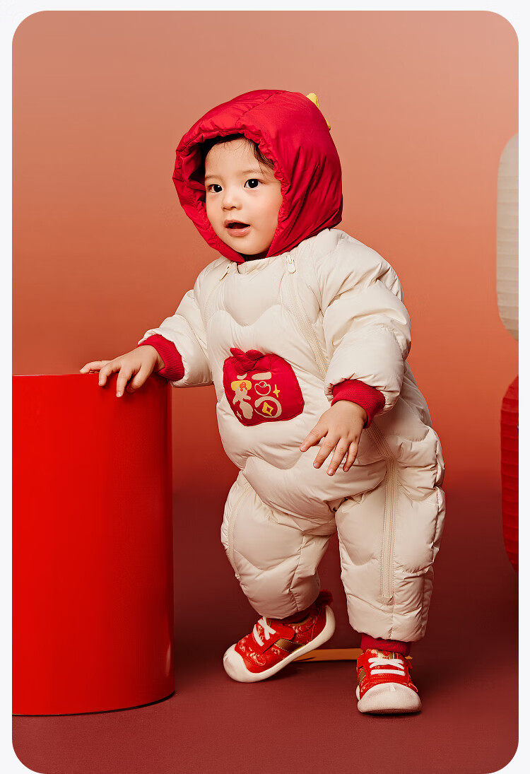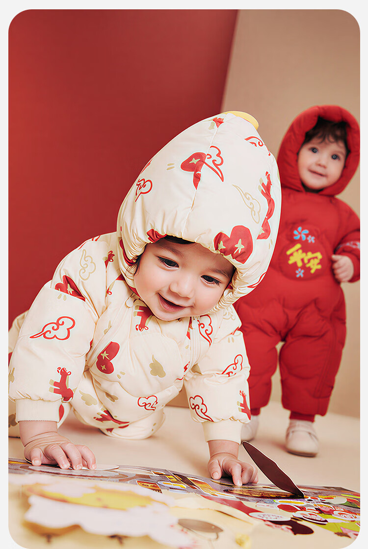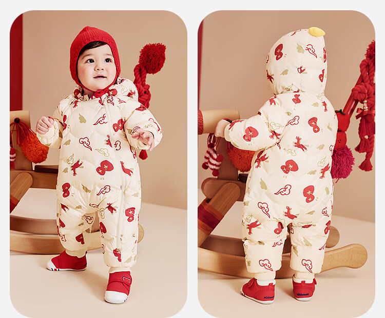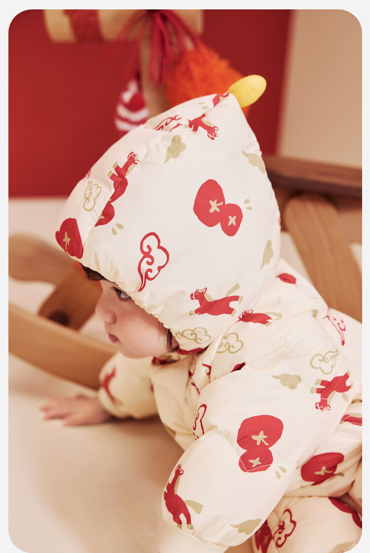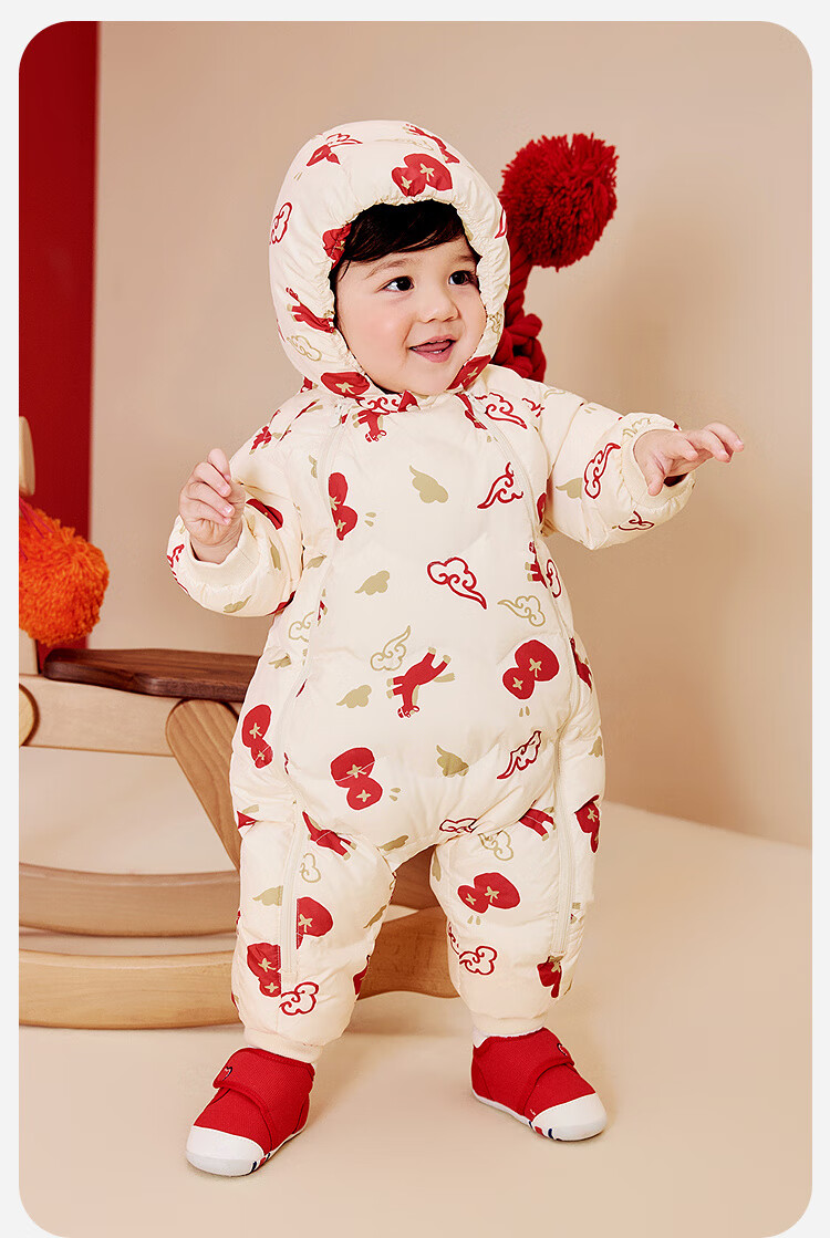 迷你巴拉巴拉羽绒服连体衣加厚外出婴儿衣服新年红色2026冬季加厚新春款 中国红60611 -福气满满 80 【充绒量66g】