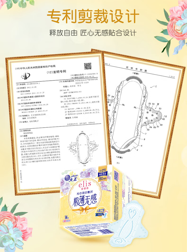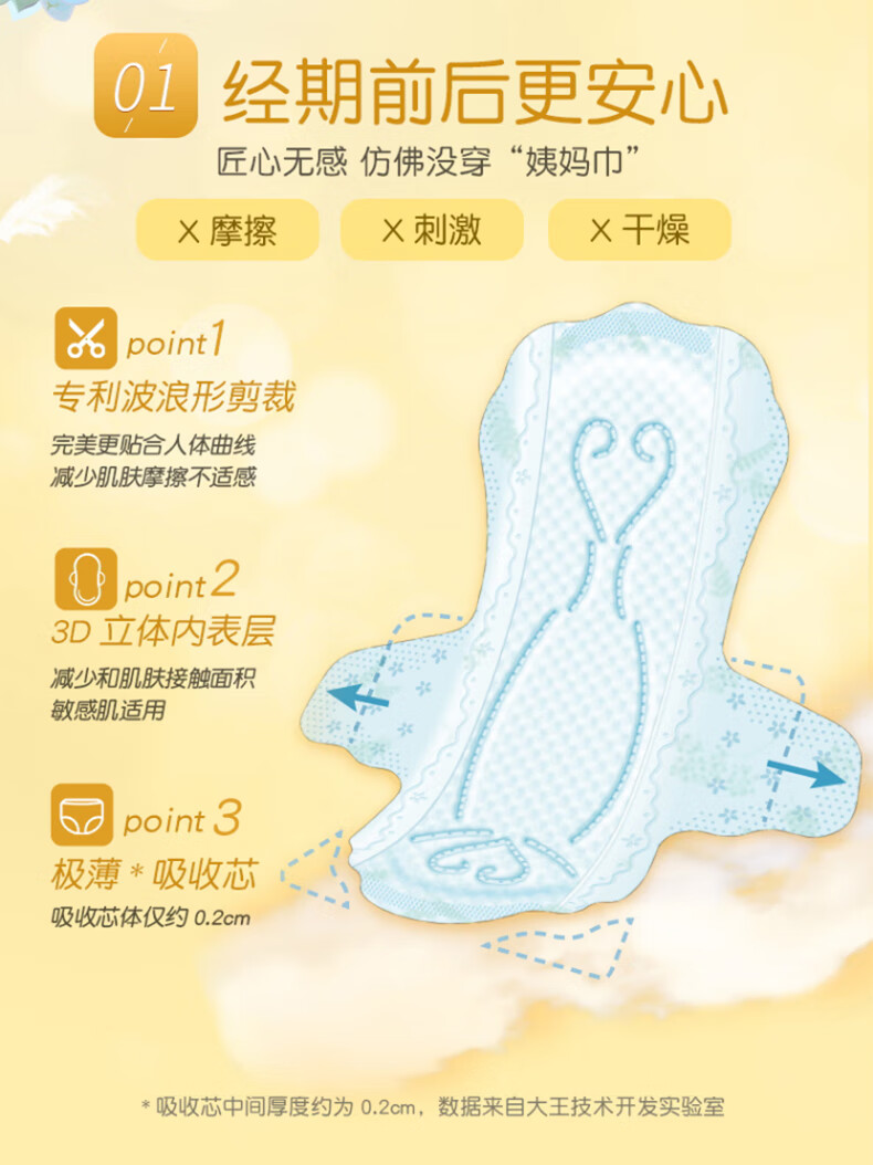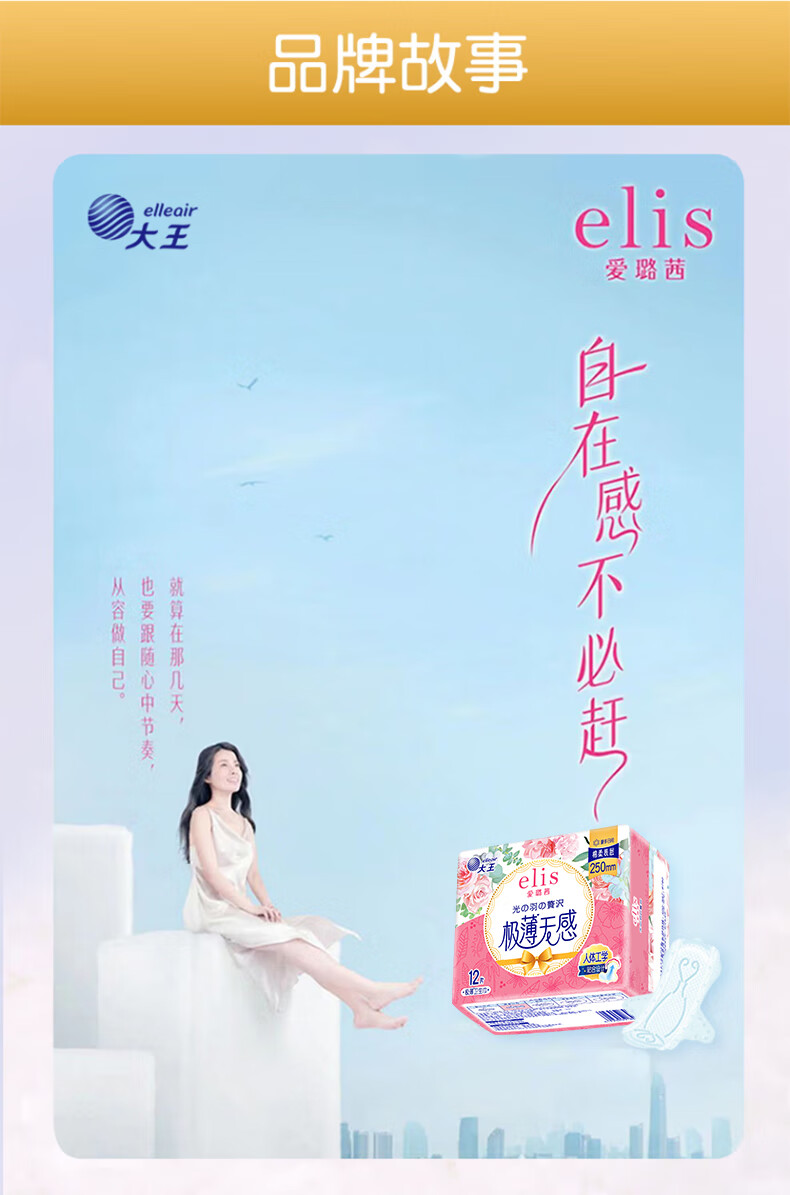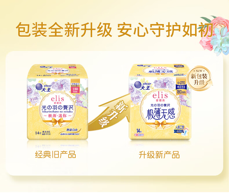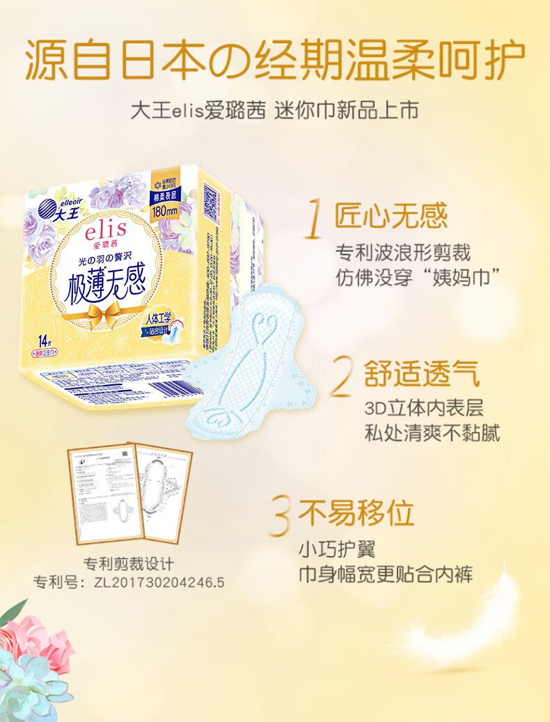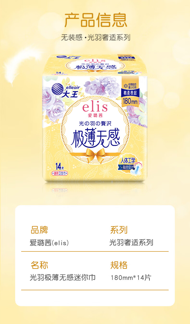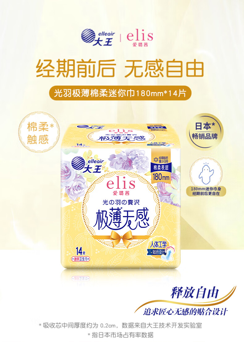 爱璐茜(elis)大王迷你卫生巾日用光羽奢适极薄棉柔 180mm 14片瞬吸护垫姨妈巾