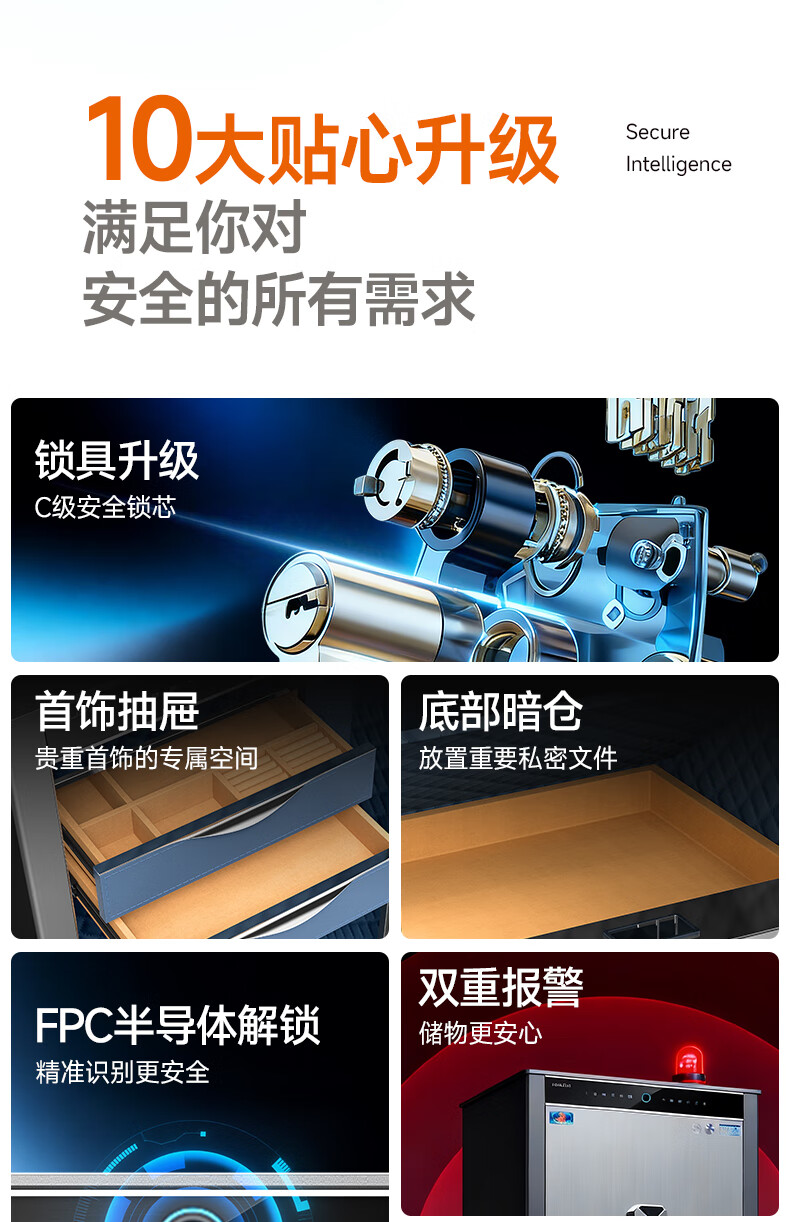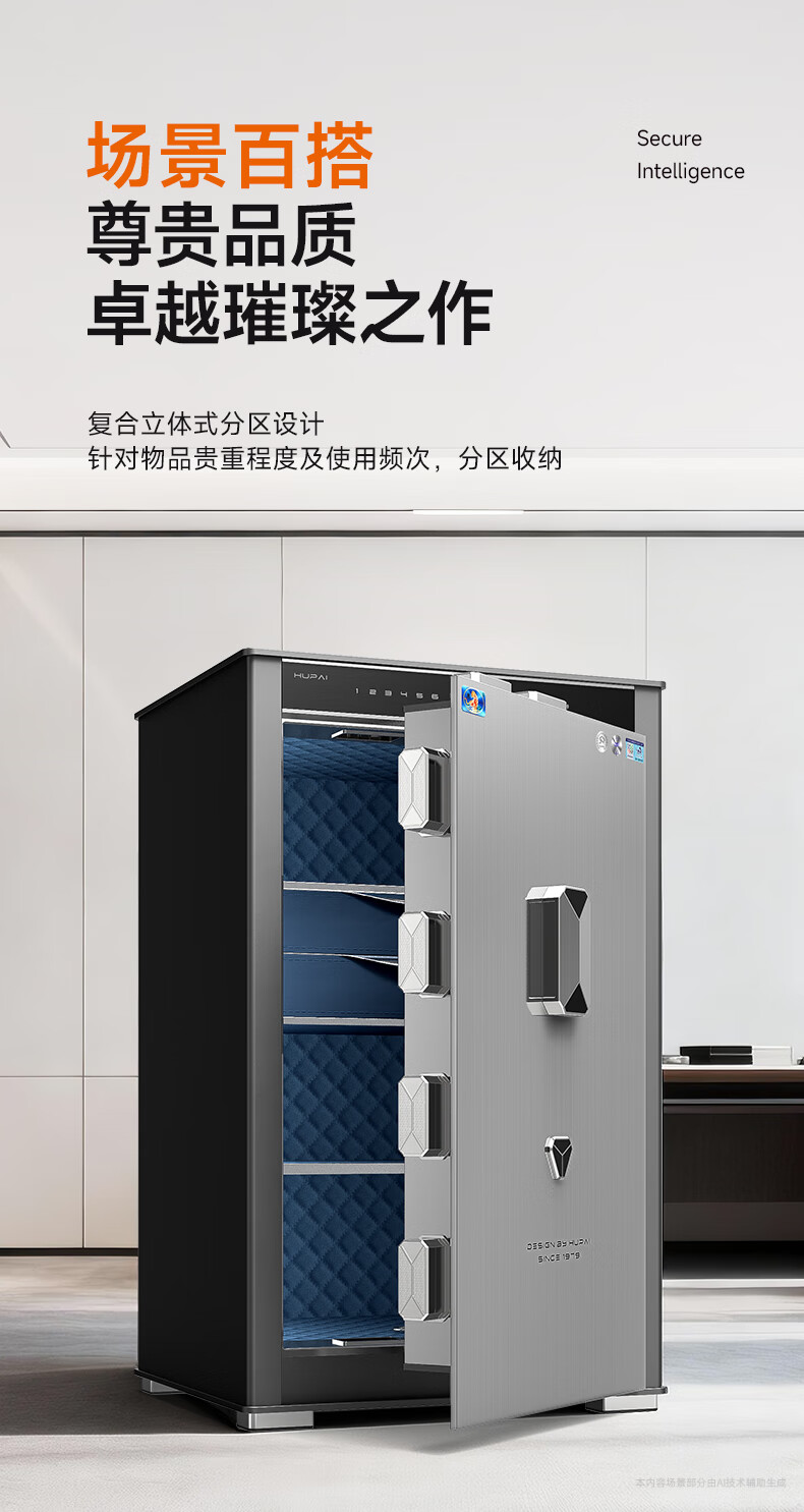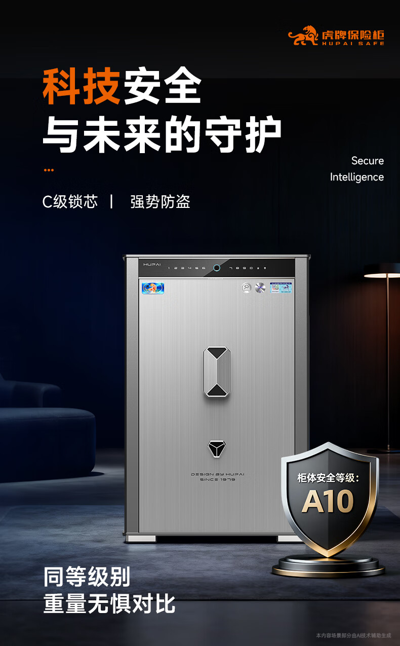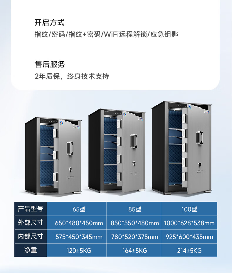 虎牌保险柜家用防盗大型办公财务专用csp国标认证全钢防盗保险箱支持WiFi远程解锁 天阅系列 65cm烟青灰WiFi