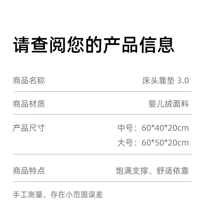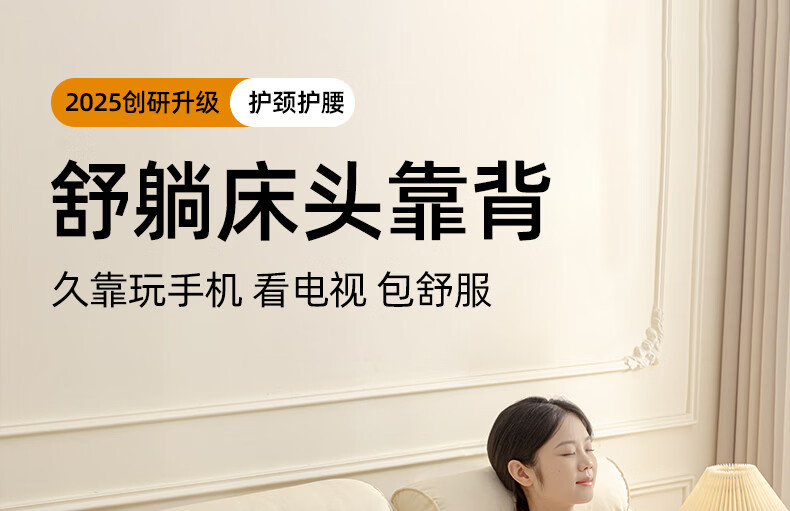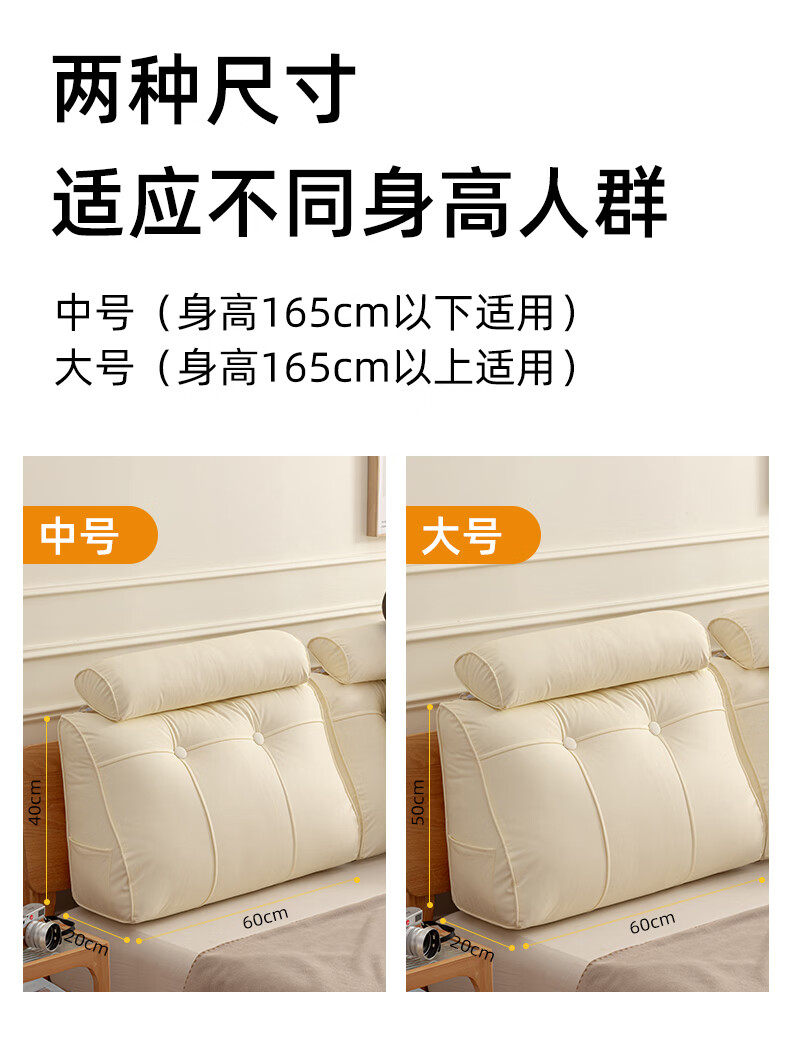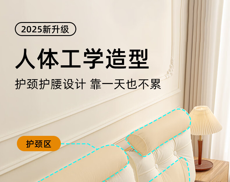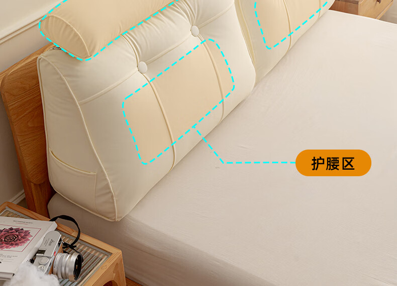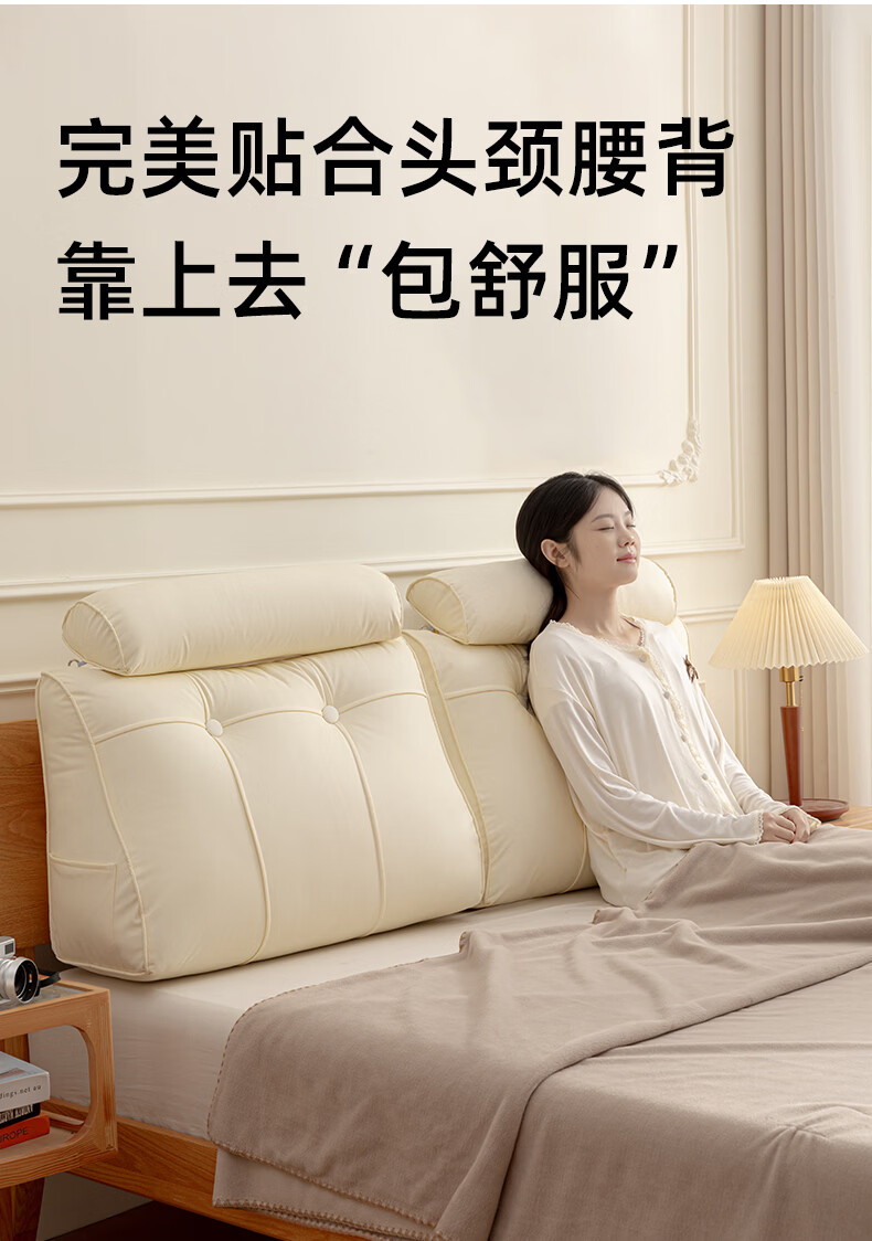 名创优品(MINISO)床头靠垫软包 可拆洗靠枕大靠背靠背垫床头大靠枕 米白色-护颈护腰款 60cm*50cm*20cm 含枕芯