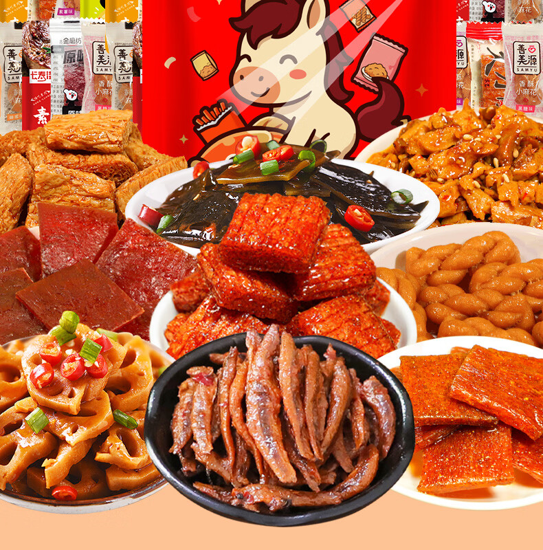 【年货零食大礼包】休闲零食小吃辣条麻花素肉大刀肉网红追剧解馋 65包零食大礼包