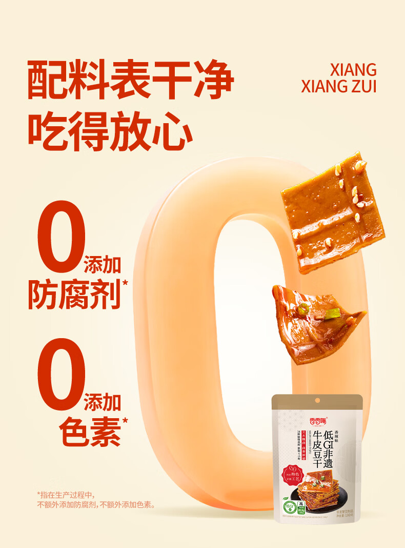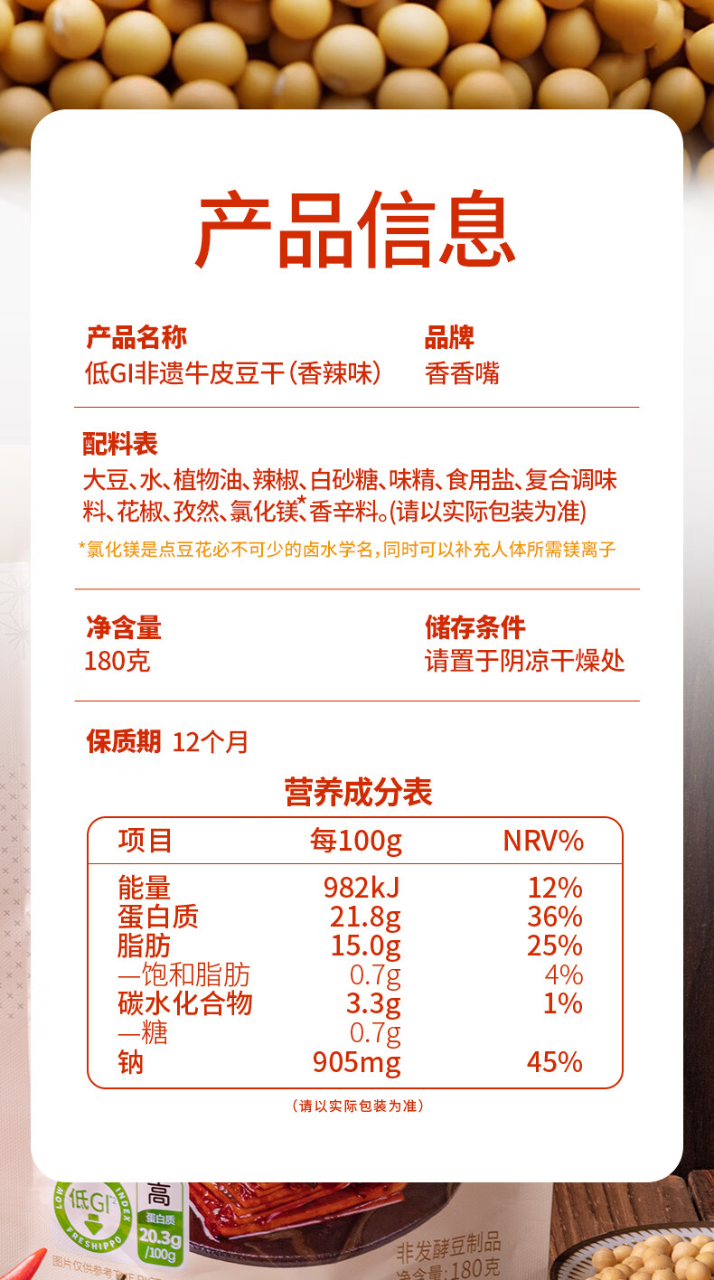 香香嘴低GI慢升糖牛皮豆干香辣味180g健康营养充饥零食追剧解馋办公室