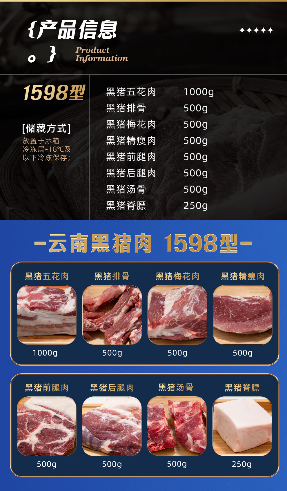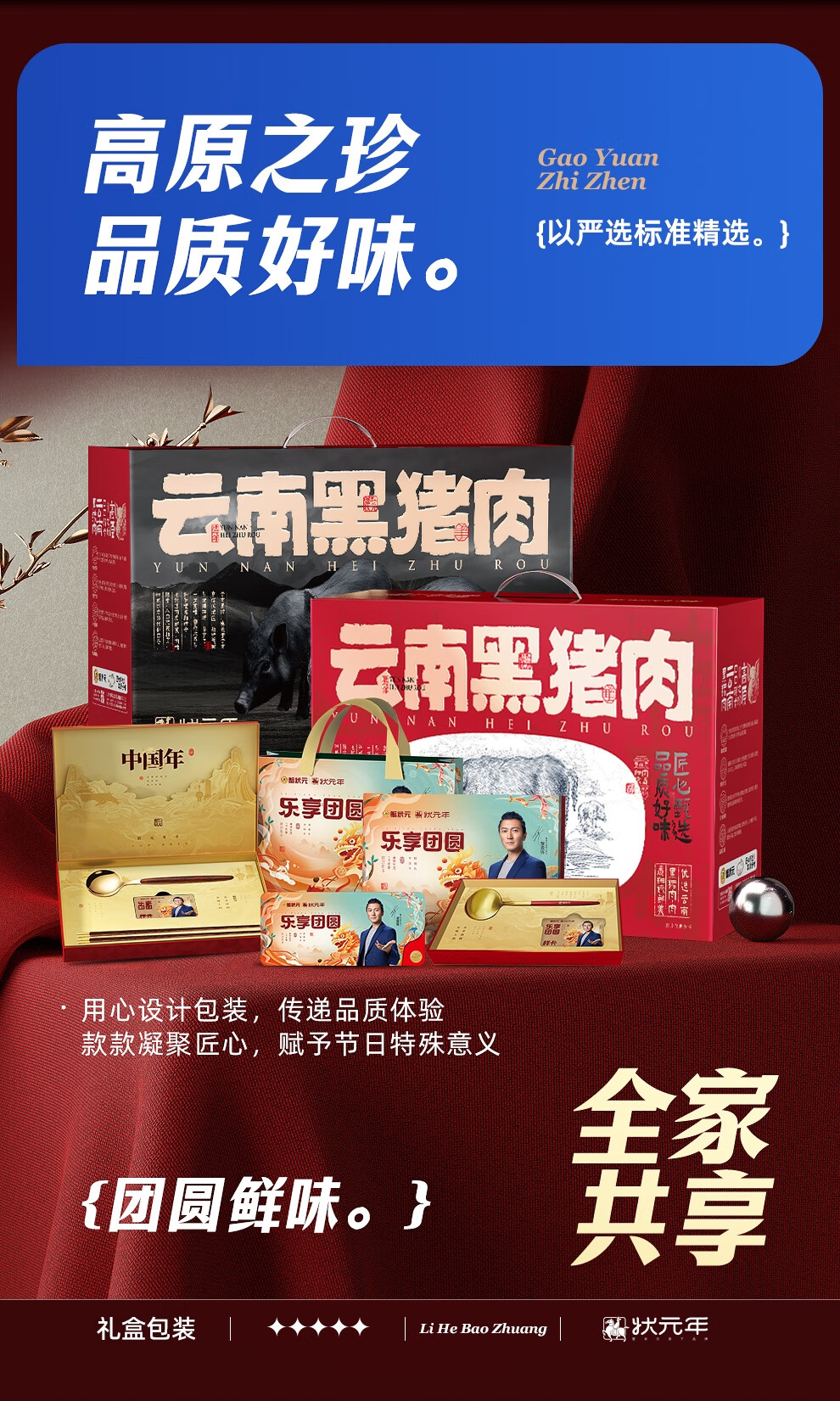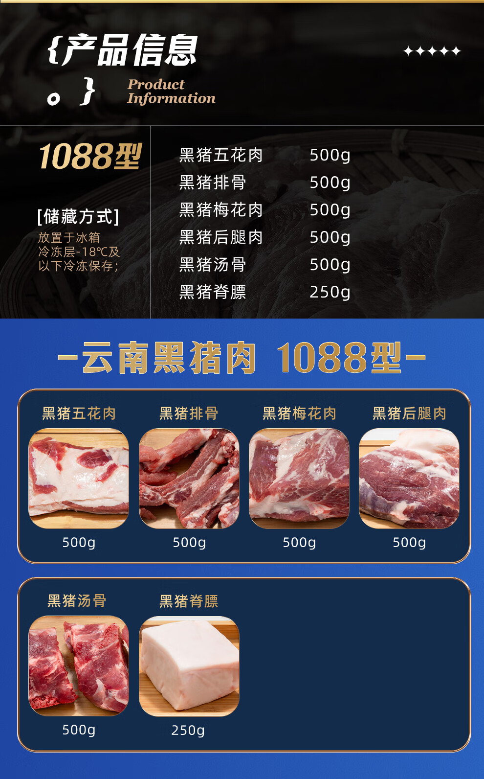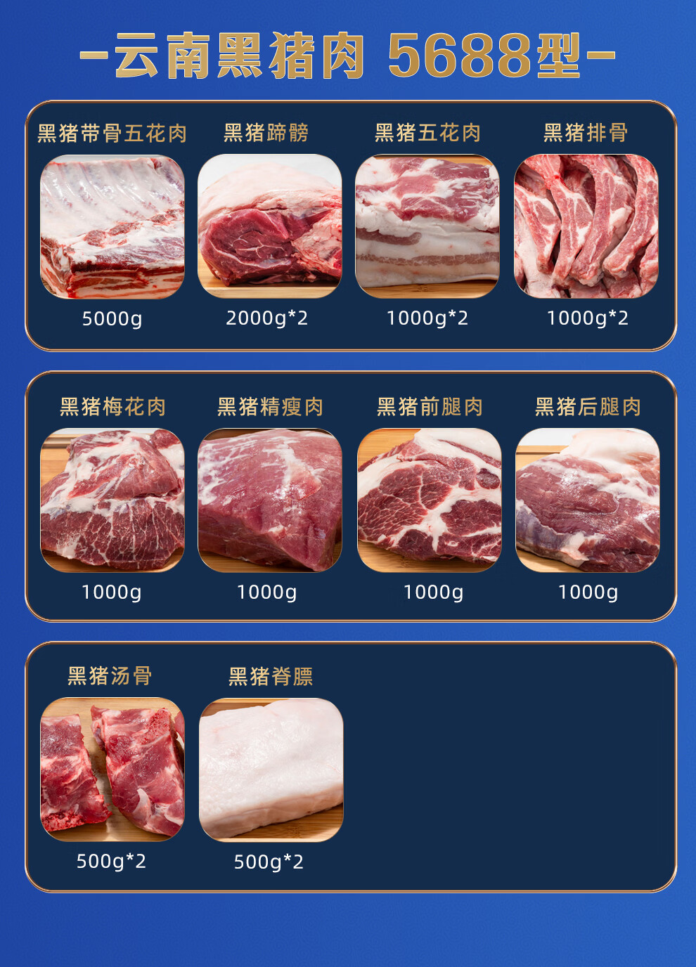 蟹状元【礼券】云南黑猪肉年货礼盒大礼包 1088型6件食材共2750g