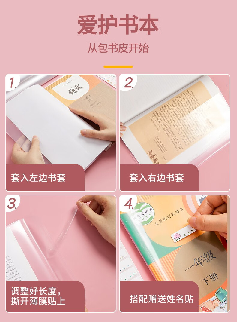 六品堂 书套书皮自粘加厚透明小学生课本作业本书皮套A4防水书套保护膜一年级二三四五年级上册书本 【开学推荐】大号10中号10小号