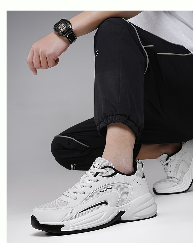 西域骆驼(VANCAMEL)男鞋冬季ACE运动鞋2025新款皮面防水跑步鞋潮厚底休闲老爹鞋子男 【官方正品 质量保证】白色配色 40