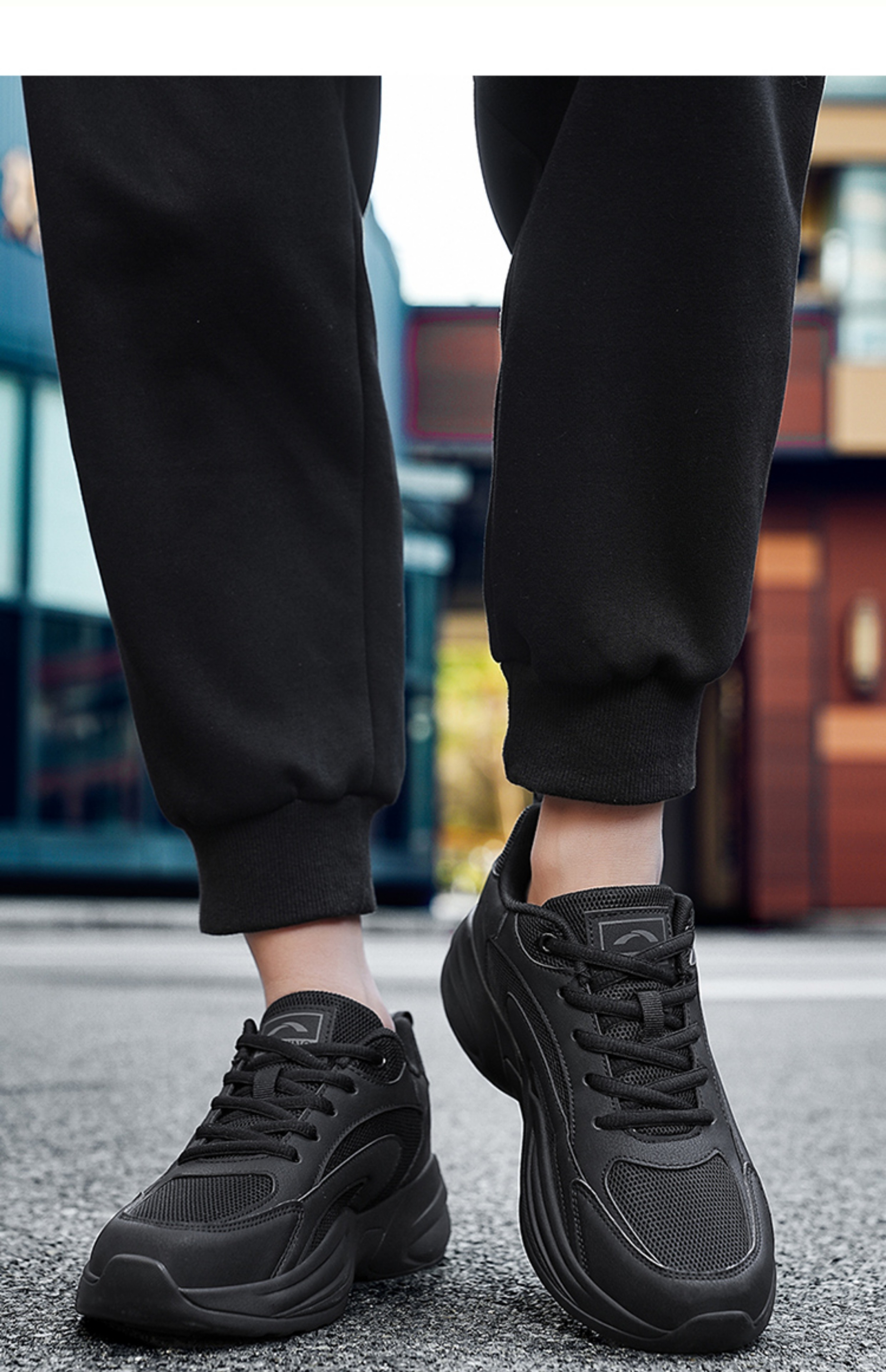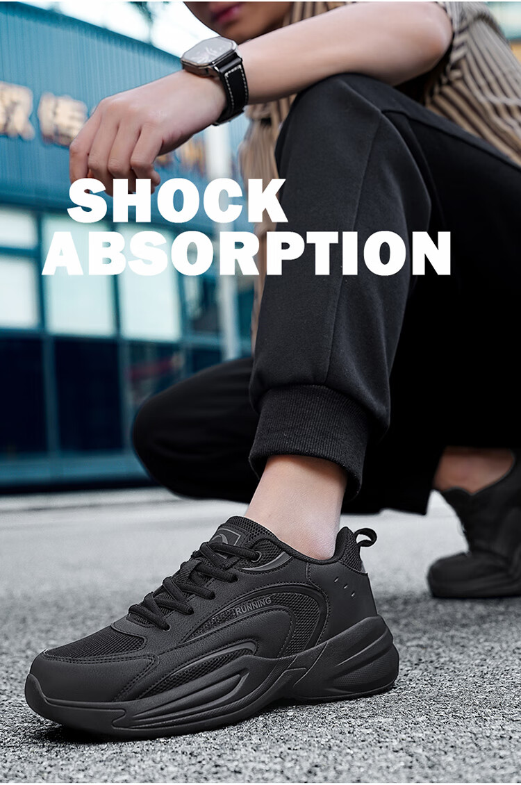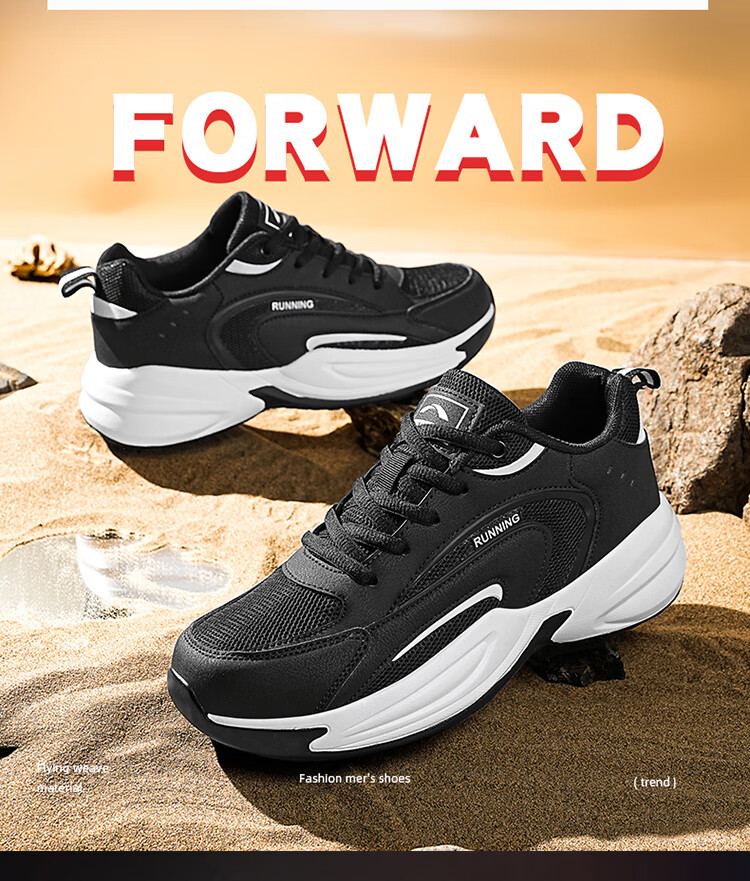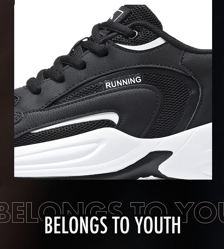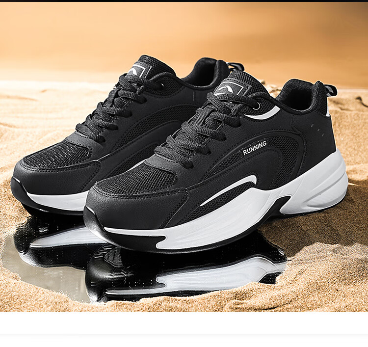 安踏男鞋革面防泼水跑步鞋男黑色轻便防滑休闲鞋运动鞋旅游鞋子男