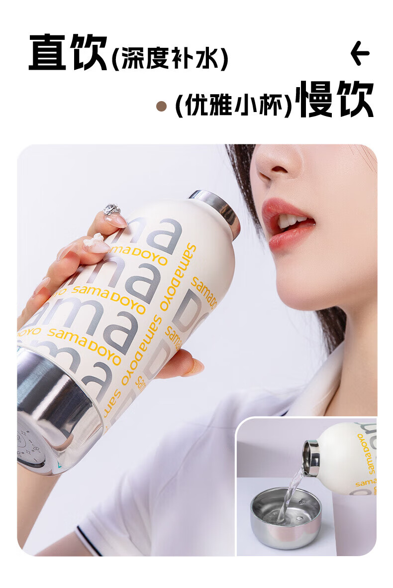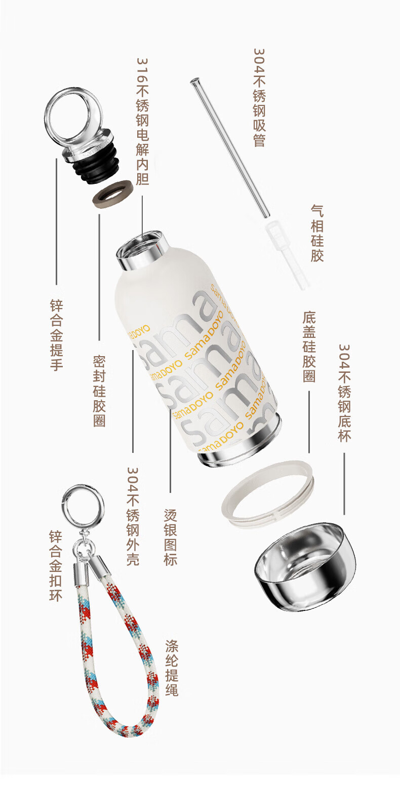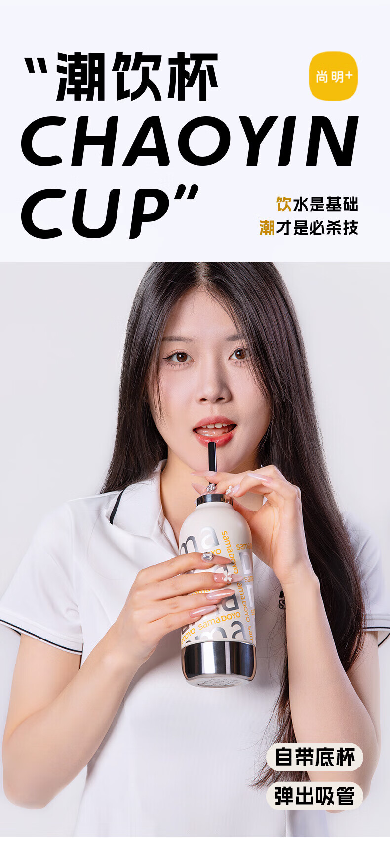 尚明316不锈钢保温水杯运动吸管杯男女户外便携水壶户外保冷节日礼物 粉色 360ml