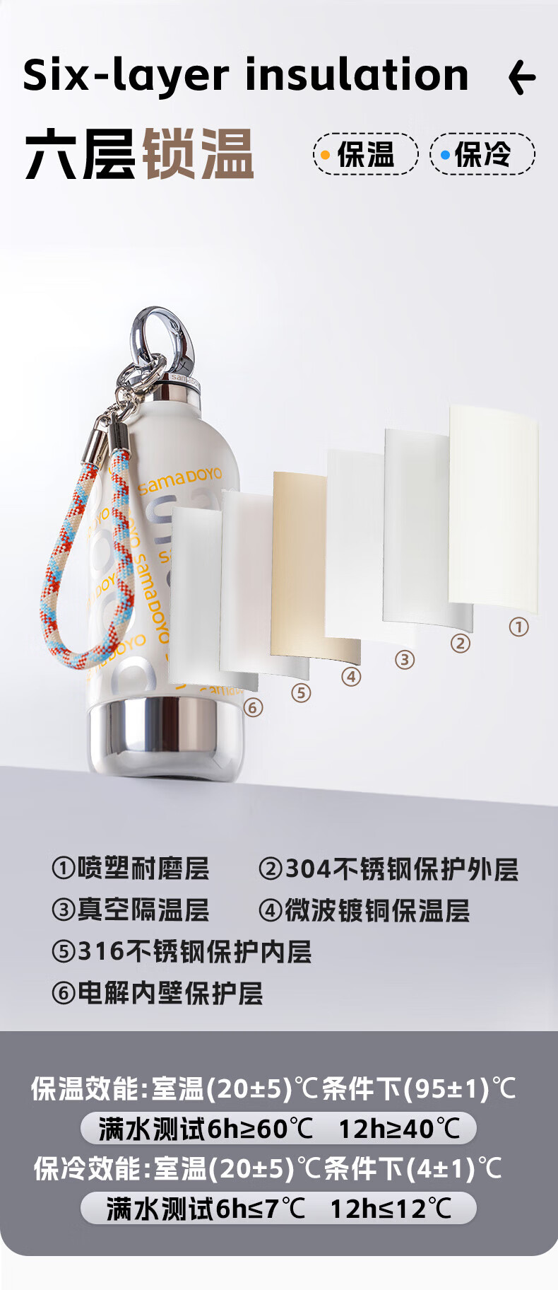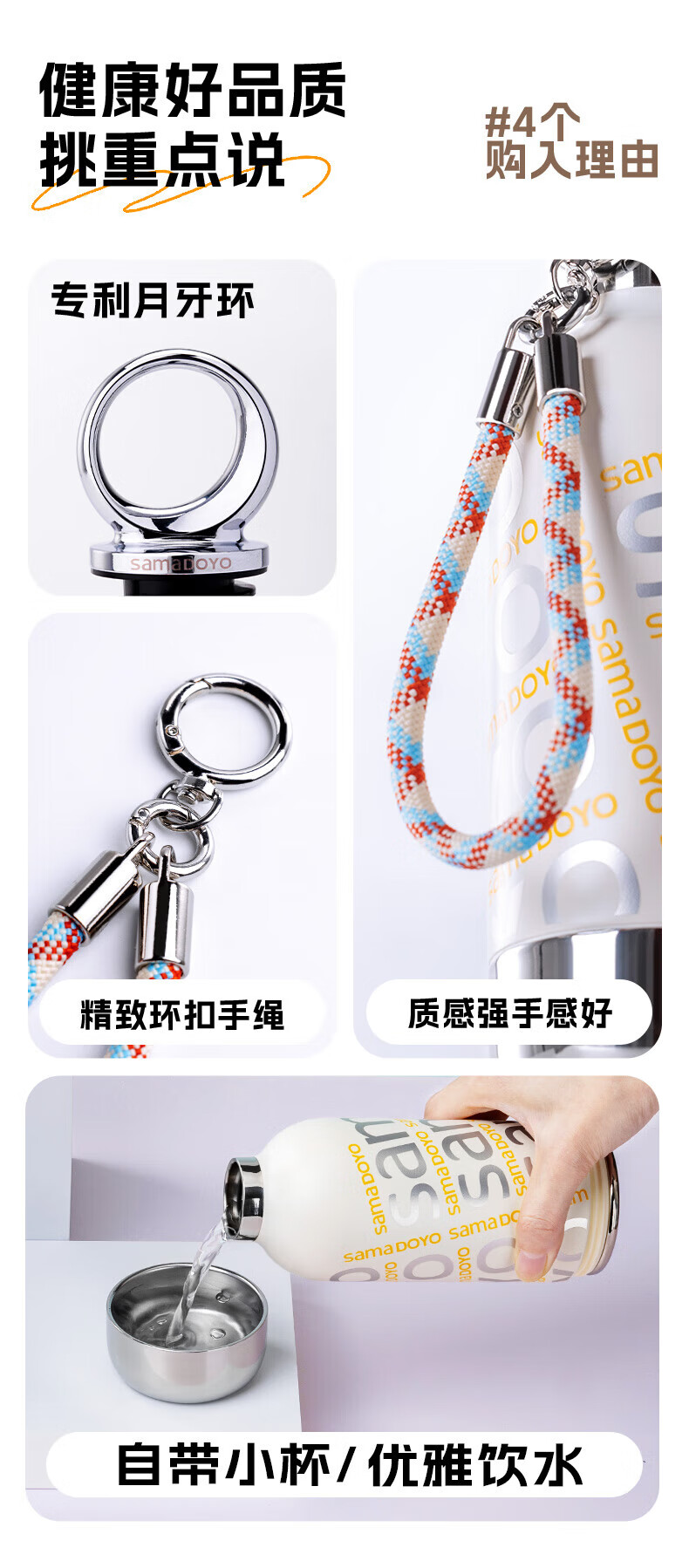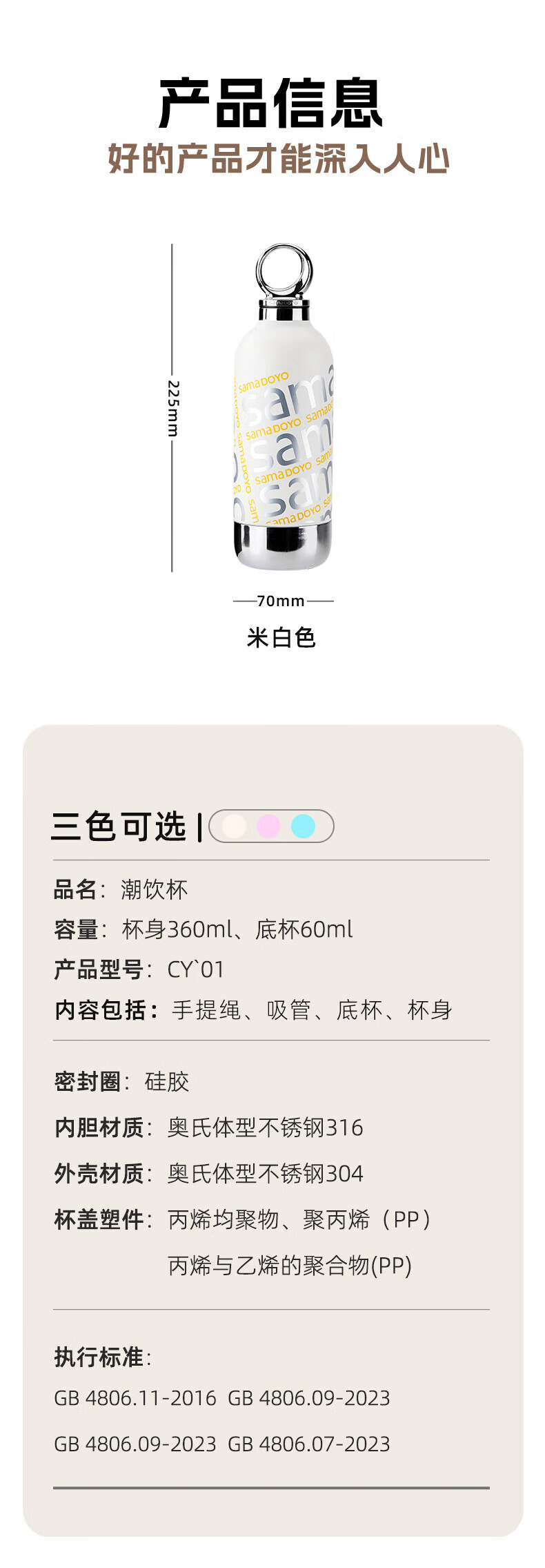 尚明316不锈钢保温水杯运动吸管杯男女户外便携水壶户外保冷节日礼物 粉色 360ml