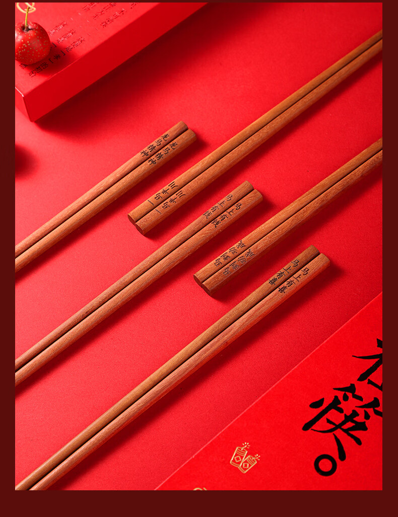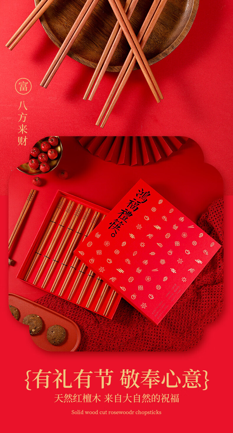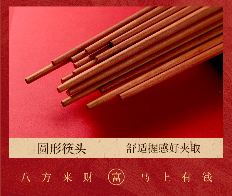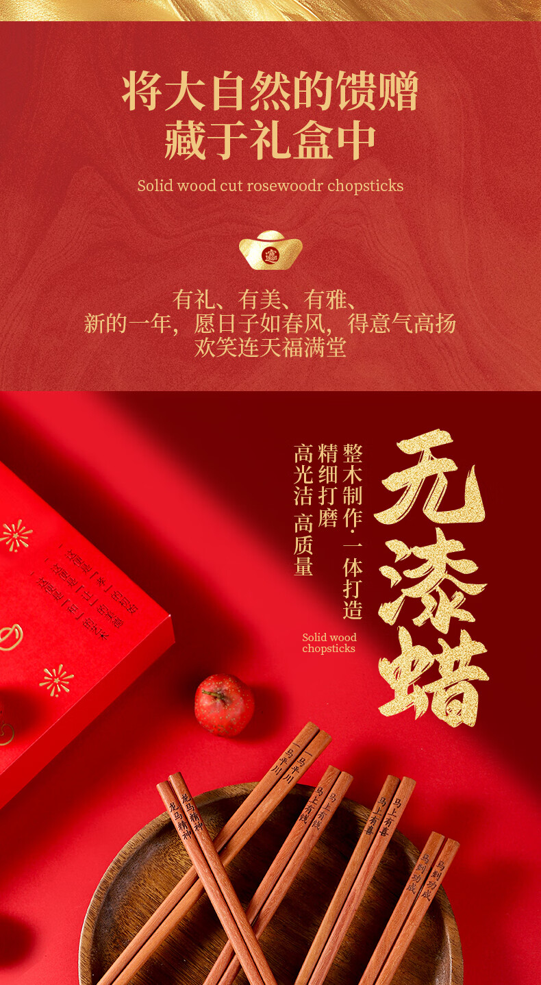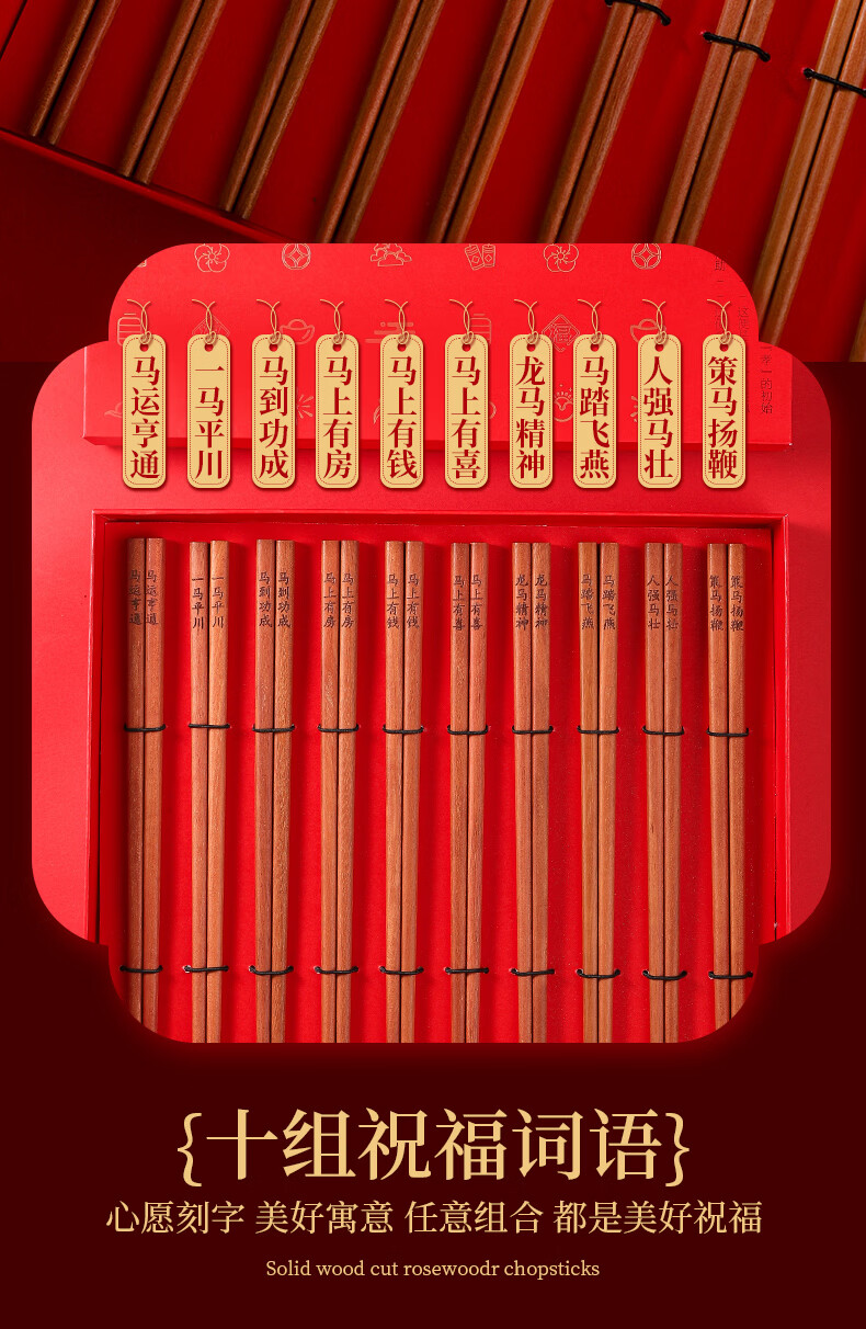 木之初 马上有钱 花梨木筷子无漆无蜡家用新年春节高档送礼盒餐具套装 【马上有钱】-花梨木10双礼筒装