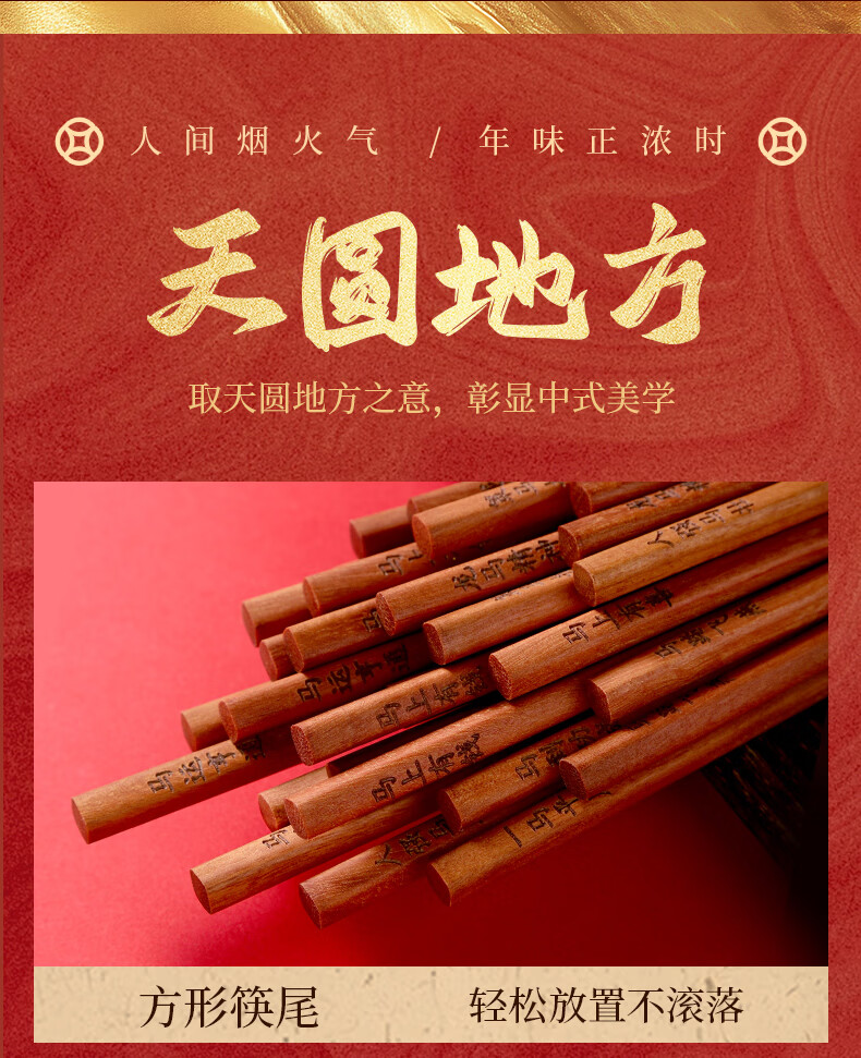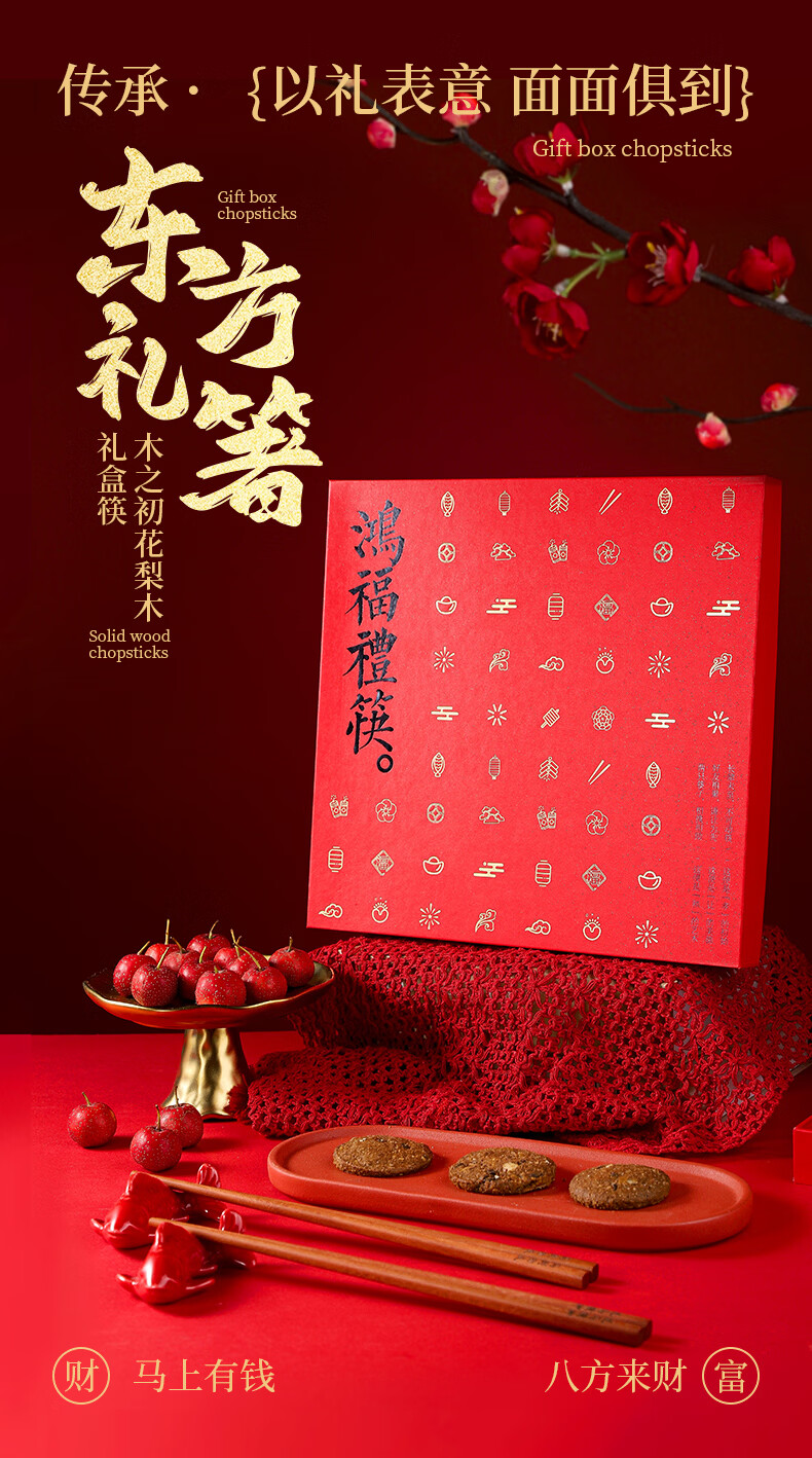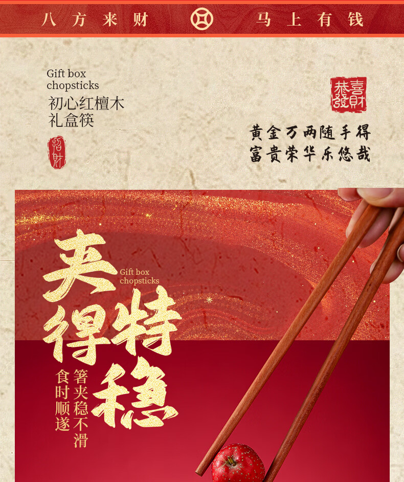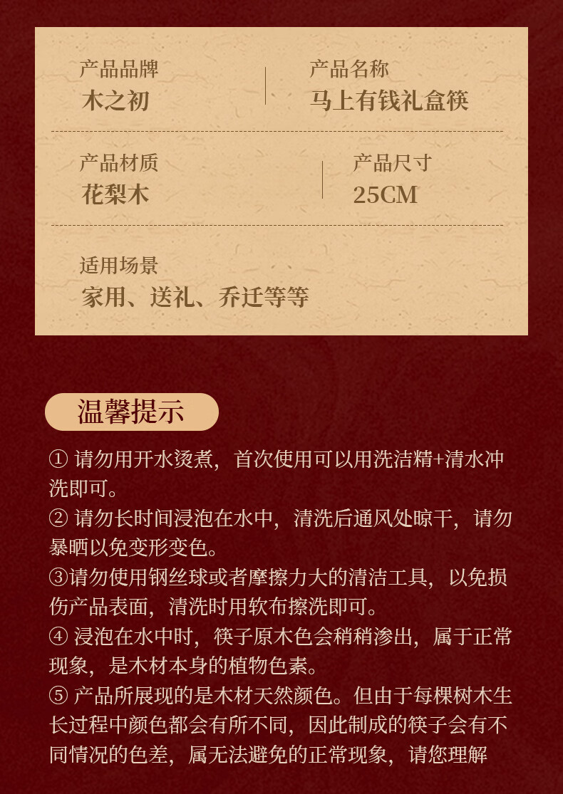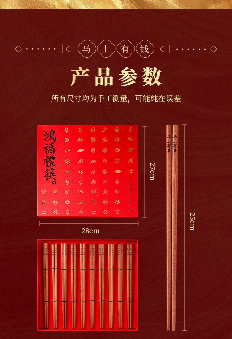 木之初 马上有钱 花梨木筷子无漆无蜡家用新年春节高档送礼盒餐具套装 【马上有钱】-花梨木10双礼筒装