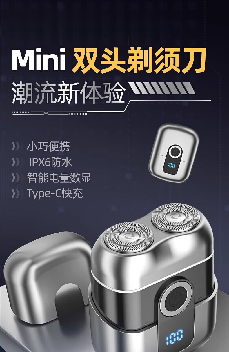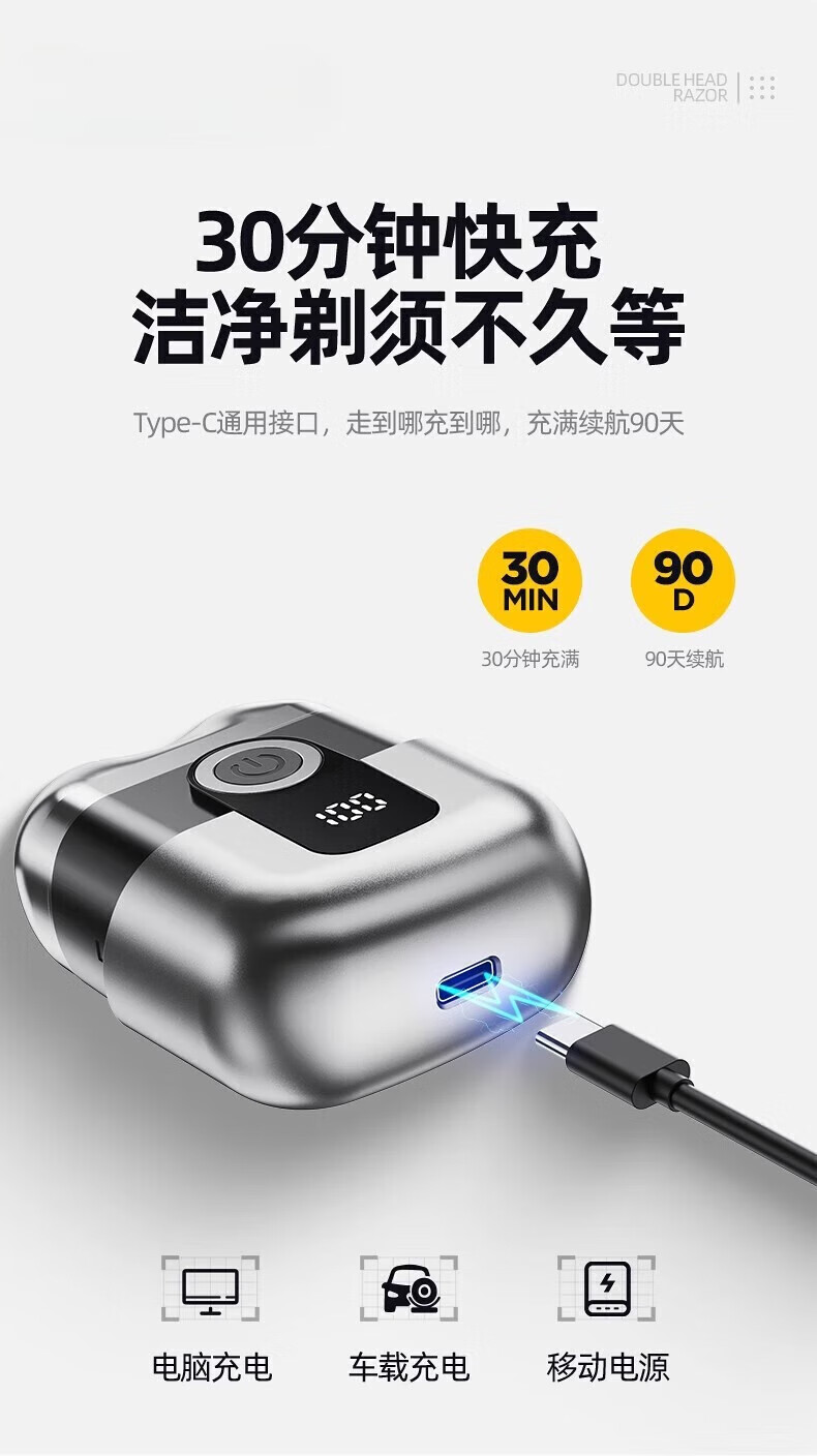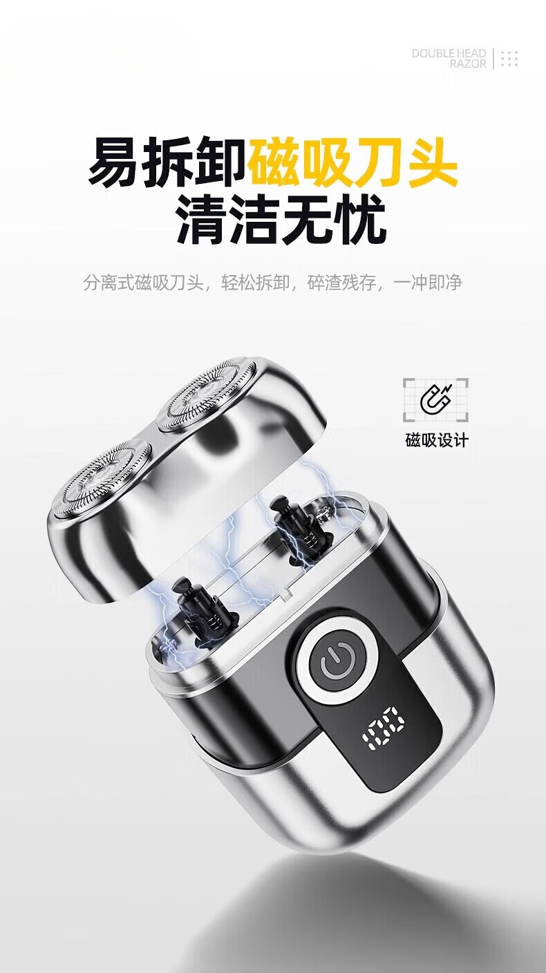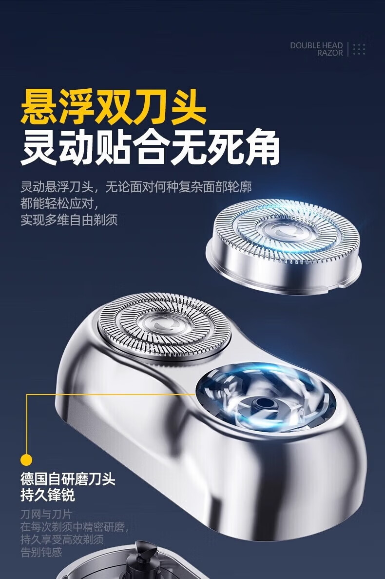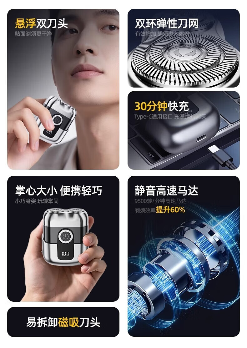 飒望德国剃须刀电动男士2026新款刮胡刀差旅便携轻便单头迷你刮胡子充电式全身水洗男生七夕礼物送男友 枪灰色尊享款+2个刀头 新年礼物送男友