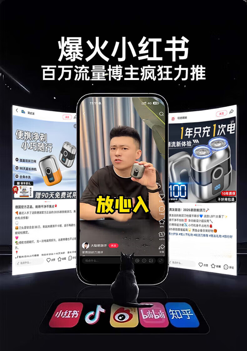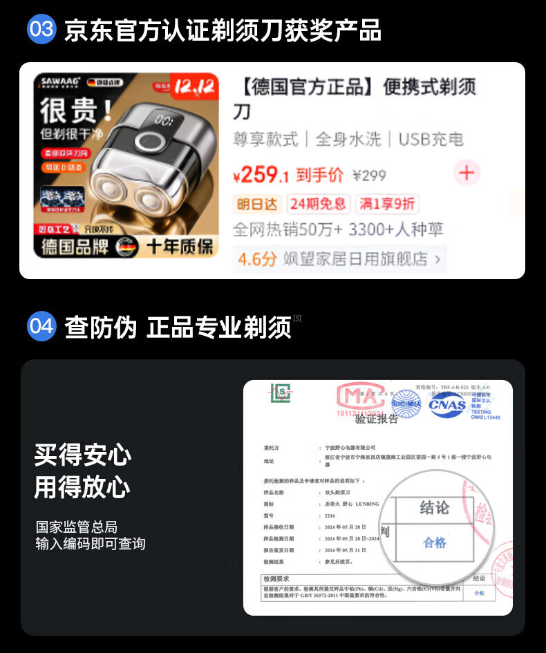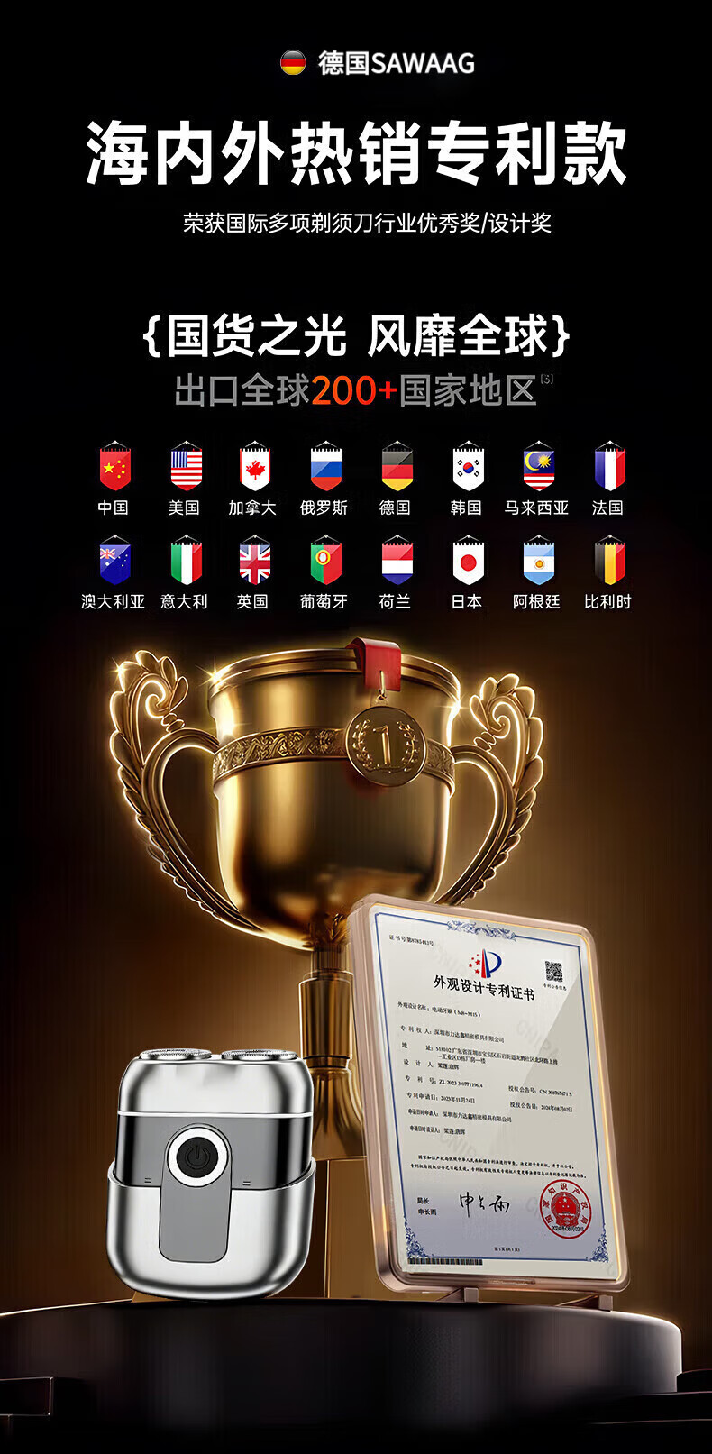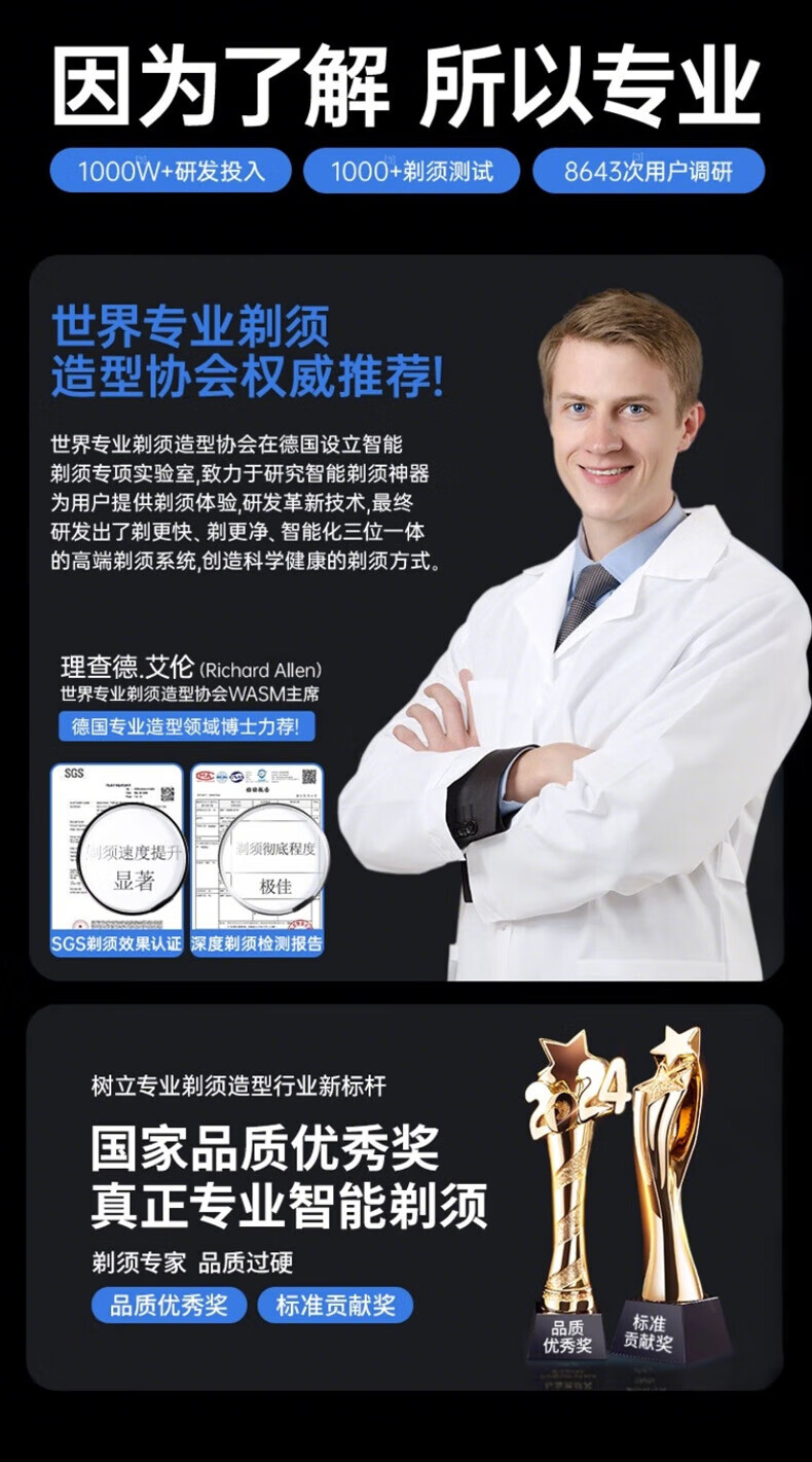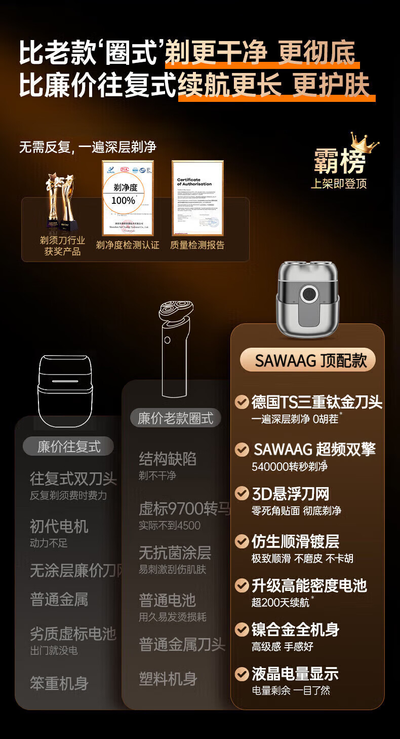 飒望德国剃须刀电动男士2026新款刮胡刀差旅便携轻便单头迷你刮胡子充电式全身水洗男生七夕礼物送男友 枪灰色尊享款+2个刀头 新年礼物送男友