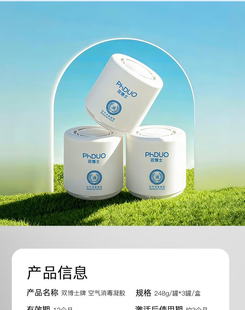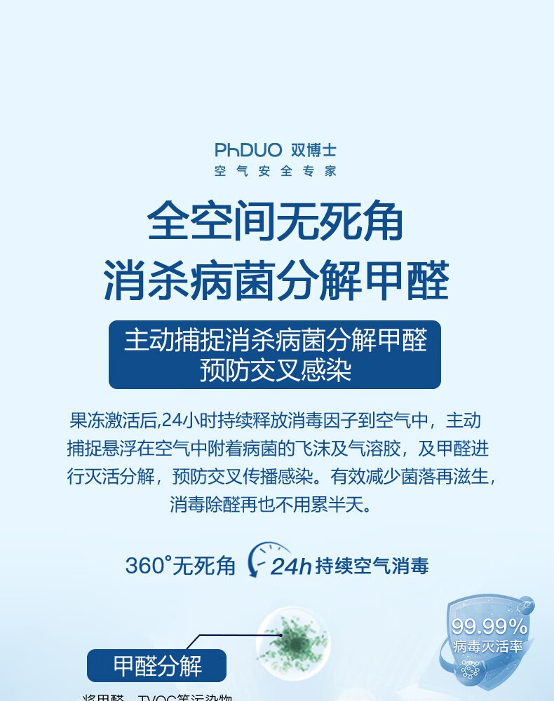双博士防流感防甲流李斯特菌大肠杆菌除甲醛果冻3罐80以平空气消毒凝胶 【40-80平】3大罐*248g(赠消杀喷雾*2+除醛喷雾*1)