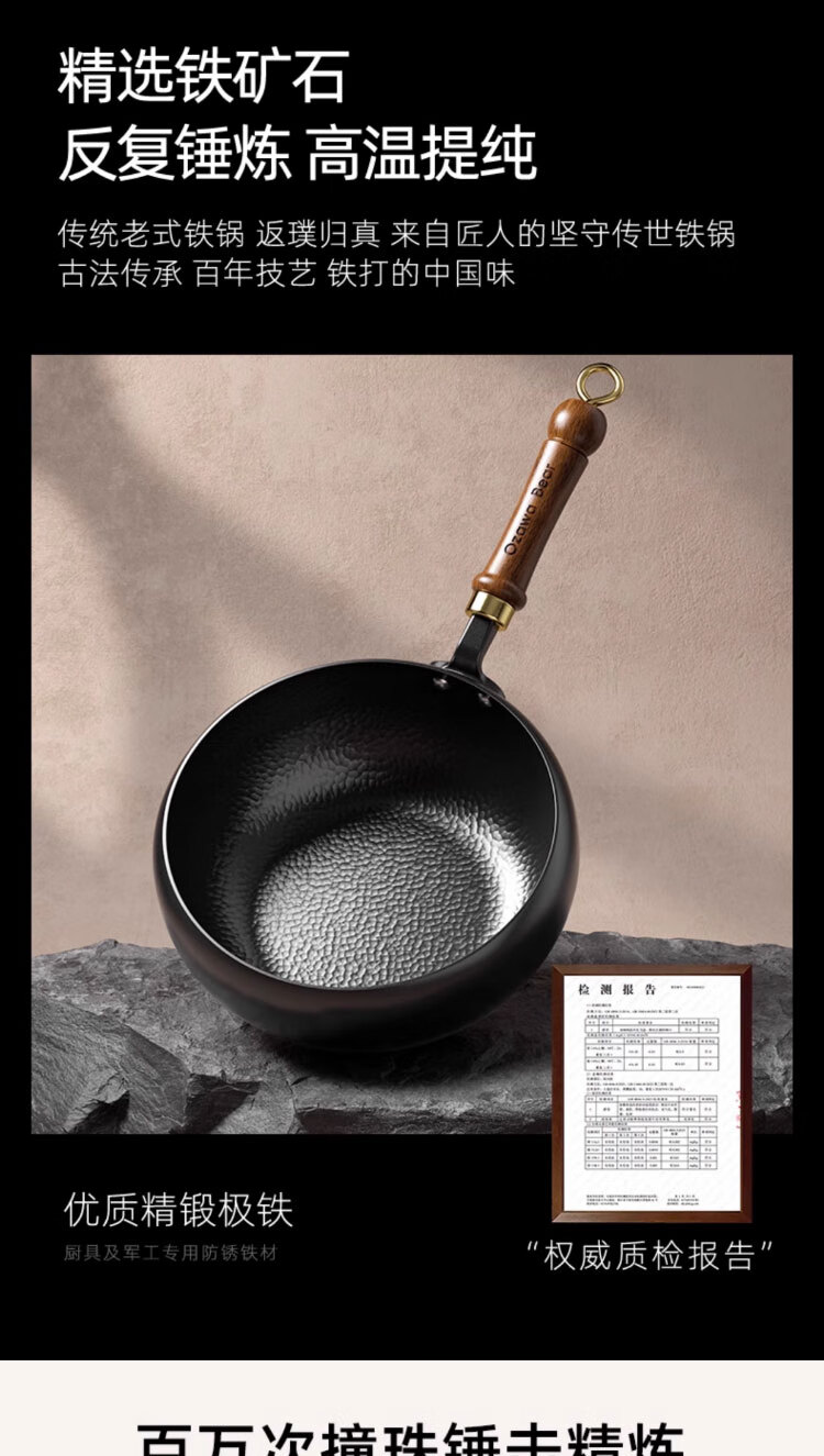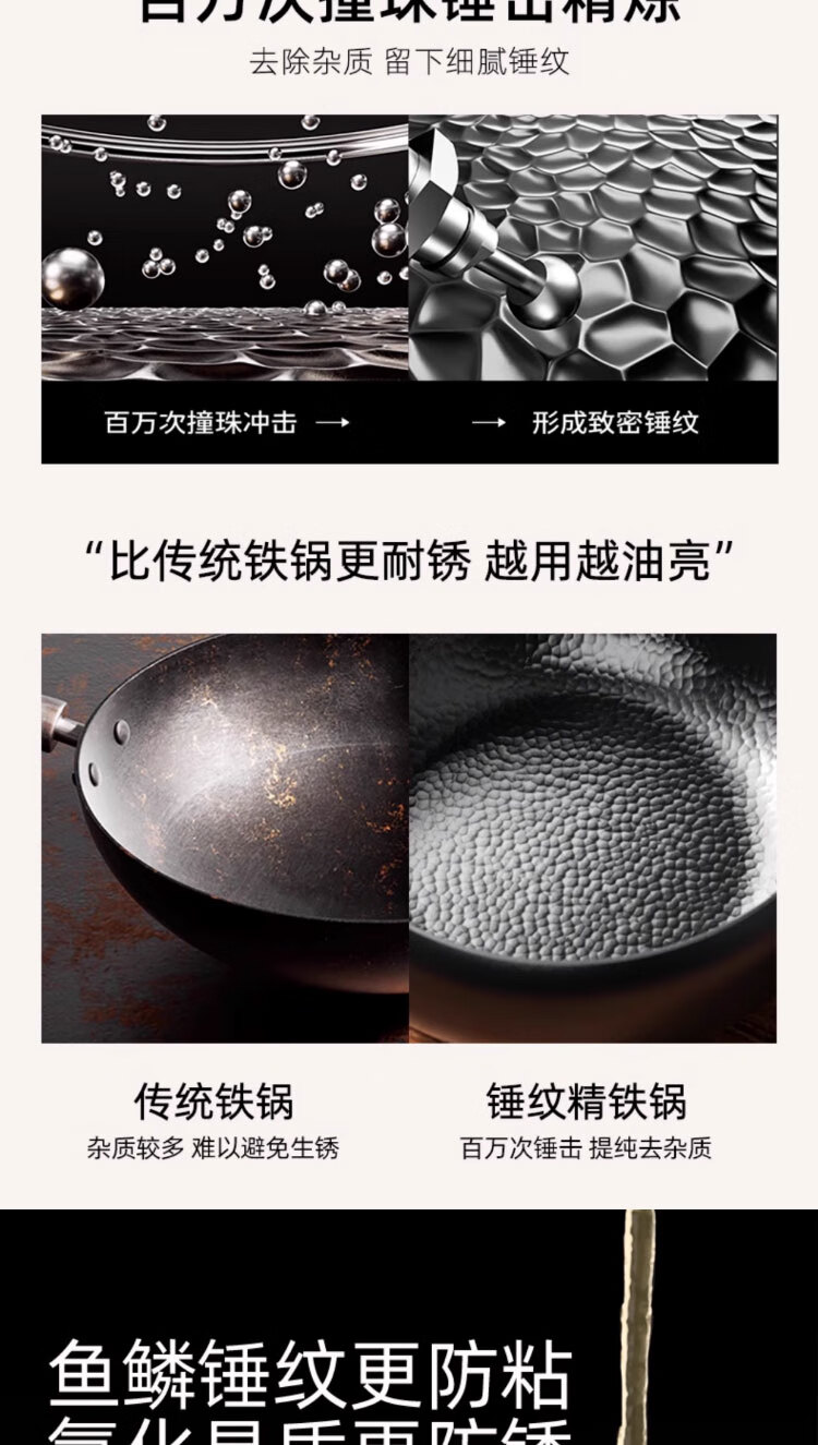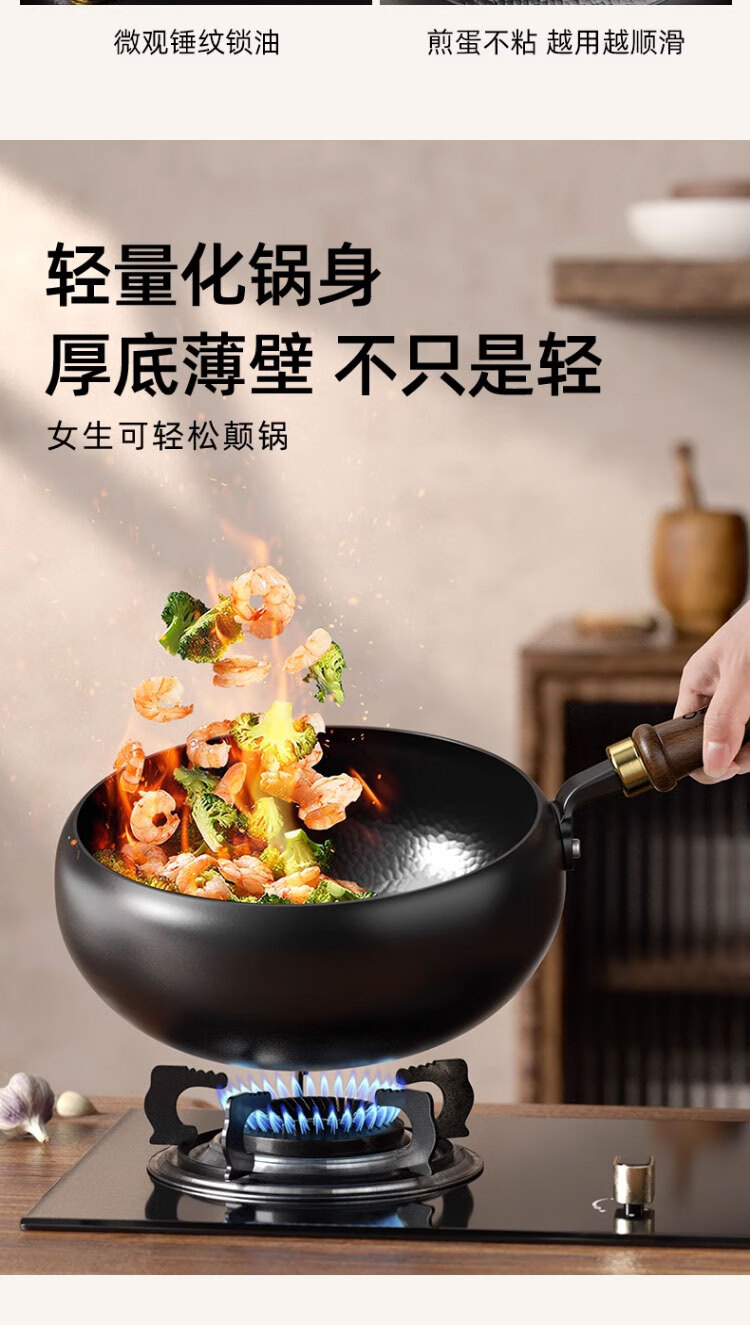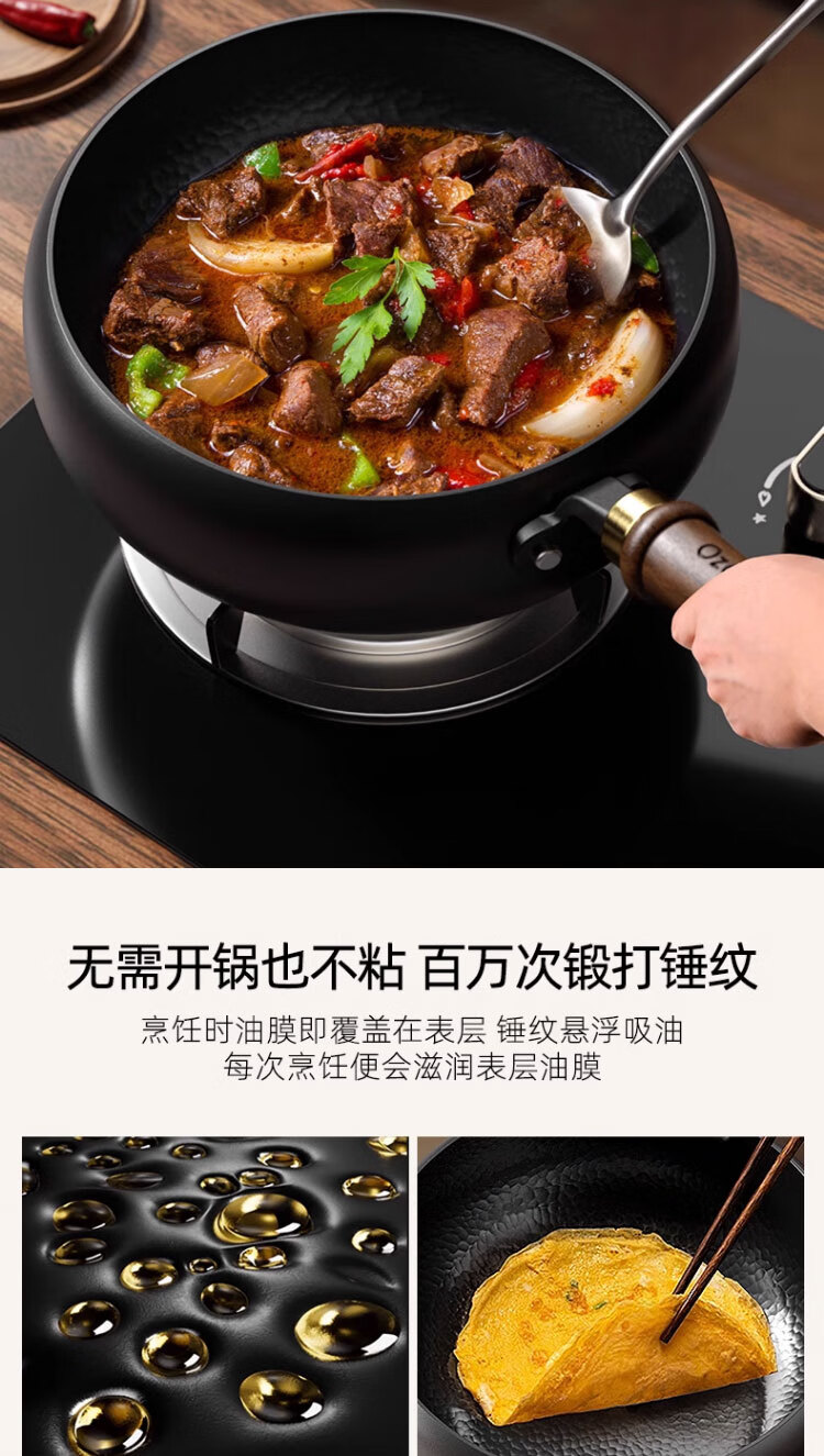 京营美佳大肚锅章丘锤纹铁锅0涂层炒锅炒菜不粘锅电磁炉燃气专用加厚熟铁 【锤纹大肚锅】送木盖 28cm