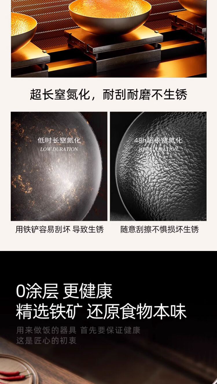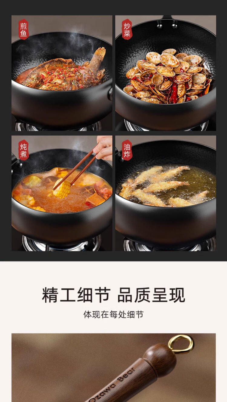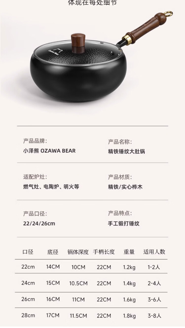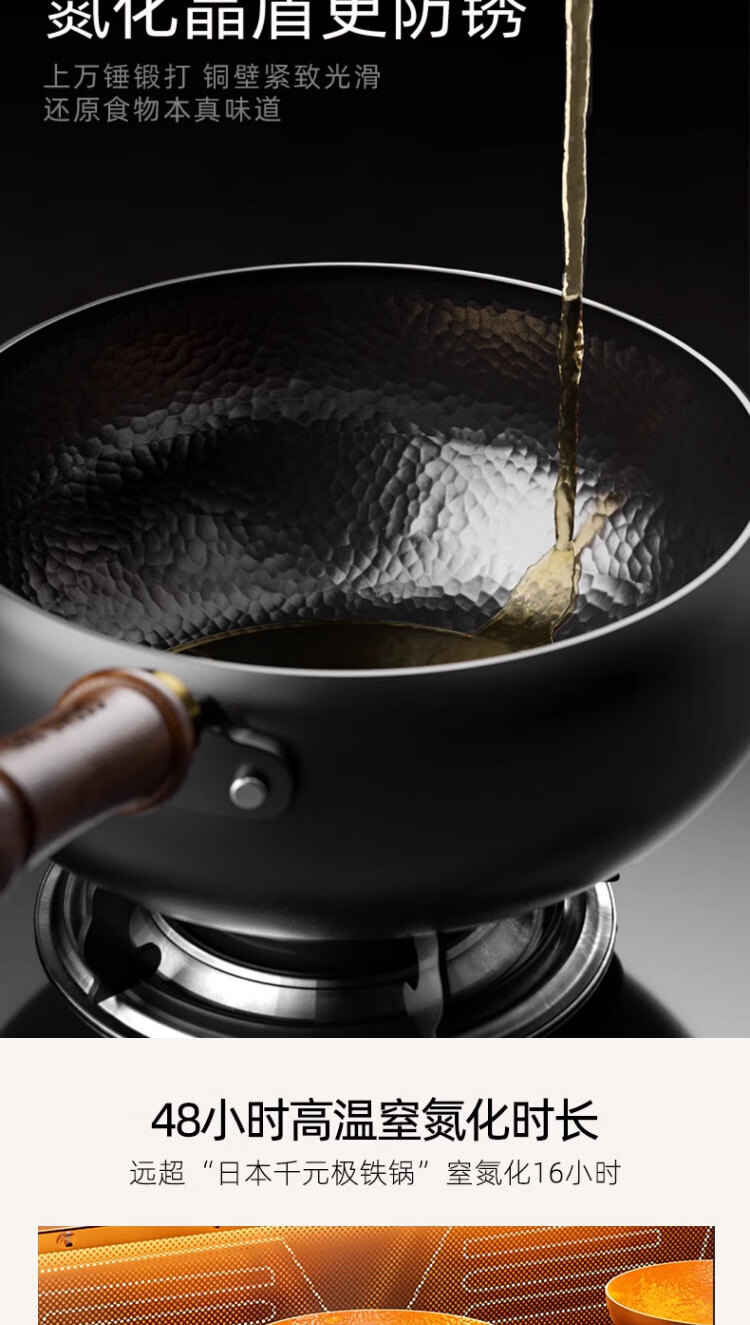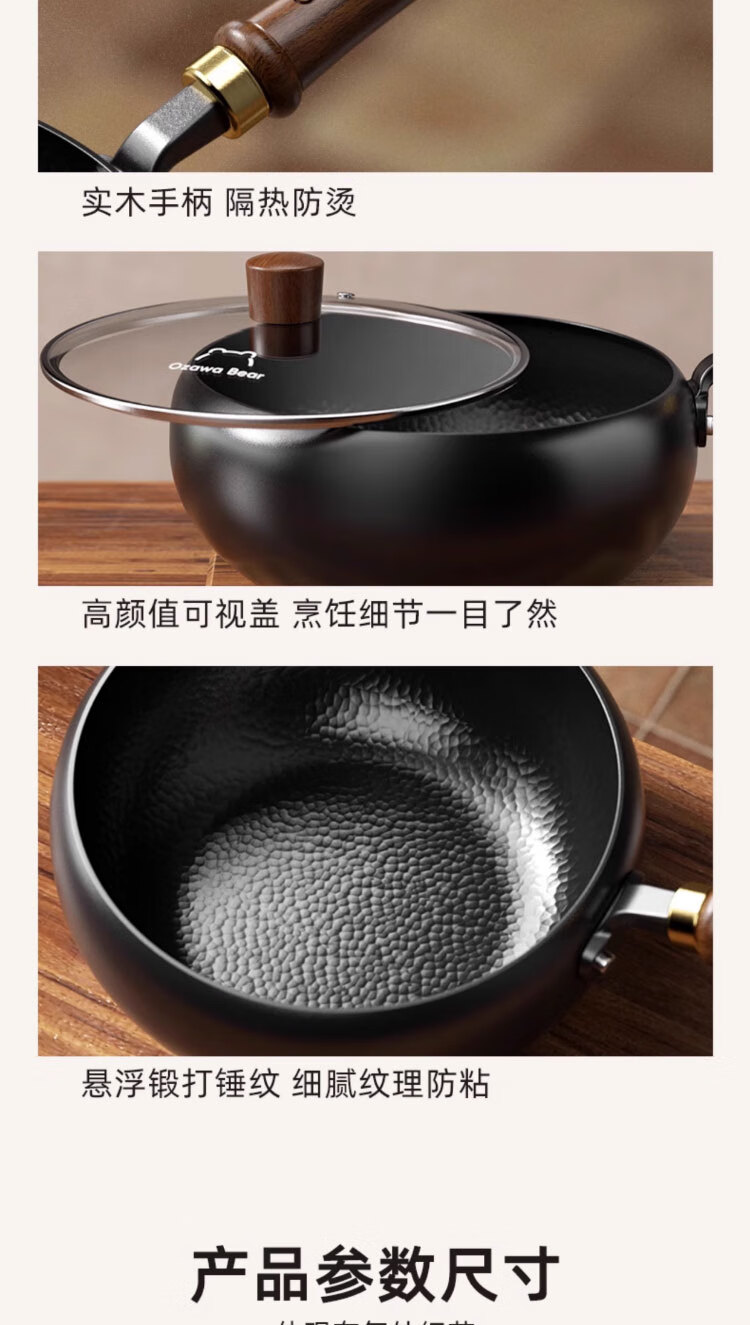 京营美佳大肚锅章丘锤纹铁锅0涂层炒锅炒菜不粘锅电磁炉燃气专用加厚熟铁 【锤纹大肚锅】送木盖 28cm