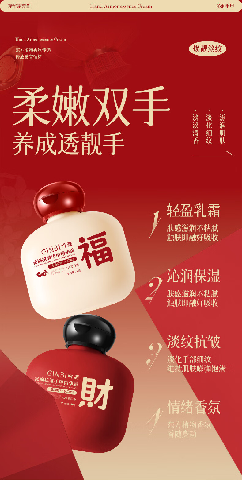 VSZE沁润抗皱手甲精华霜套盒淡化手部细纹轻薄快速吸收不黏腻限定礼盒 抗皱护手霜×2盒【4瓶礼盒装】