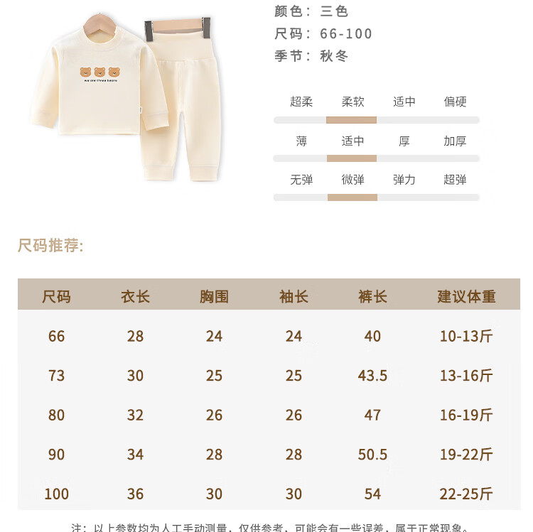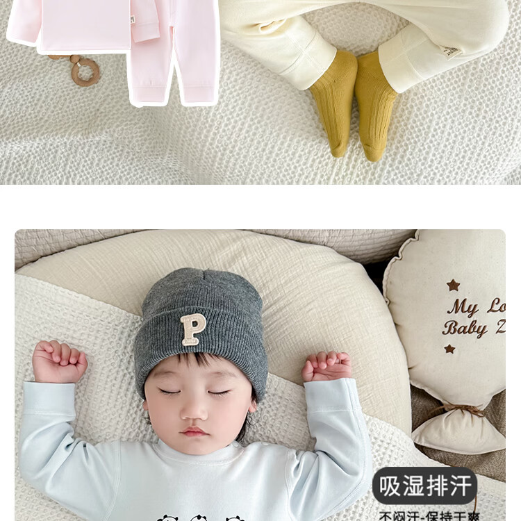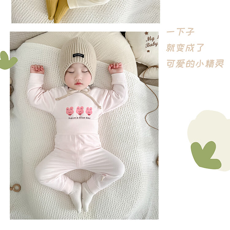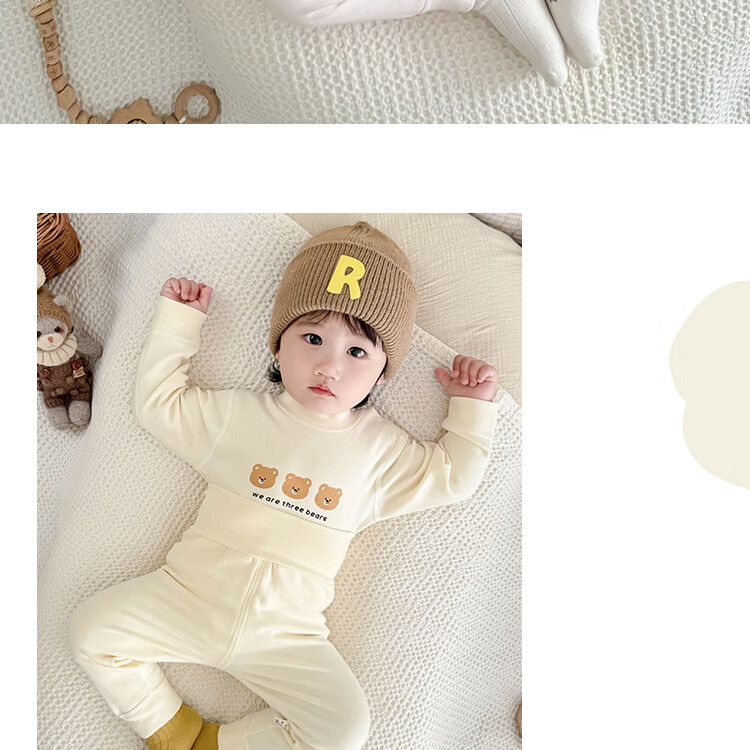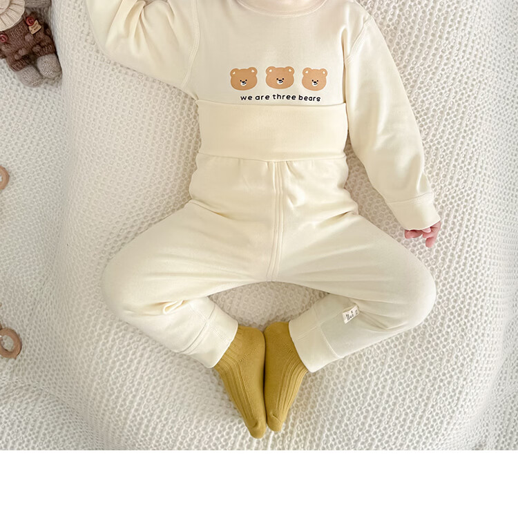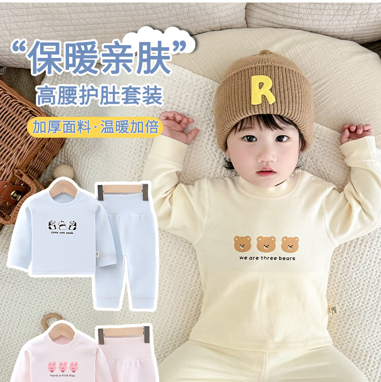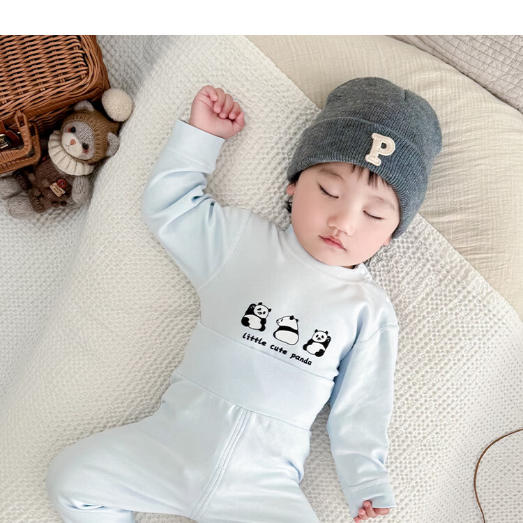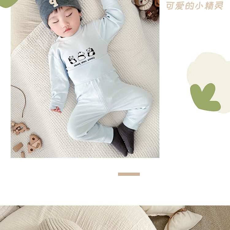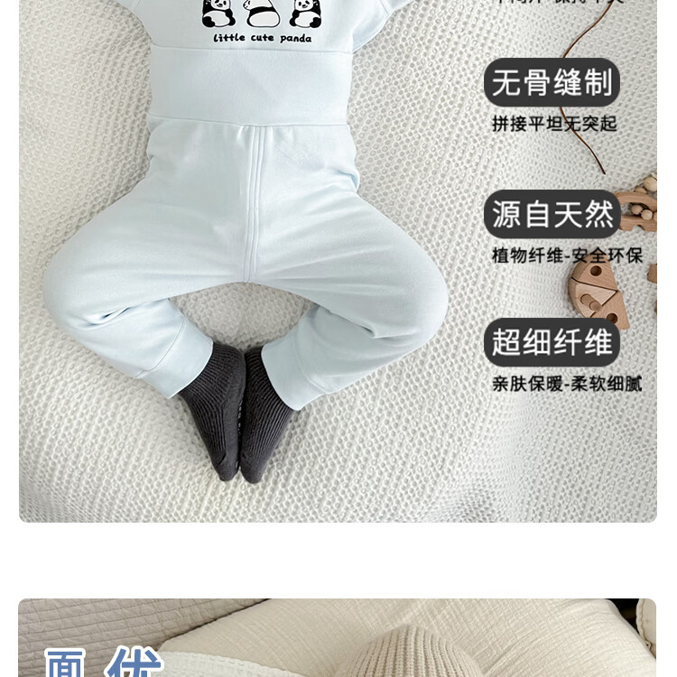 藤之木工房宝宝舒绒套装高腰护肚无骨A类加厚保暖套装秋冬分体内衣套装 蓝色熊猫 66 码