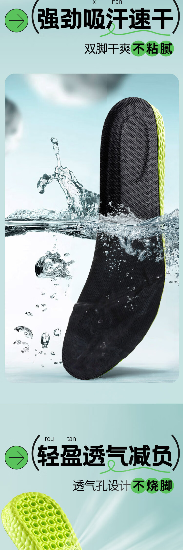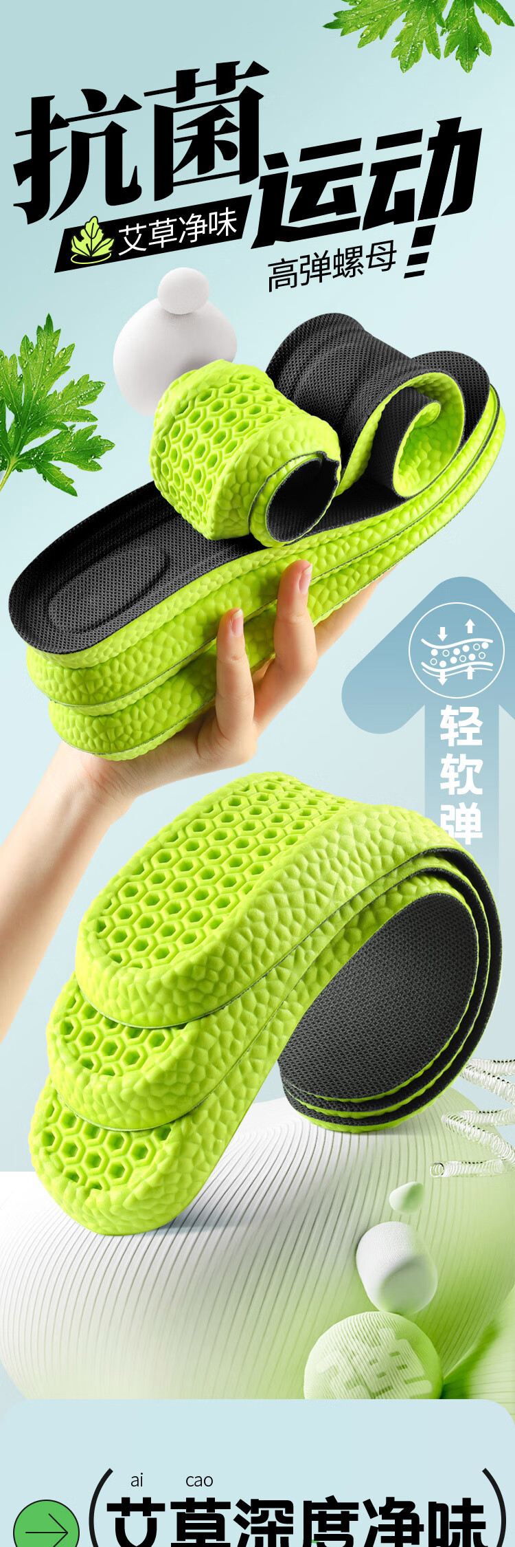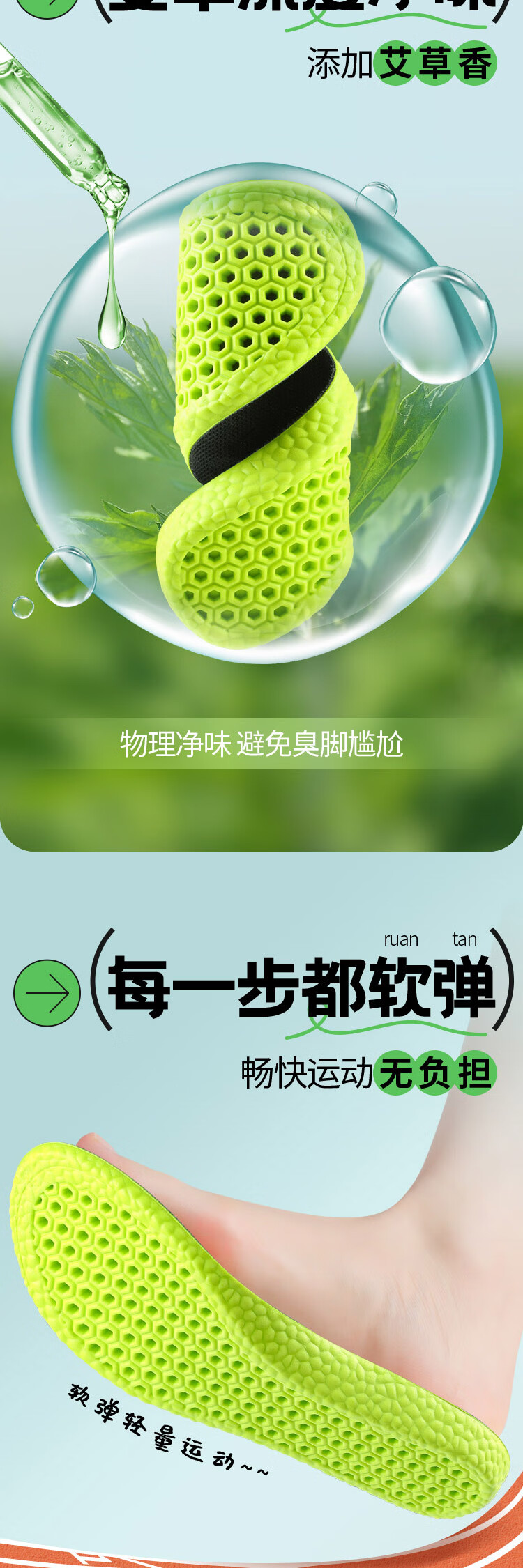乐拓行运动鞋垫男艾草除臭软弹站久不累减震防痛吸汗防臭透气抗菌不闷脚 2双【绿黑】运动减震/艾草除臭 4142码 可裁剪更贴合鞋型