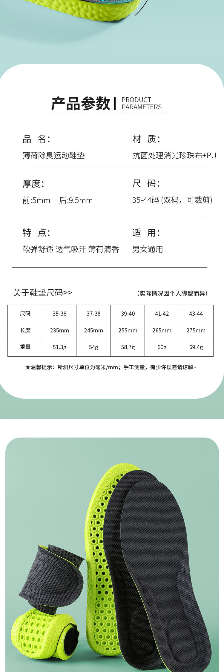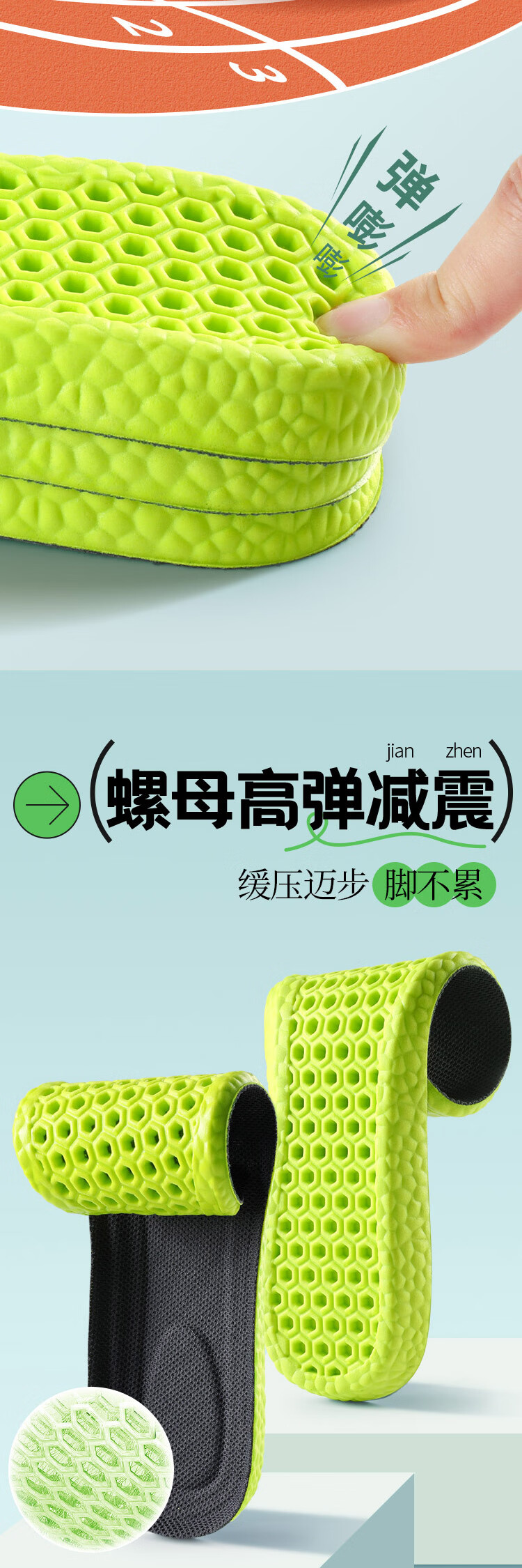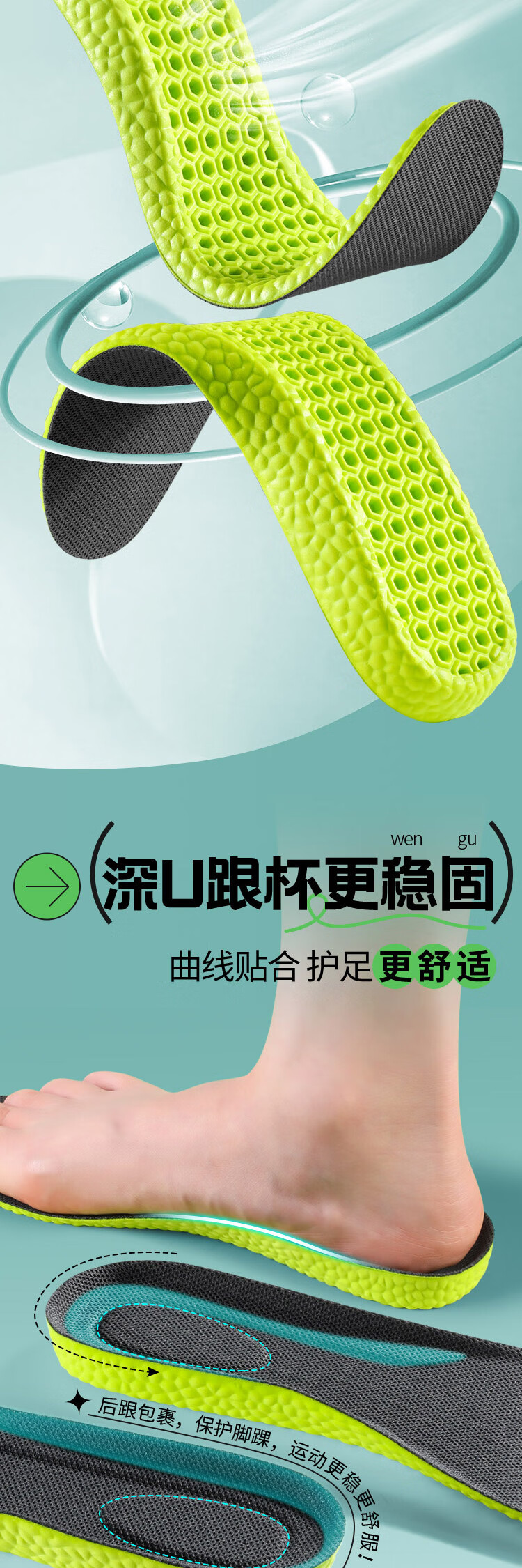 乐拓行运动鞋垫男艾草除臭软弹站久不累减震防痛吸汗防臭透气抗菌不闷脚 2双【绿黑】运动减震/艾草除臭 4142码 可裁剪更贴合鞋型