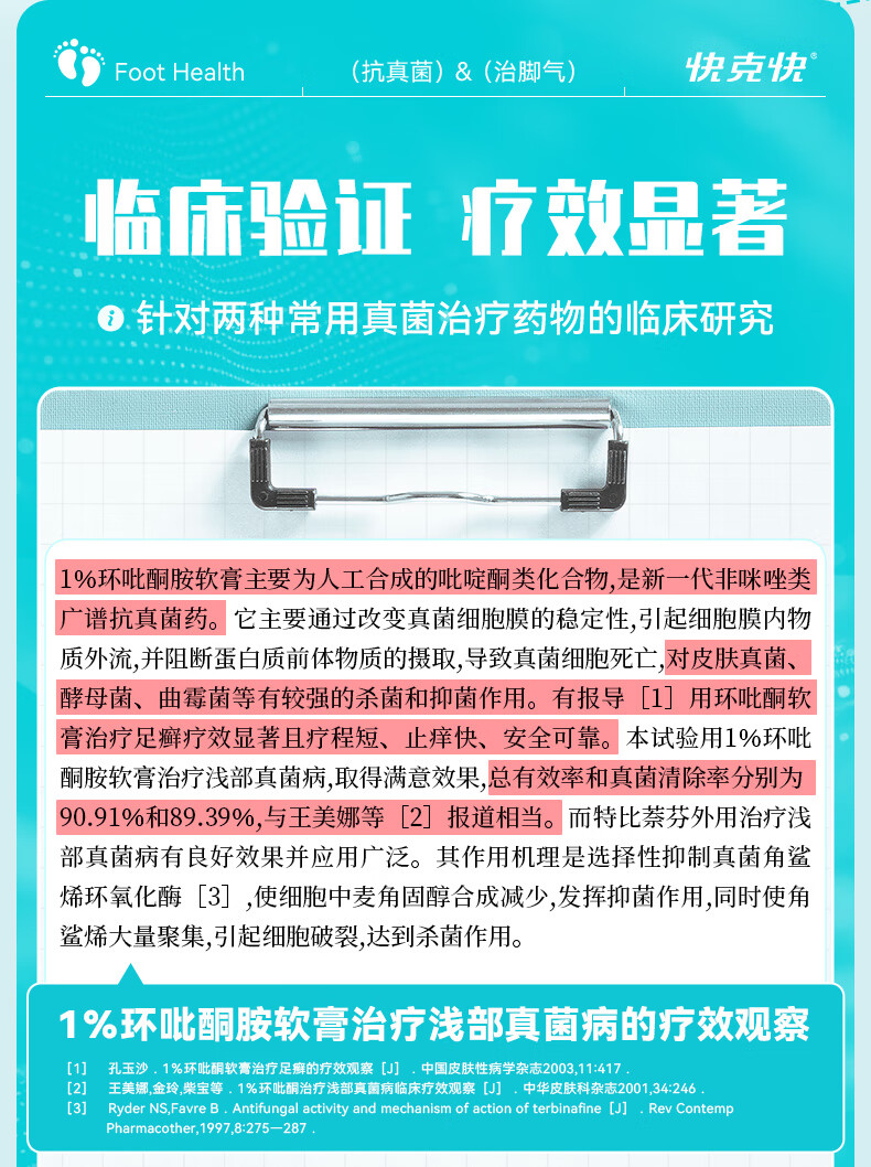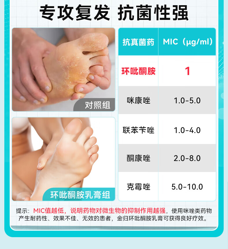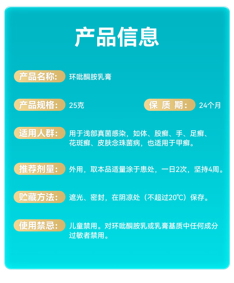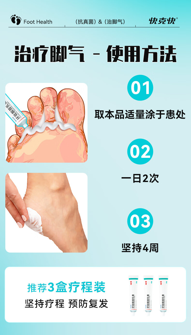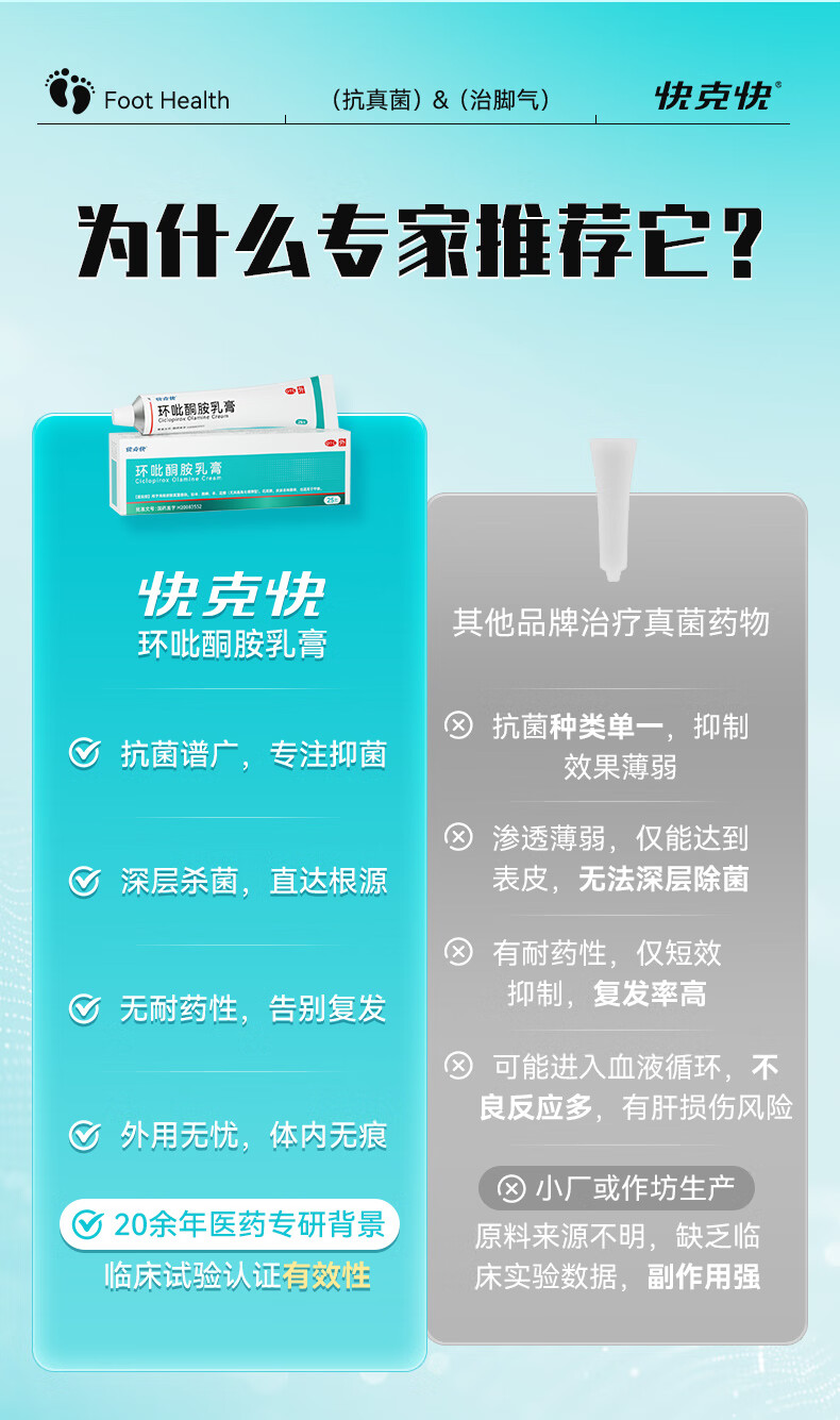 [快克快]环吡酮胺乳膏 1%*25g 1盒装 抗真菌官方旗舰店脚气止痒脱皮环吡酮擦剂搽剂涂 赠棉签50支