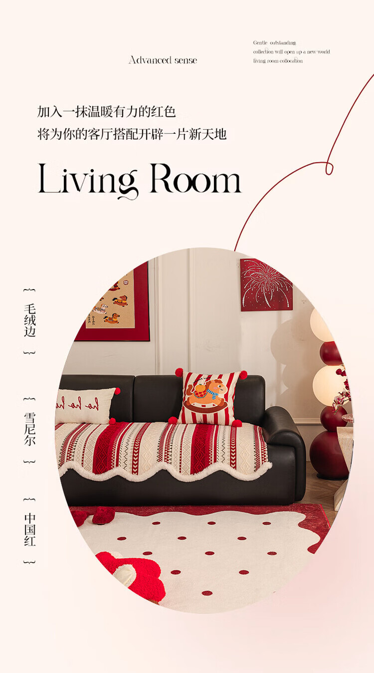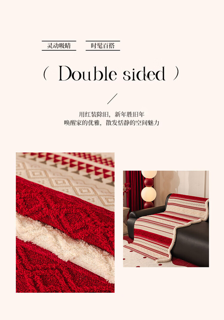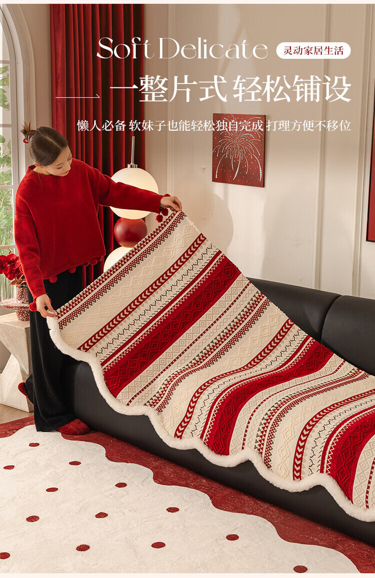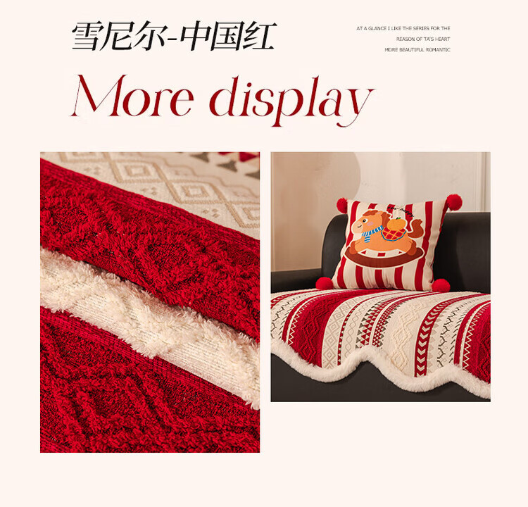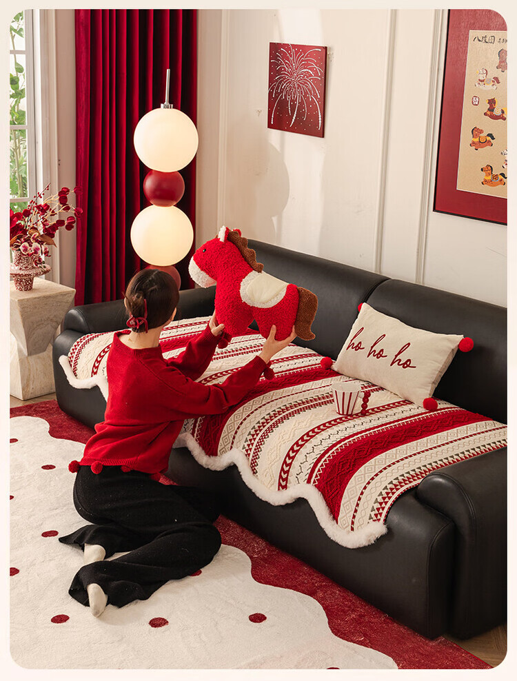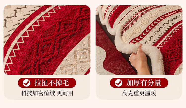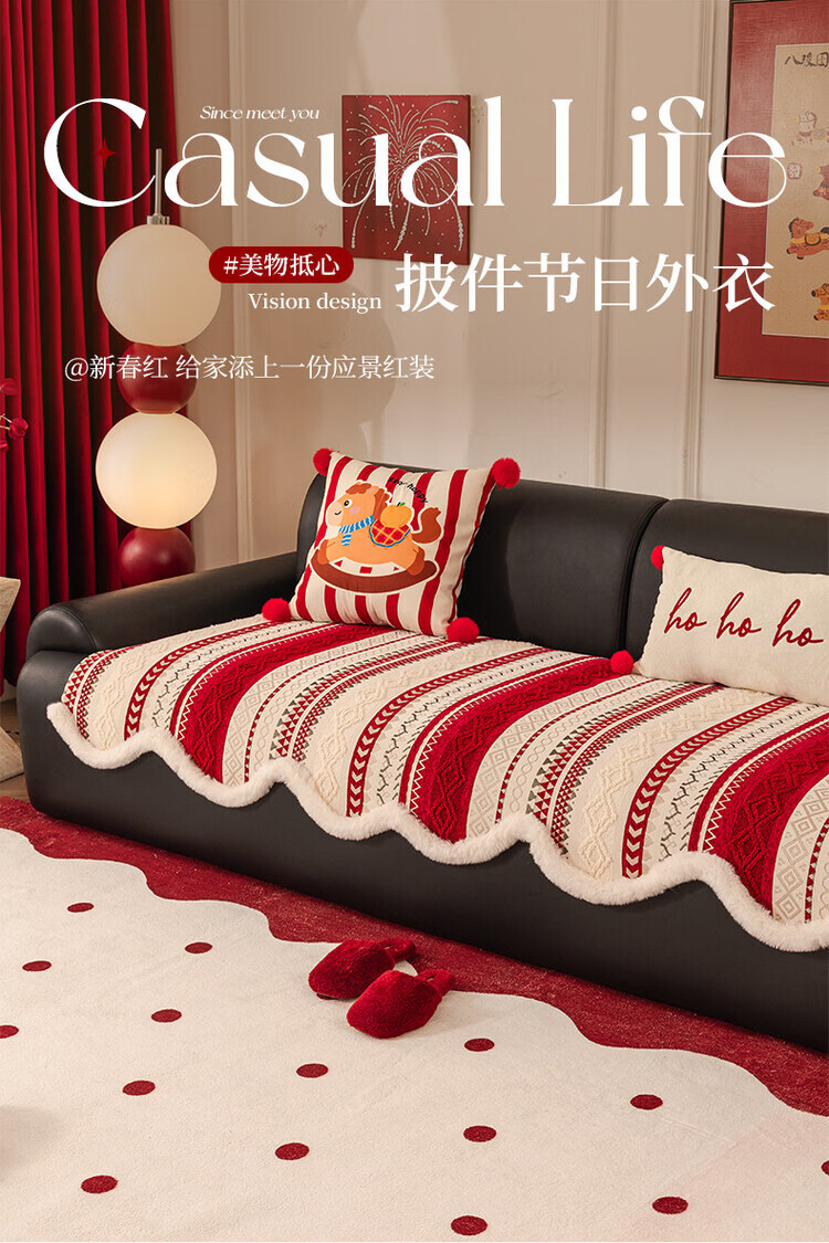 ALPLUME新年喜庆沙发垫2026新款节日氛围感红色坐垫高级感防滑防猫抓盖布 雪绒-红色 三人位 【一片】90*210cm三人位