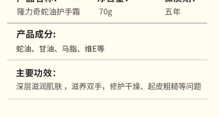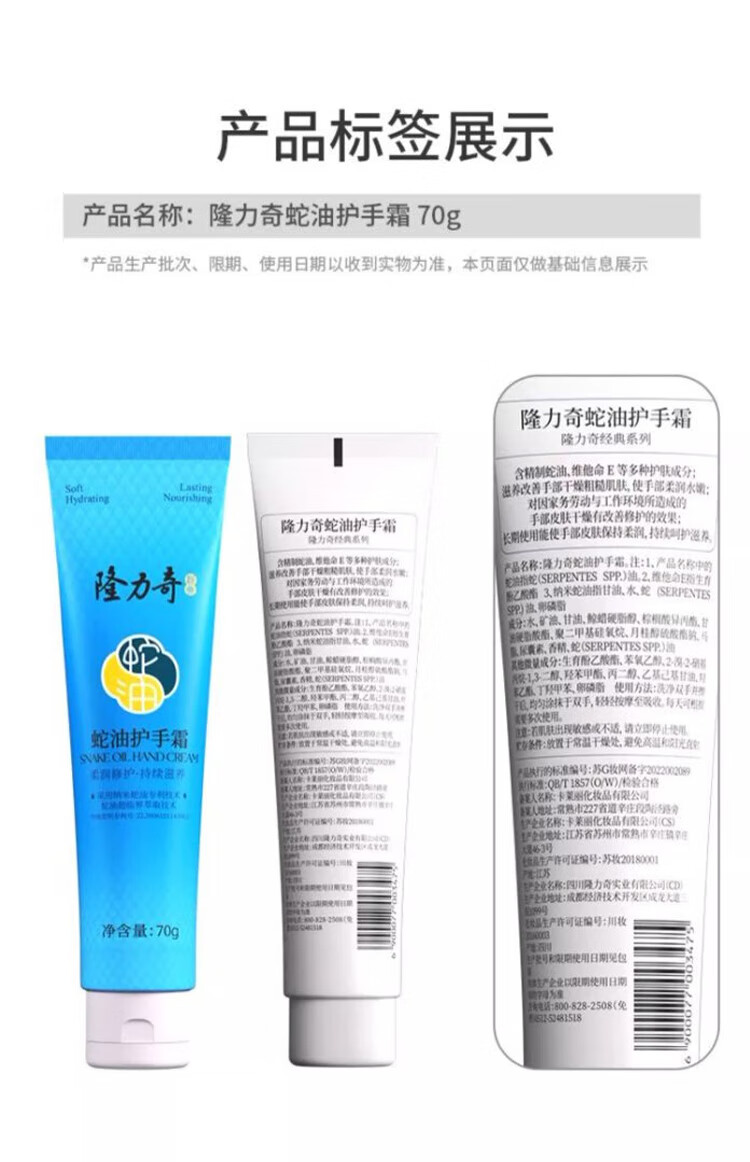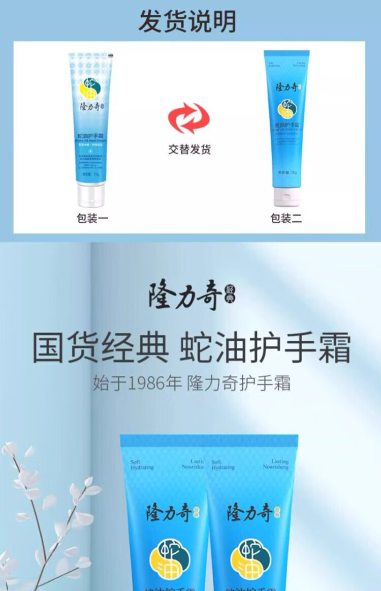 隆力奇蛇油护手霜经典款滋润保湿防干裂秋冬季男女 蛇油护手霜70g*3支