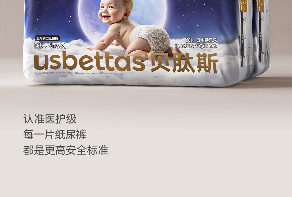 贝肽斯仿生胎脂皮拉拉裤婴儿超薄透气柔软宝宝尿不湿婴儿纸尿裤 XL 34片 【12至17kg适用】