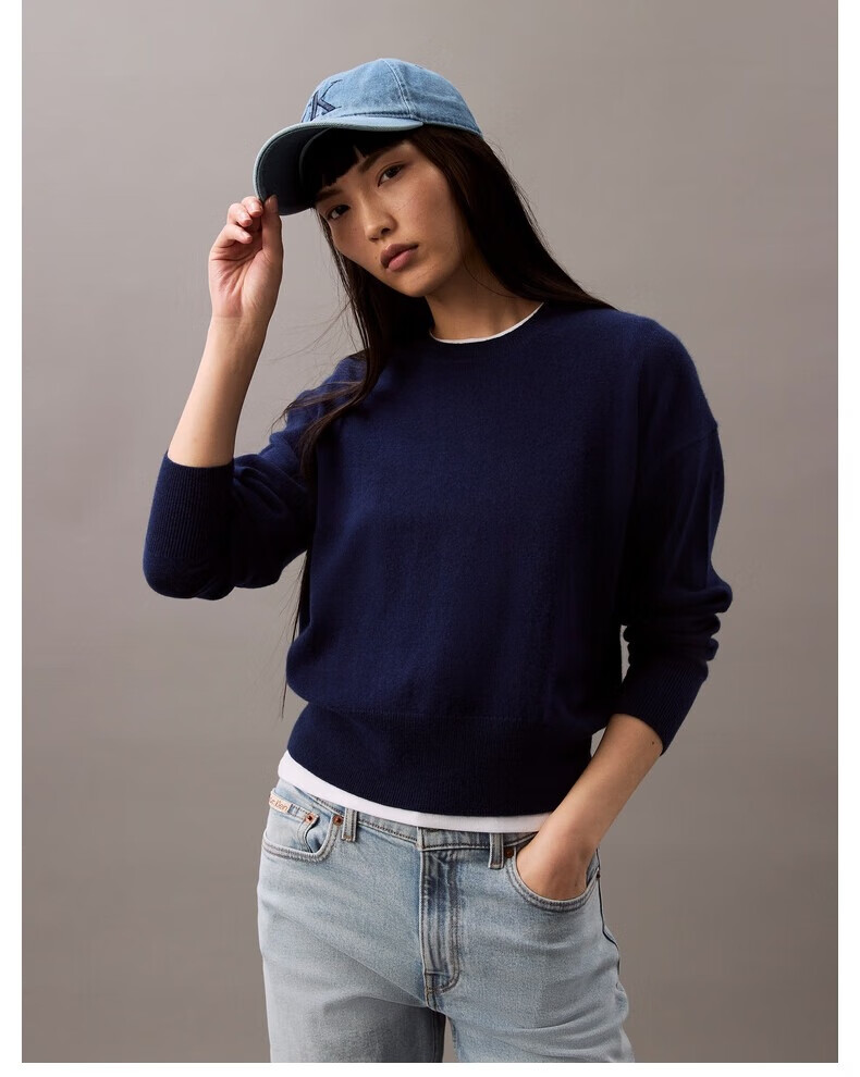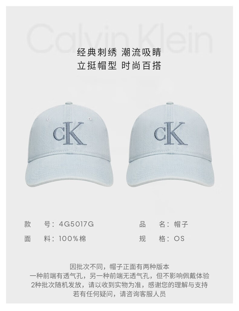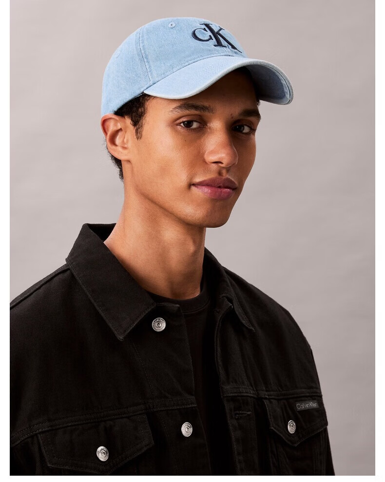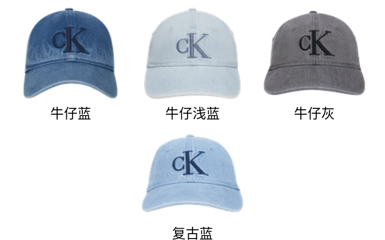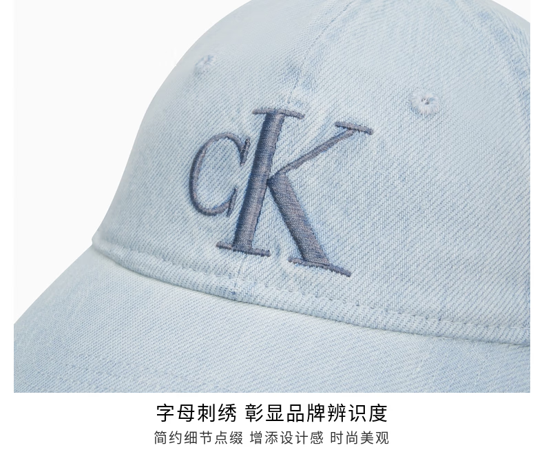 Calvin KleinJeans【新年礼物】男女情侣中性ck刺绣徽标美式复古牛仔棒球帽 LHL-牛仔浅蓝 均码 OS