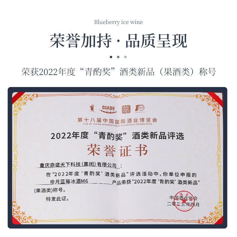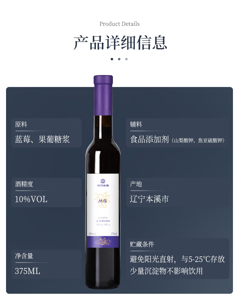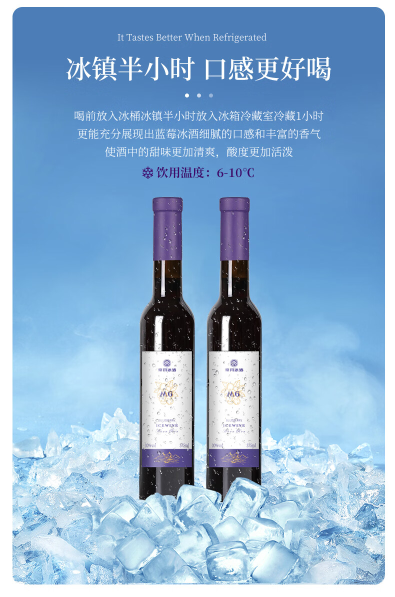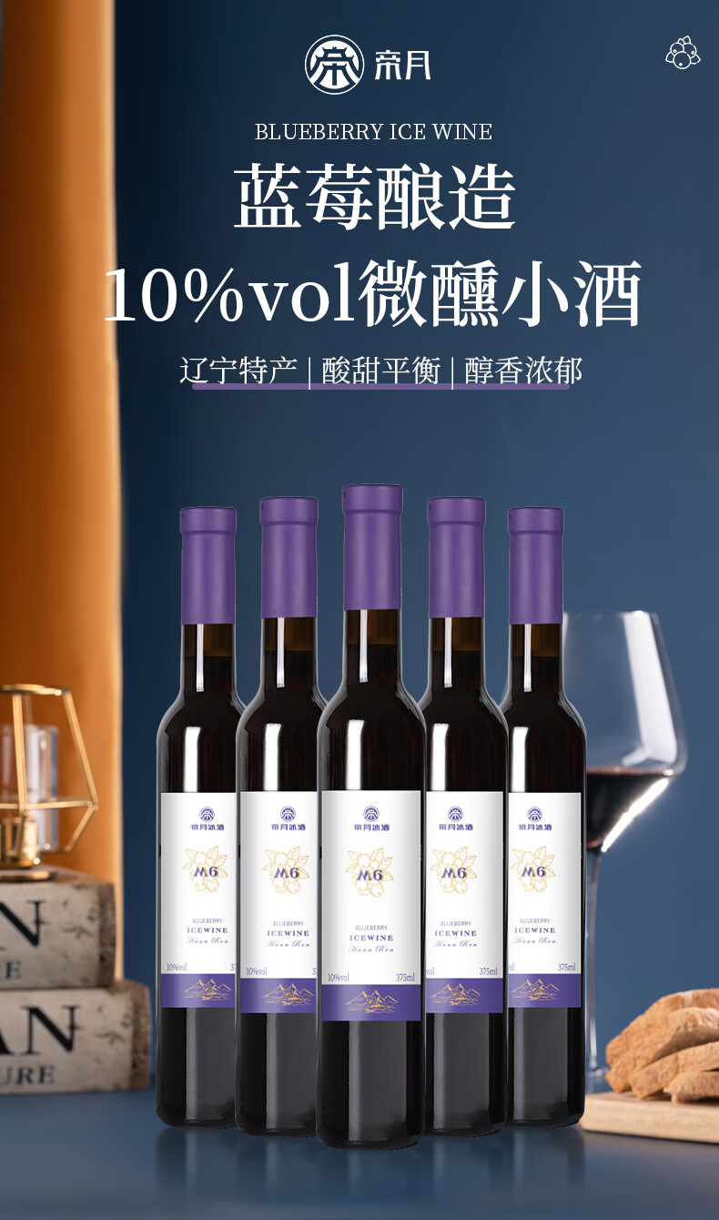 帝月野生蓝莓冰酒M6辽宁特产女生喝甜型果酒低度微醺小酒国产红酒送礼 【整箱】蓝莓冰酒M6 375ml*6瓶(赠开瓶器)