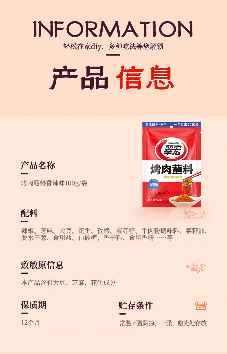 翠宏烤肉蘸料100g香辣味烧烤料烤肉火锅蘸料撒料四川干碟蘸料