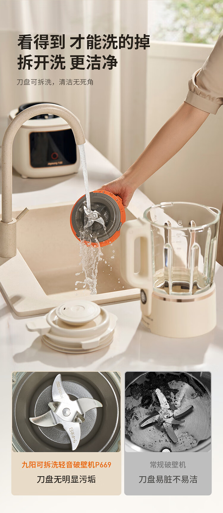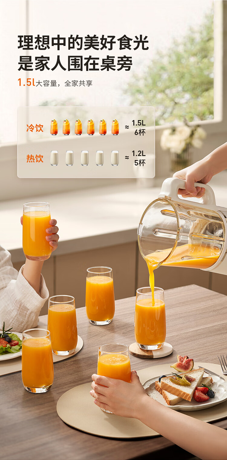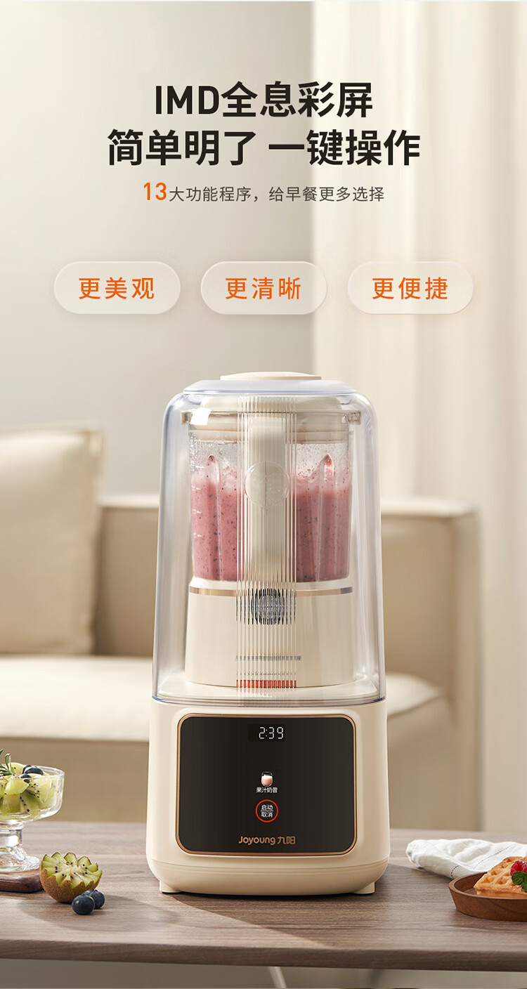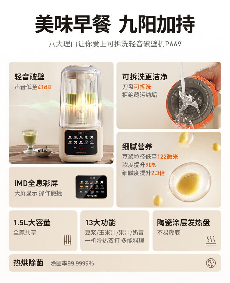 九阳可拆洗破壁机低音家用轻音全自动易清洗破壁机五谷杂粮豆浆机1.5L五谷杂粮2-4人P669 国家补贴