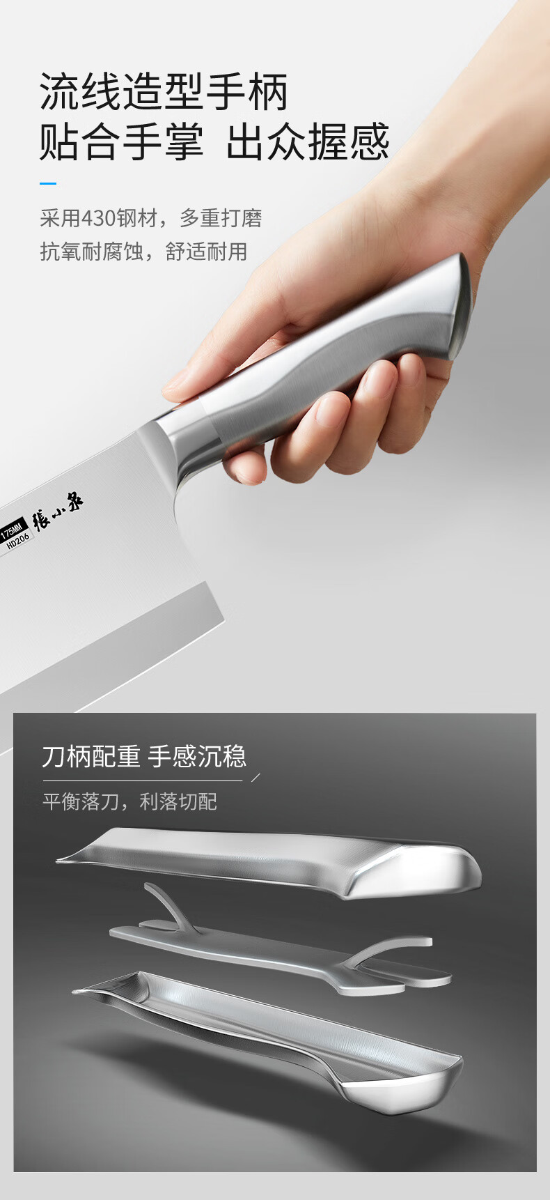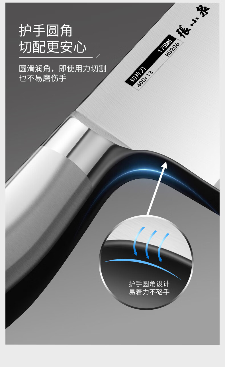 张小泉流线几何·炫影家用不锈钢切片刀菜刀切片菜刀D100501