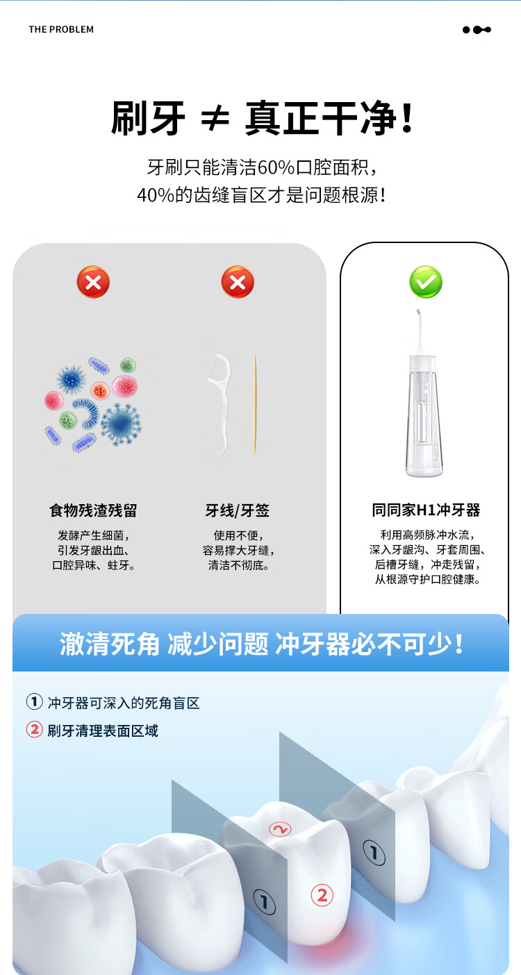同同家冲牙器H1 电动洗牙器水牙线牙齿冲洗器正畸口腔深层清洁牙龈呵护家用便携男女生 新年礼物年会生日 香芋紫