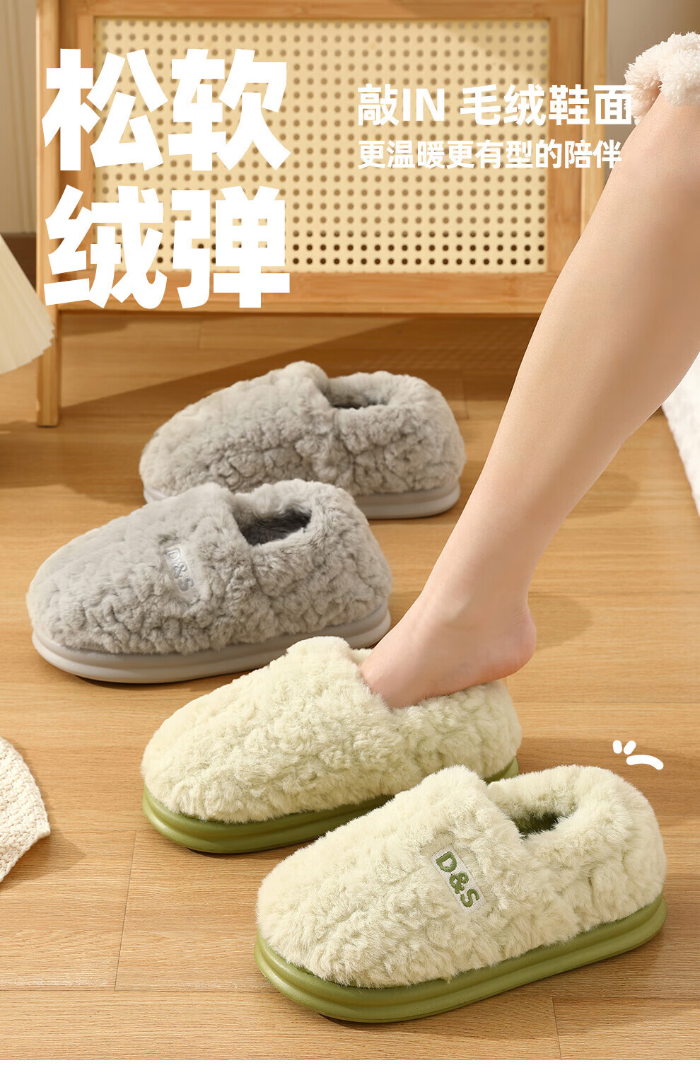 FZT冬季棉拖鞋男士新款居家户外穿防滑毛绒情侣厚底加绒保暖雪地靴 绿色 【3.0升级款超保暖】 36-37 适合35-36【内长230mm】