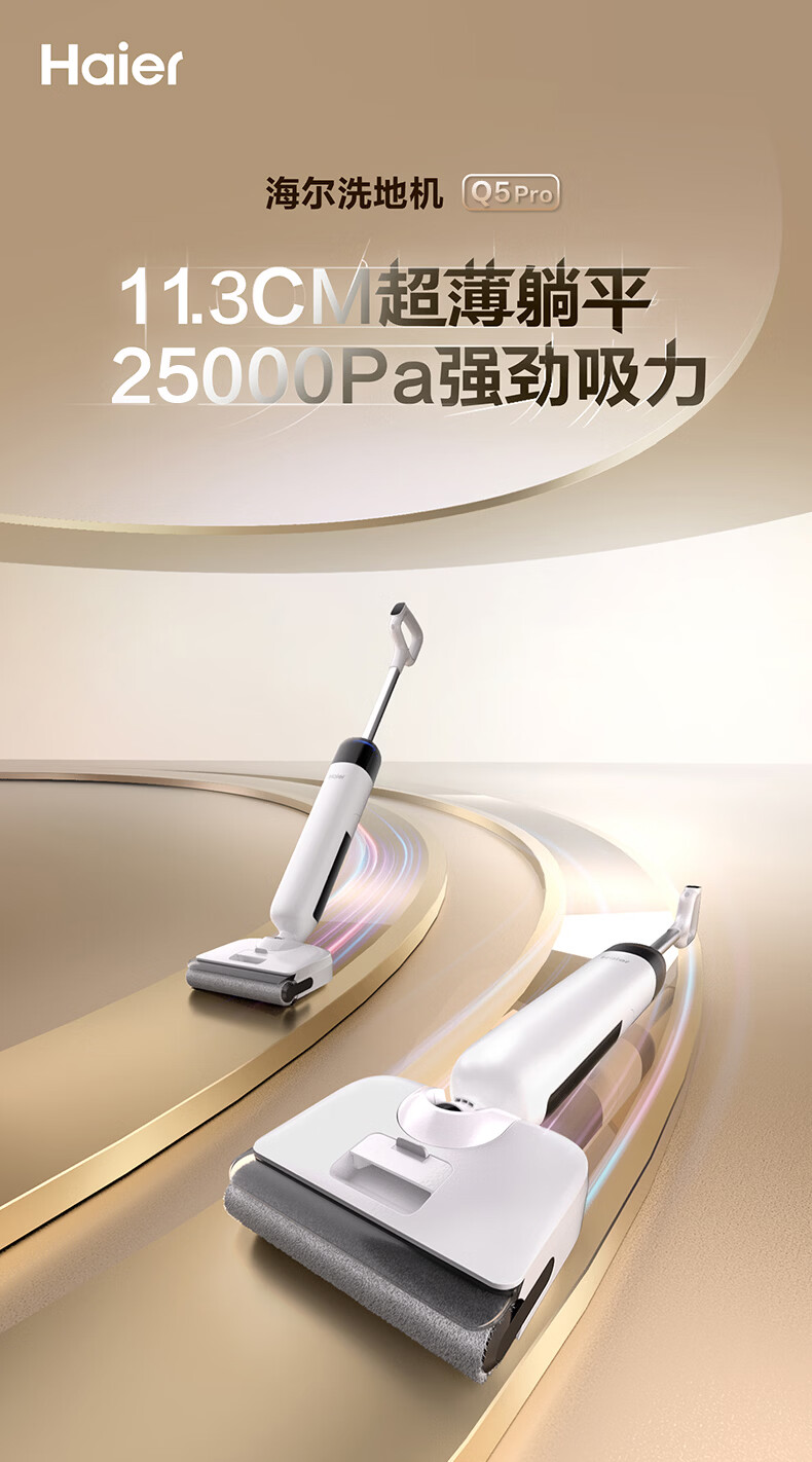 海尔家用洗地机Q5Pro活水毛发防缠绕电解水除菌 无线智能家用洗拖一体自动清洗全自动拖地机吸尘器 【Q5 Pro】25KPa吸力|65℃静音熨烘