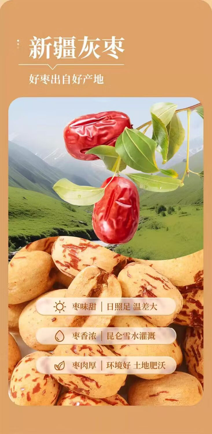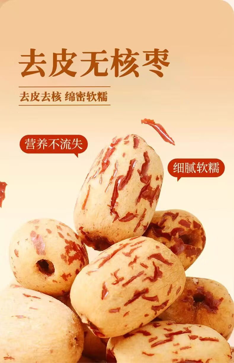 天山雪糯枣新疆红枣无核去皮虎皮枣免洗补气助睡老人儿童零食 1000克