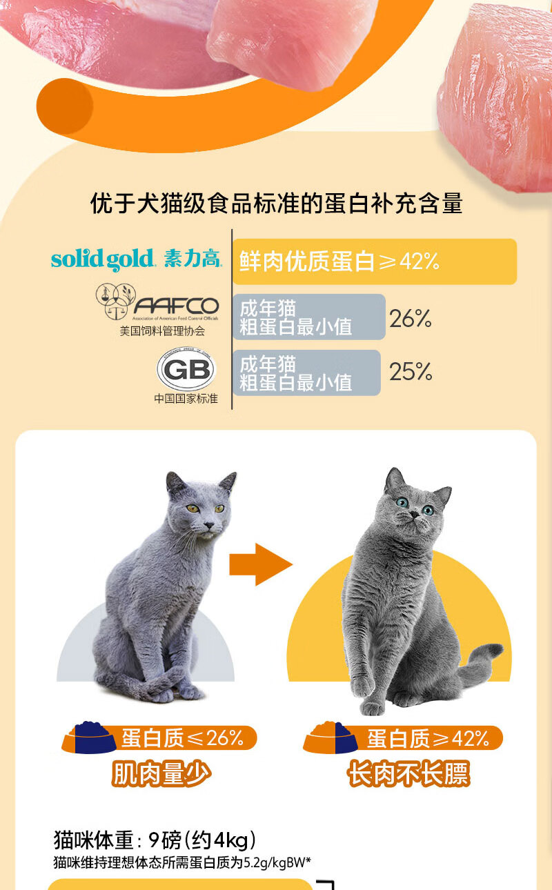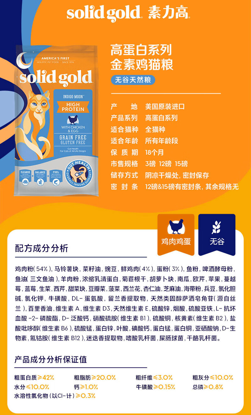 素力高猫粮进口高蛋白金装金素鸡成猫幼猫全价猫粮12磅/5.44kg