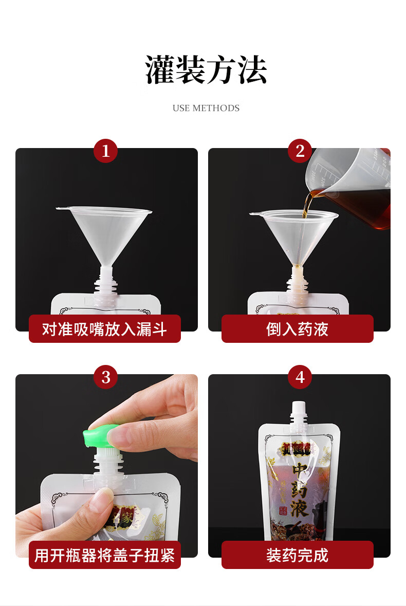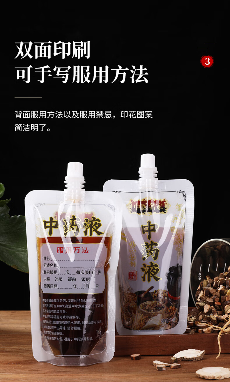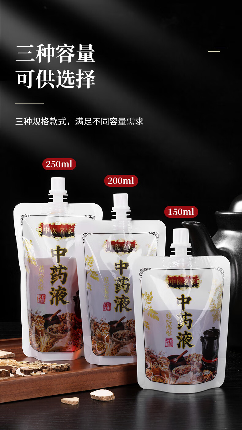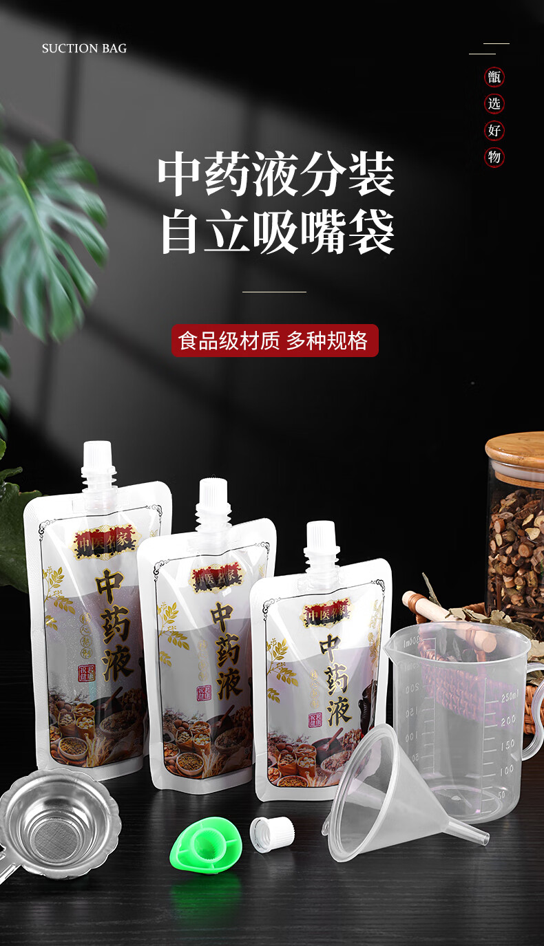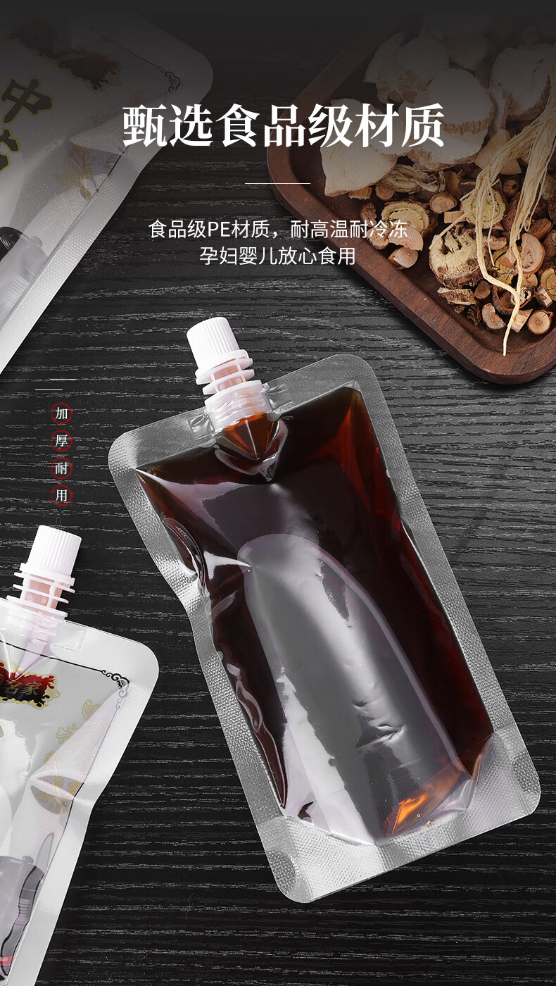 中药液包装袋一次性中药袋煎药分装袋可加热自封袋密封袋吸嘴袋子 50个装-中号200ML(送全套灌装工具)