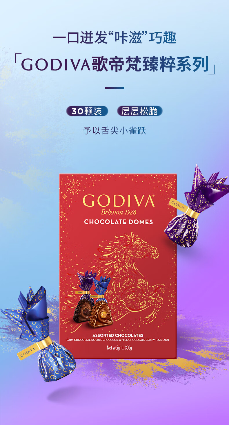 歌帝梵(Godiva)【新年专属】臻粹巧克力礼盒 30颗300g 零食 糖果伴手礼 马年礼物