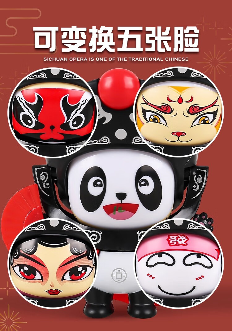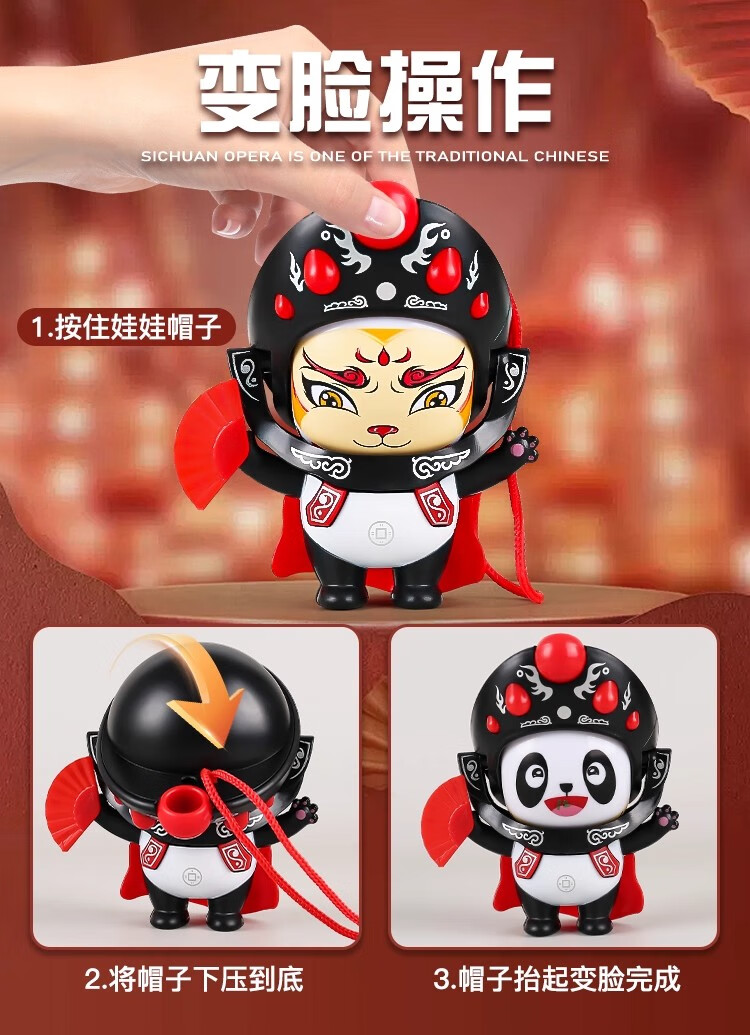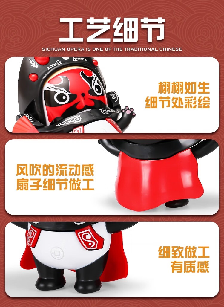 民俗川剧变脸玩具娃娃玩偶国粹文化京剧脸谱中国特色 【红色】可变脸