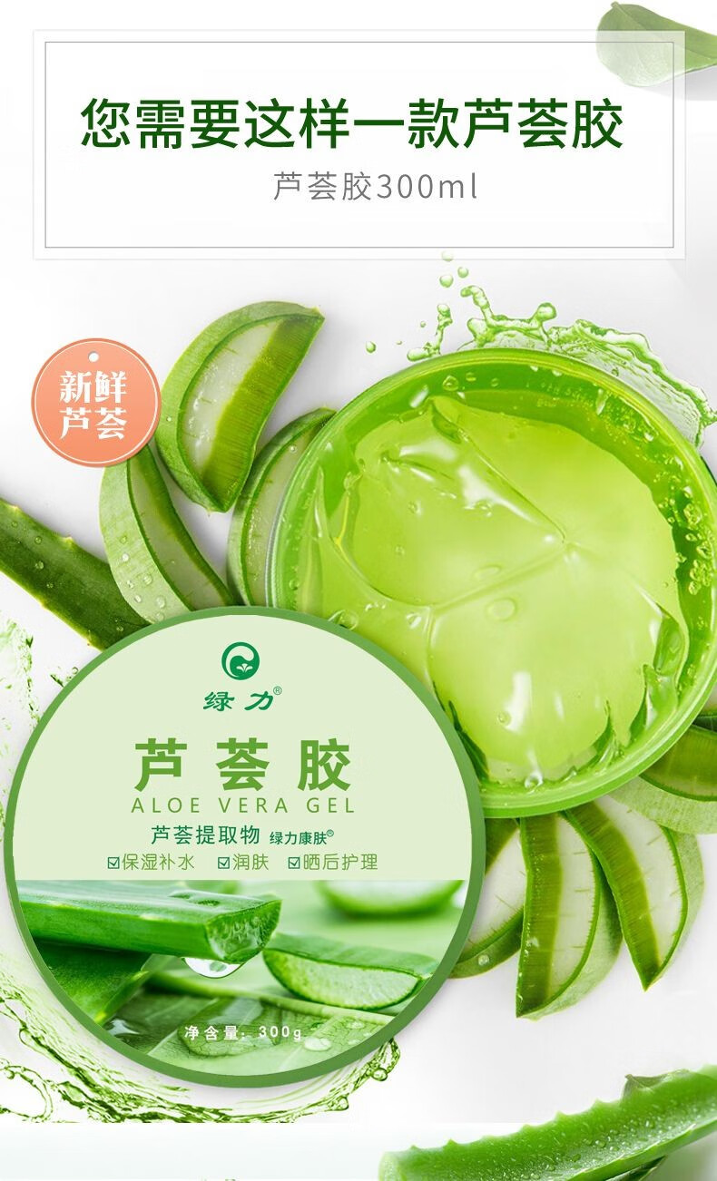绿力 芦荟胶 晒后面部补水保湿 改善肌肤粗糙 300g芦荟胶1瓶