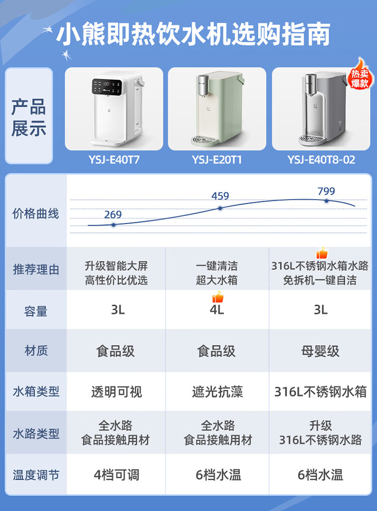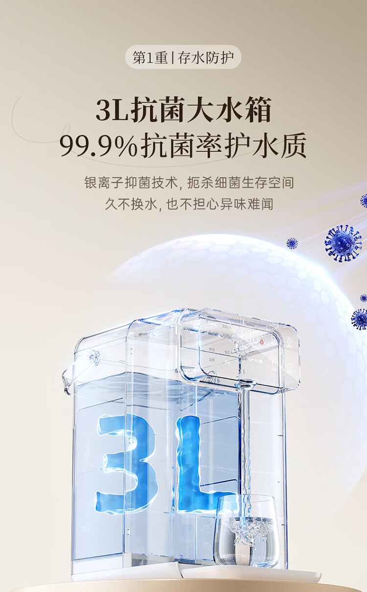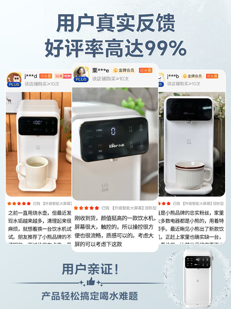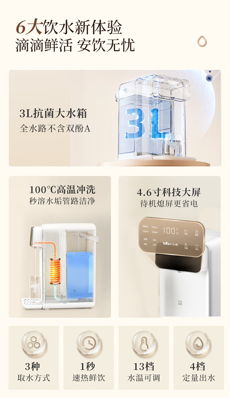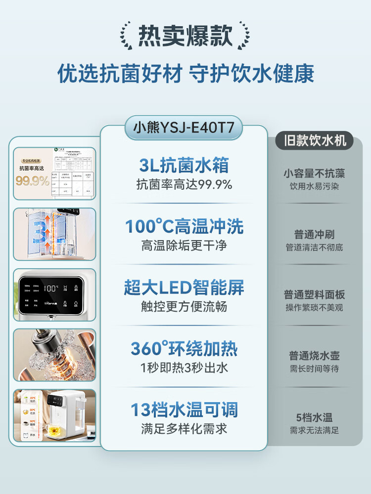 小熊(Bear)即热饮水机 家用桌面台式 直饮机电热水壶保温杯 智能大屏1秒速热 3L抗菌水箱YSJ-E40T7