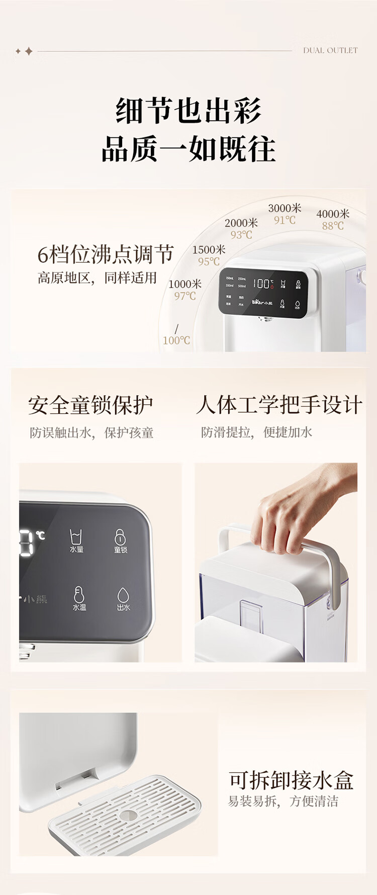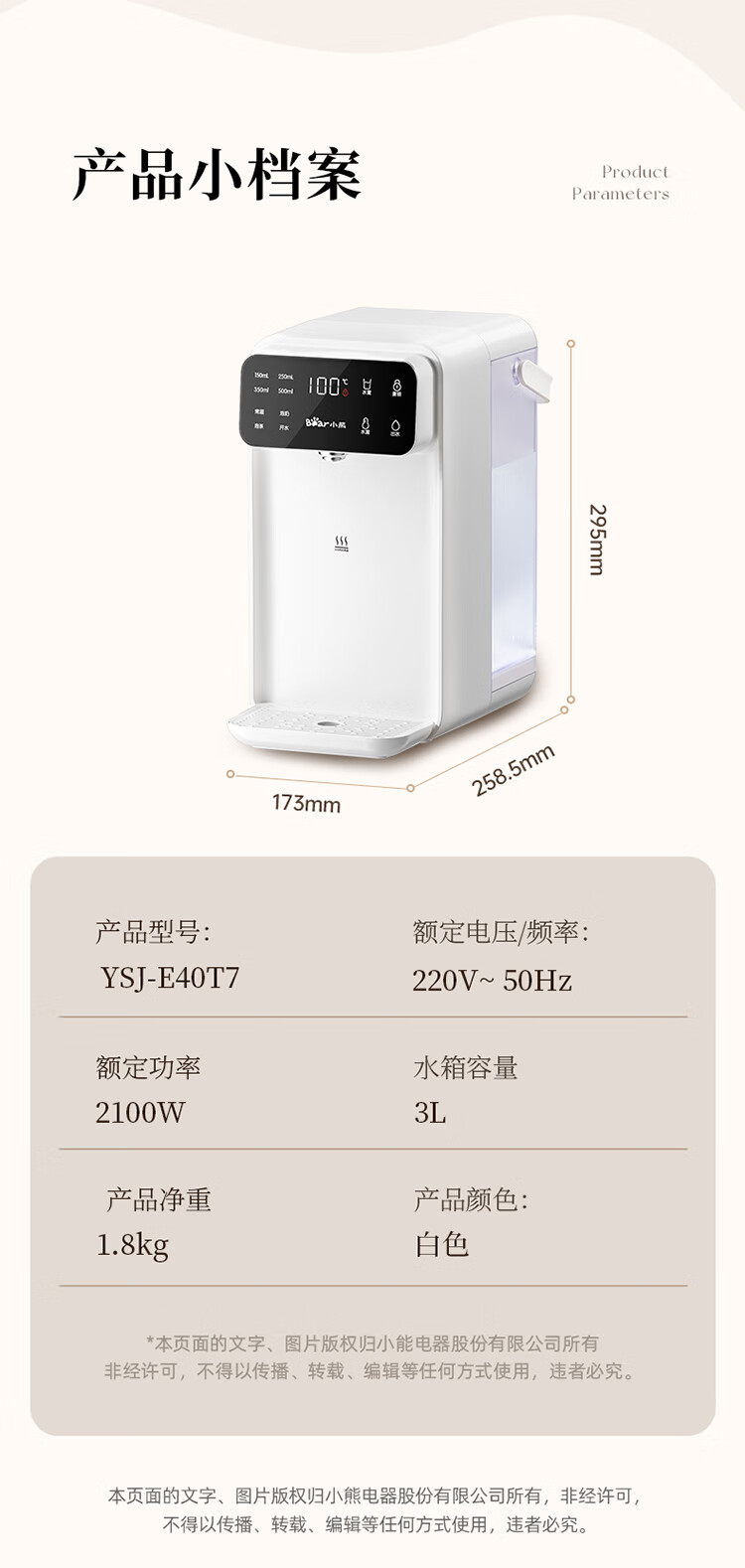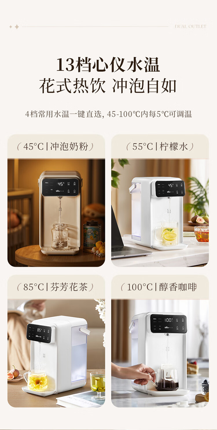 小熊(Bear)即热饮水机 家用桌面台式 直饮机电热水壶保温杯 智能大屏1秒速热 3L抗菌水箱YSJ-E40T7