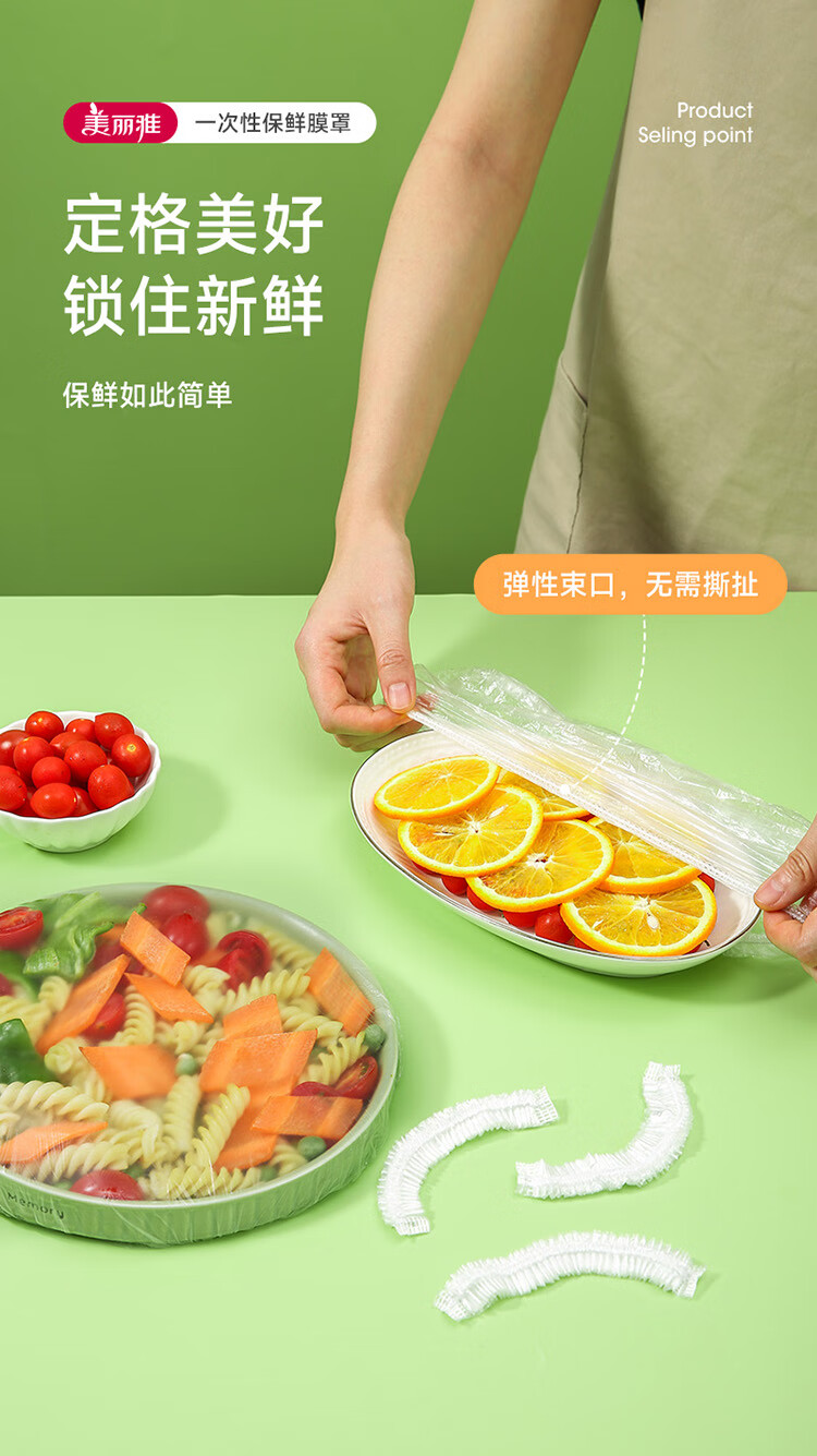 美丽雅保鲜罩食品级200只 一次性保鲜膜套大号 厨房剩饭剩菜防尘碗罩