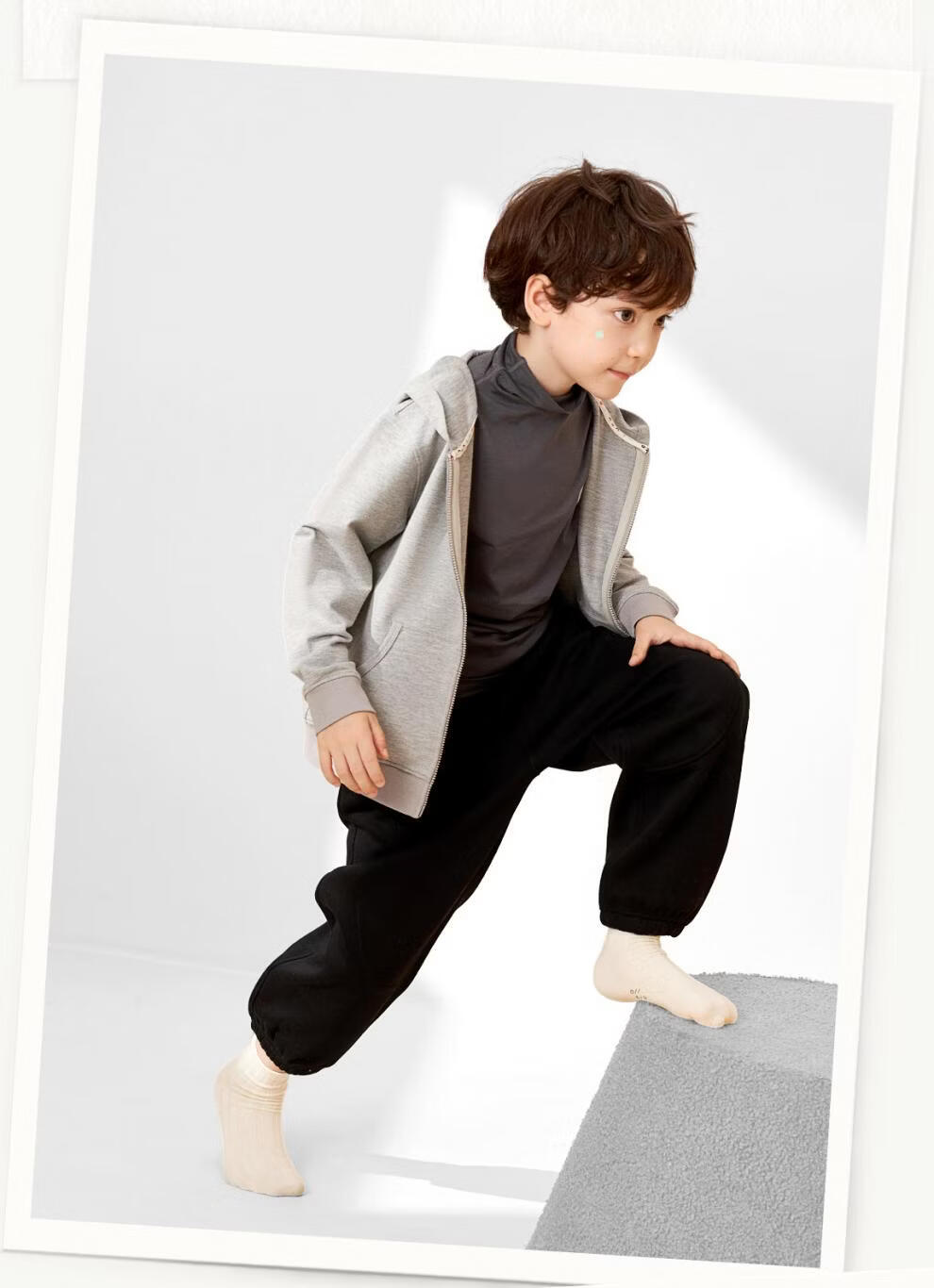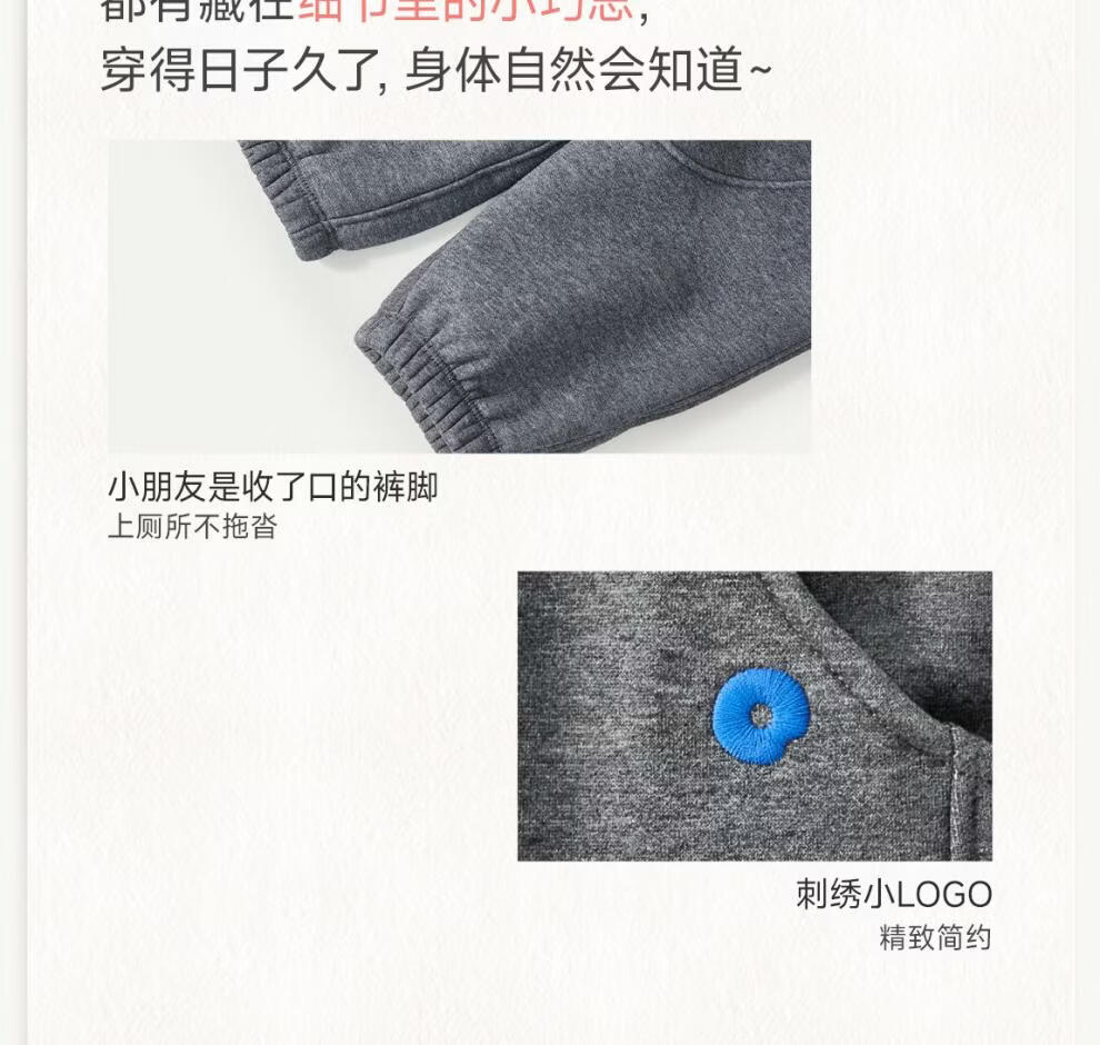 Q21直播【薄暖】懒人卫裤一体绒儿童裤子秋冬加绒男女童保暖束脚裤 深花灰 110 cm