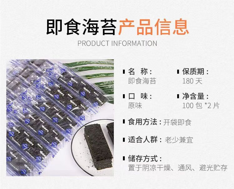 【活动】网红即食海苔片原味海苔烤紫菜寿司儿童女士健康休闲零食 【尝鲜装】海苔片30片(共15包)