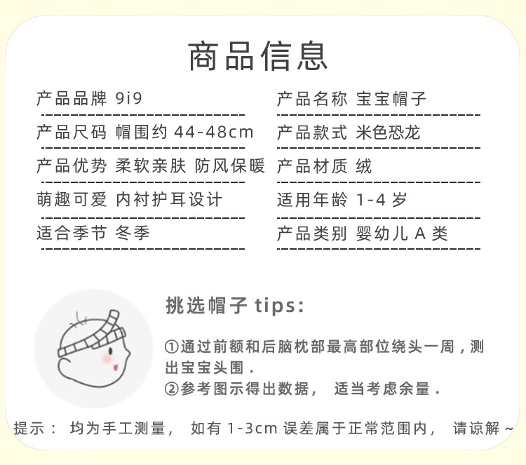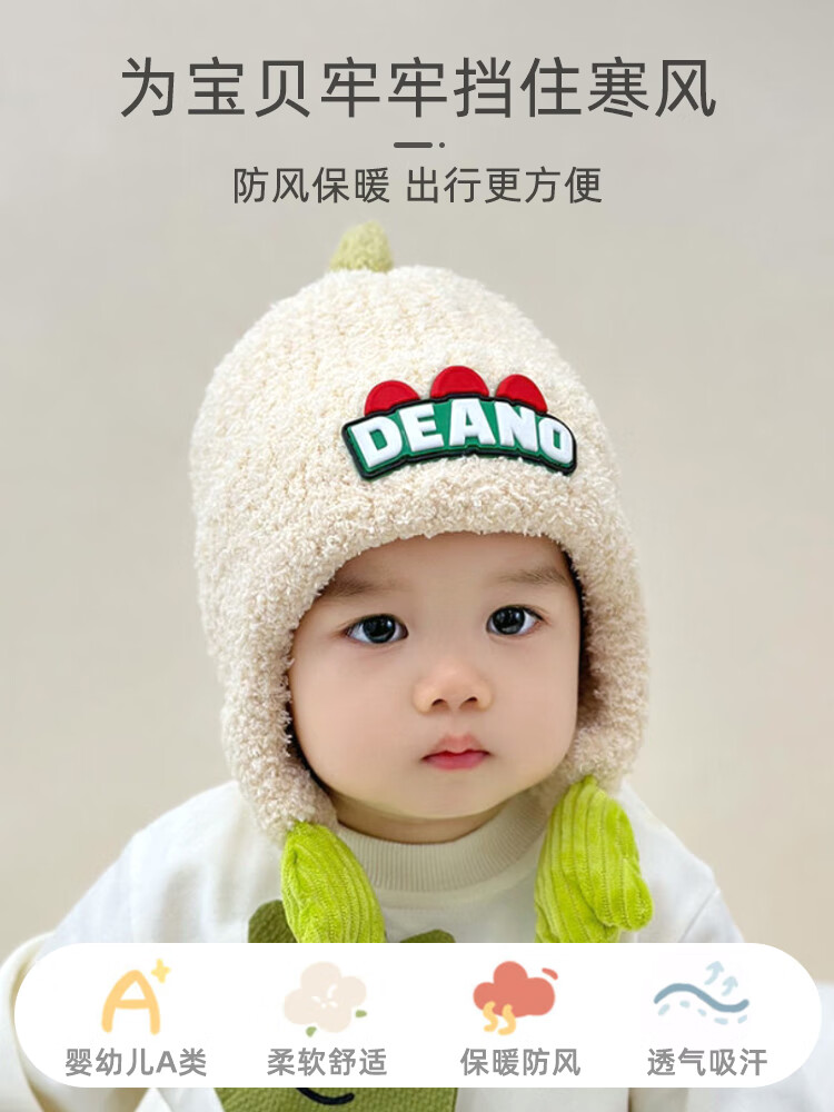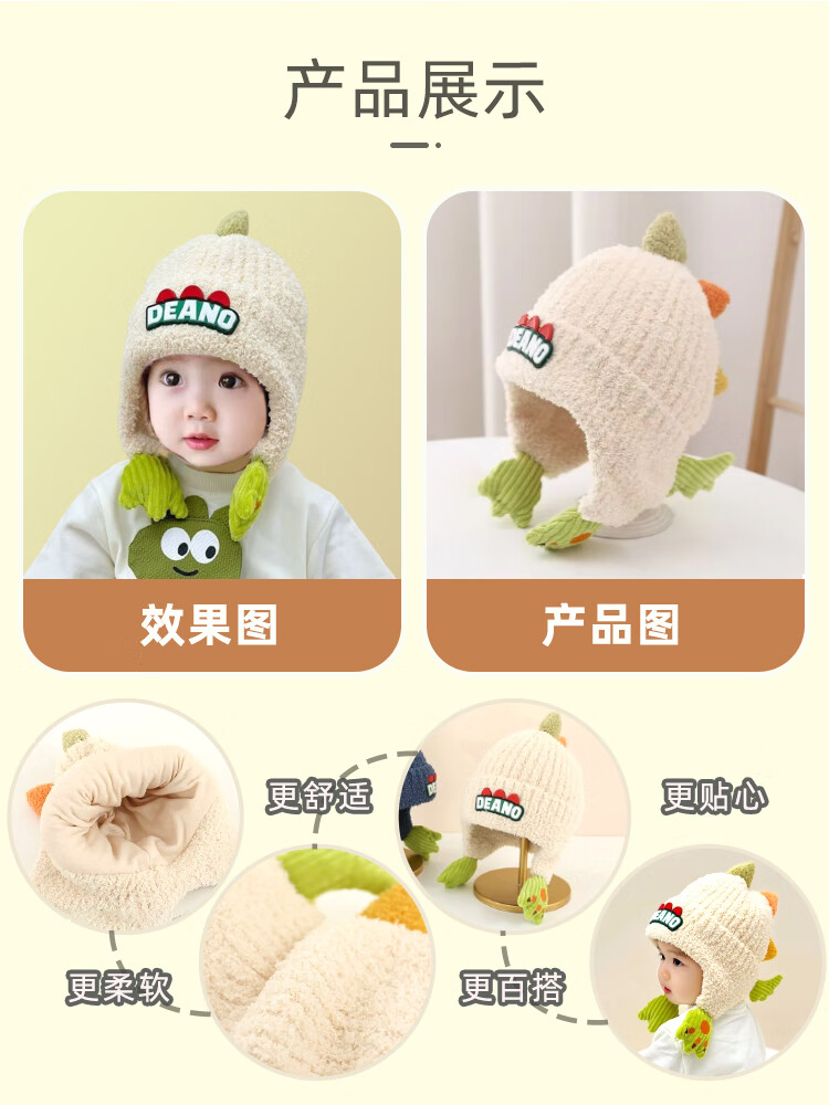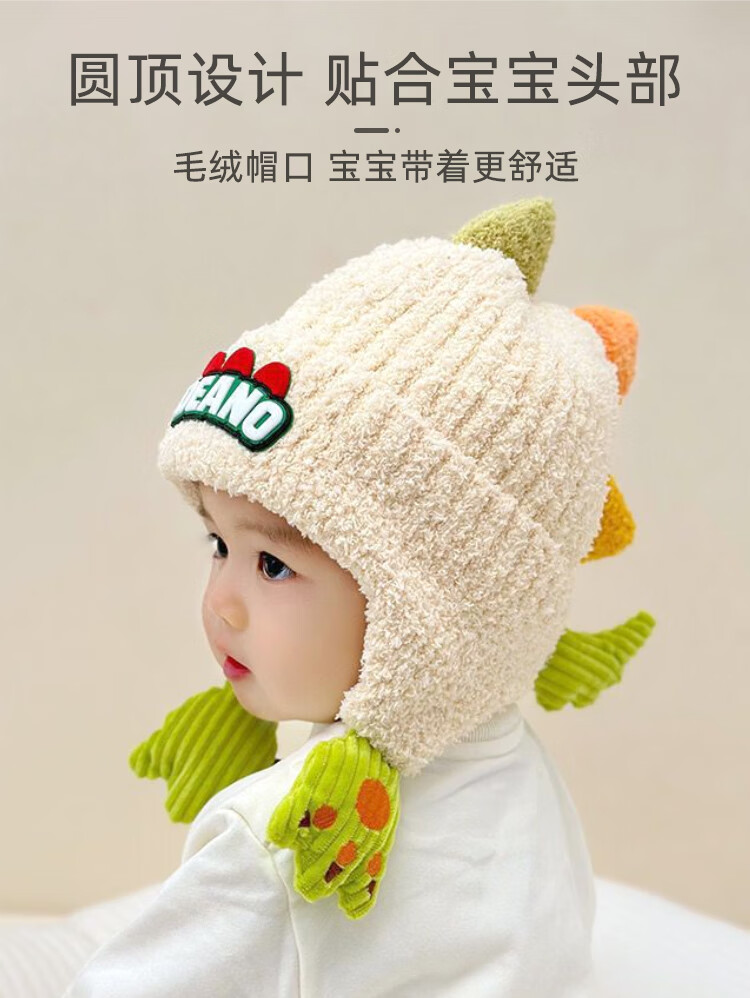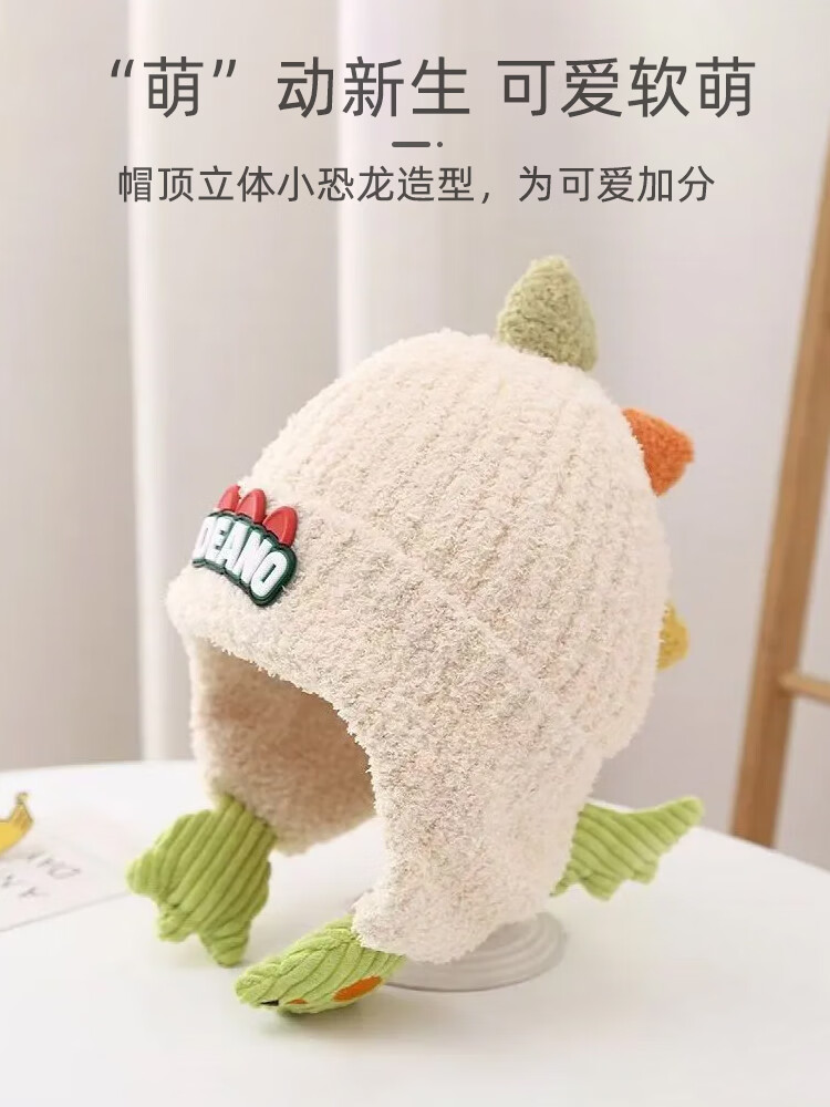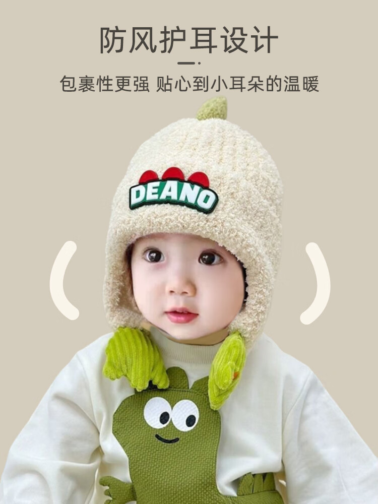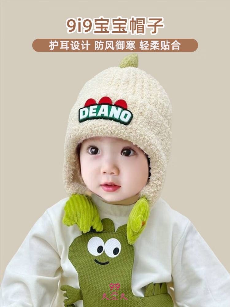 9i9婴儿帽子冬加厚加绒保暖宝宝护耳帽子卡通恐龙A395